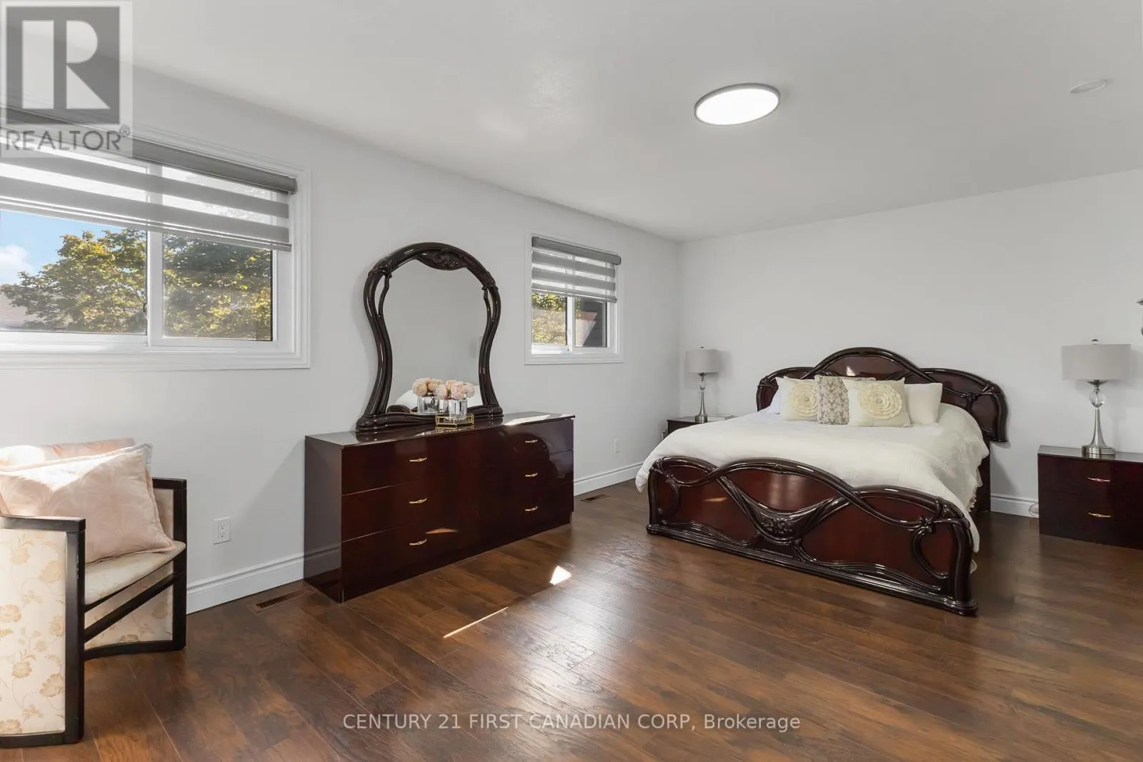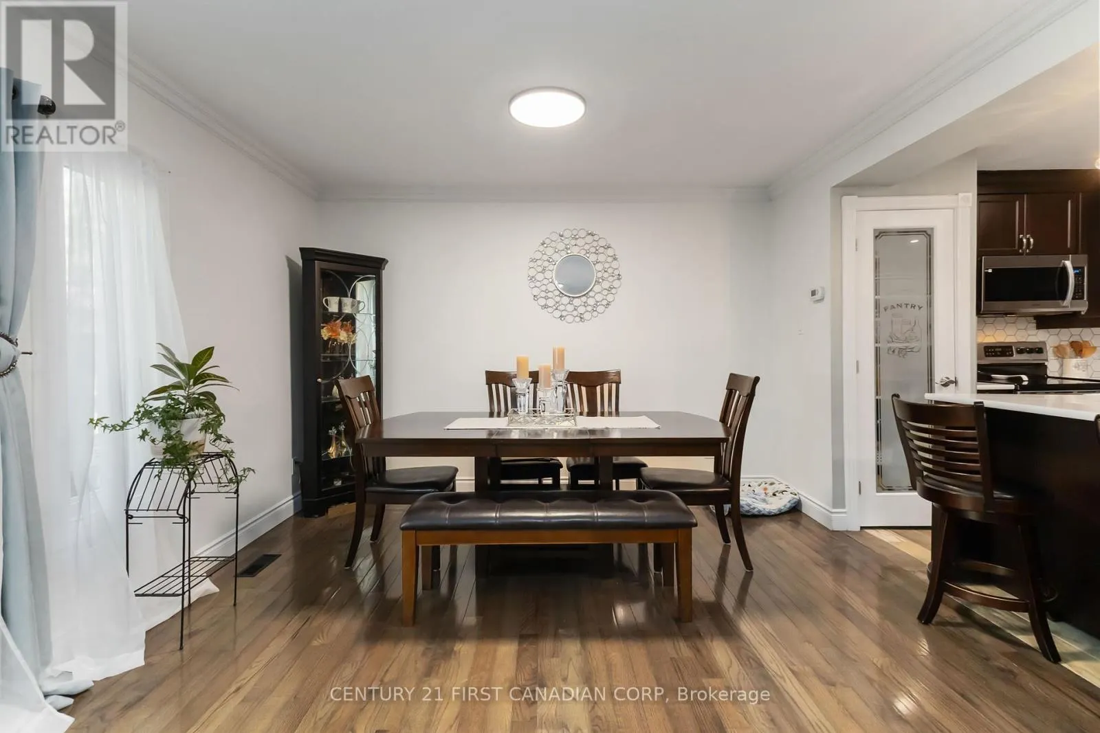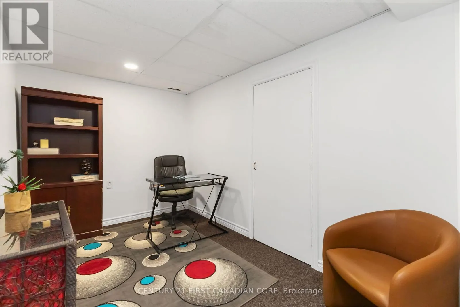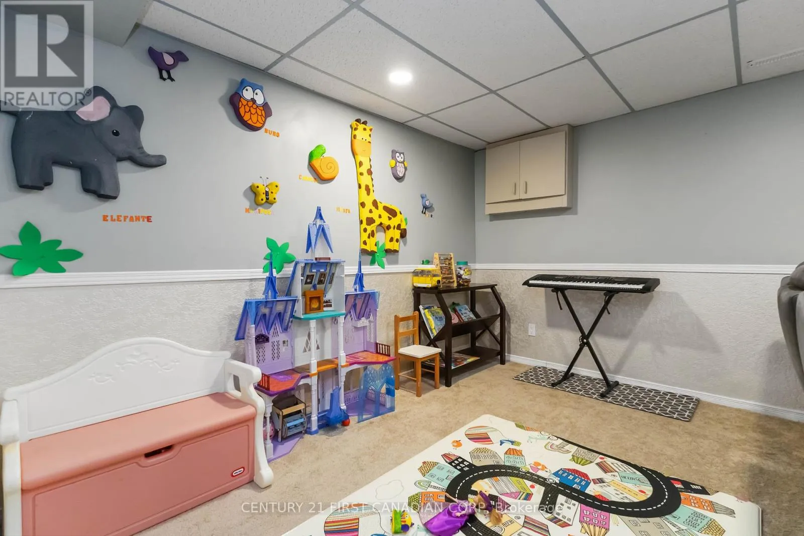 Cross Streets: Admiral and Bonaventure. ** Directions: SW on Dundas Street, left onto Bonaventure Drive, unit will be on the right hand side. Step into this stylish and well-cared-for 3-bedroom, 2-storey townhouse, tucked away in a peaceful, family-oriented community. Backing onto Bonaventure Meadows Public School, this home offers rare privacy, a backdrop of green space, and the comfort of true neighborhood living. The main level welcomes you with a bright foyer, convenient interior garage access, a modern 2-piece bath with stone counter, and a spacious main floor laundry room. The kitchen has been recently renovated with sleek quartz countertops, new island, stainless steel appliances, and large pantry with lots of storage. The kitchen flows seamlessly into the open-concept dining and living area, where windows fill the space with natural light. With no carpet the layout is both fresh and practical, perfect for busy family life or entertaining guests. Upstairs, discover three generous bedrooms, including a primary retreat that easily fits a king-size bed and features double closets. The 4-piece bathroom has been tastefully renovated with stone counters, offering both style and function. The fully finished lower level expands your living options with a spacious rec room and a separate office area ideal for working from home, gaming, or study space. Outside, enjoy a private patio perfect for summer barbecues, morning coffee, or simply relaxing while overlooking the schoolyard beyond. This prime location puts you just minutes from everything 6 minutes to Highway 401, 10 minutes to downtown London, 5 minutes to Fanshawe College, and under 20 minutes to Western University. Parks, shopping, and public transit are also close at hand. (id:27476)