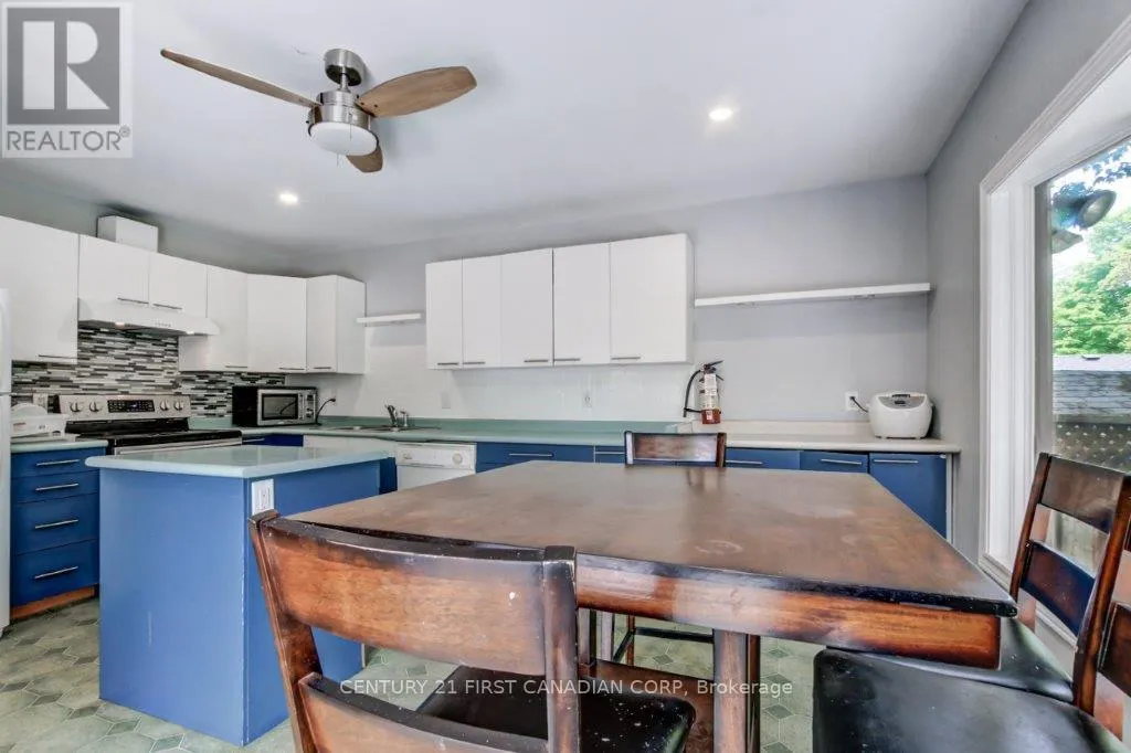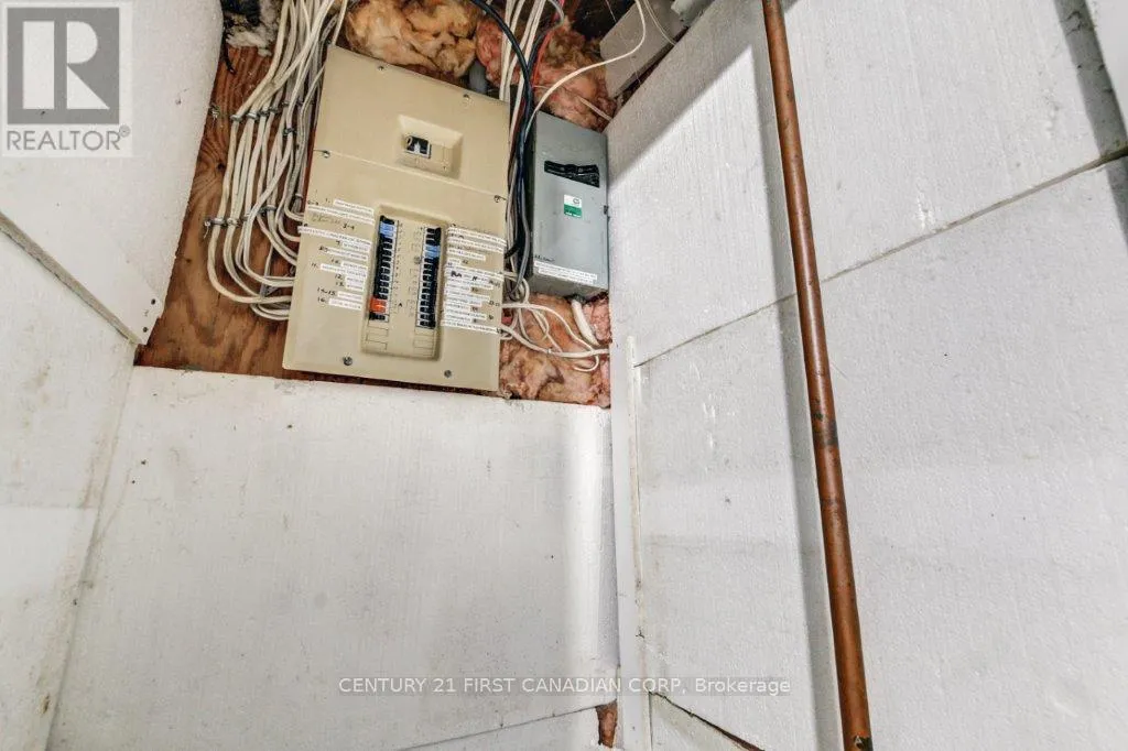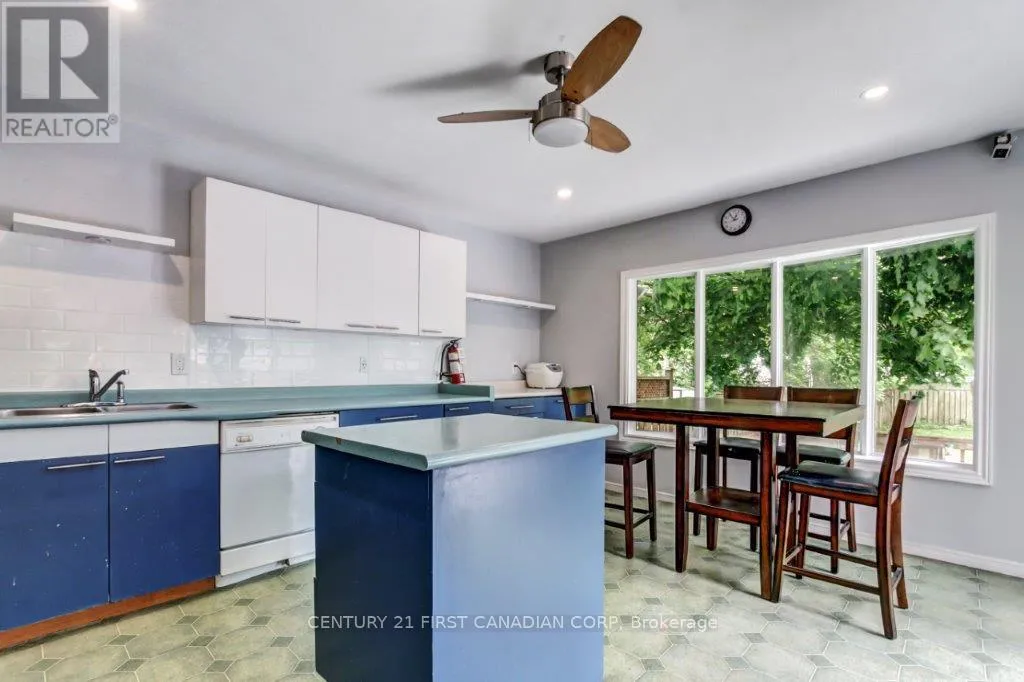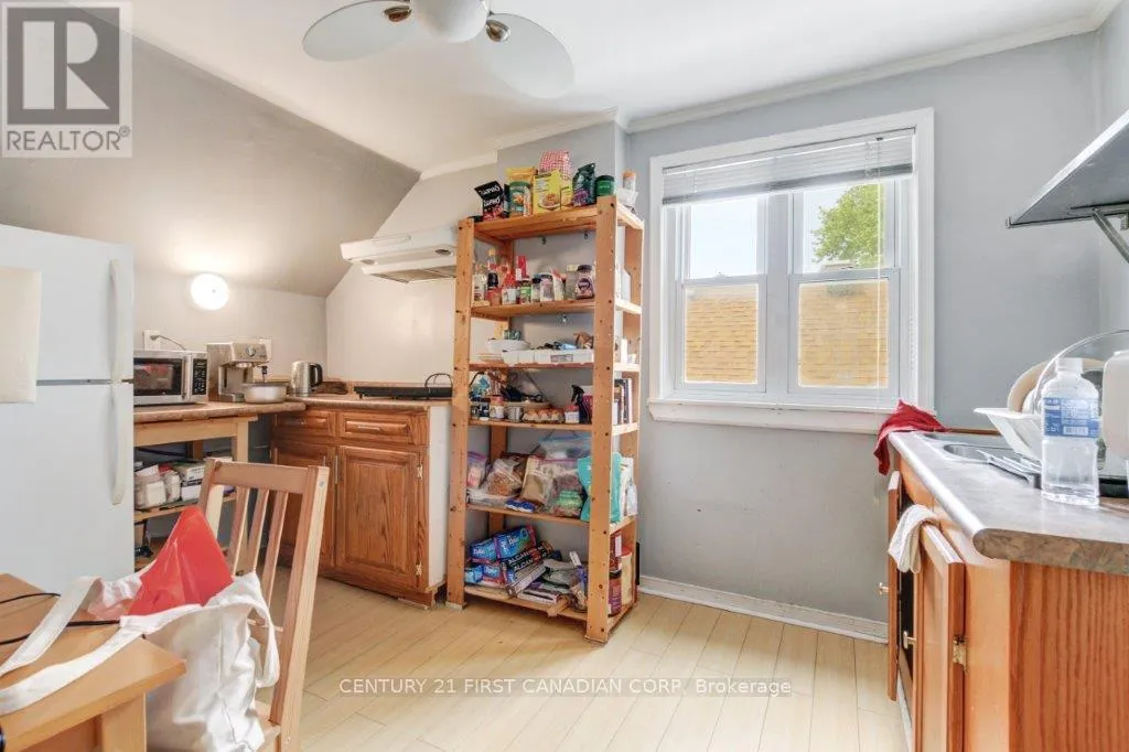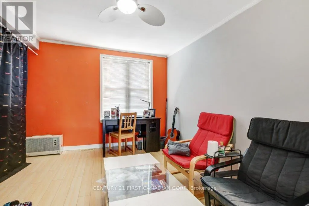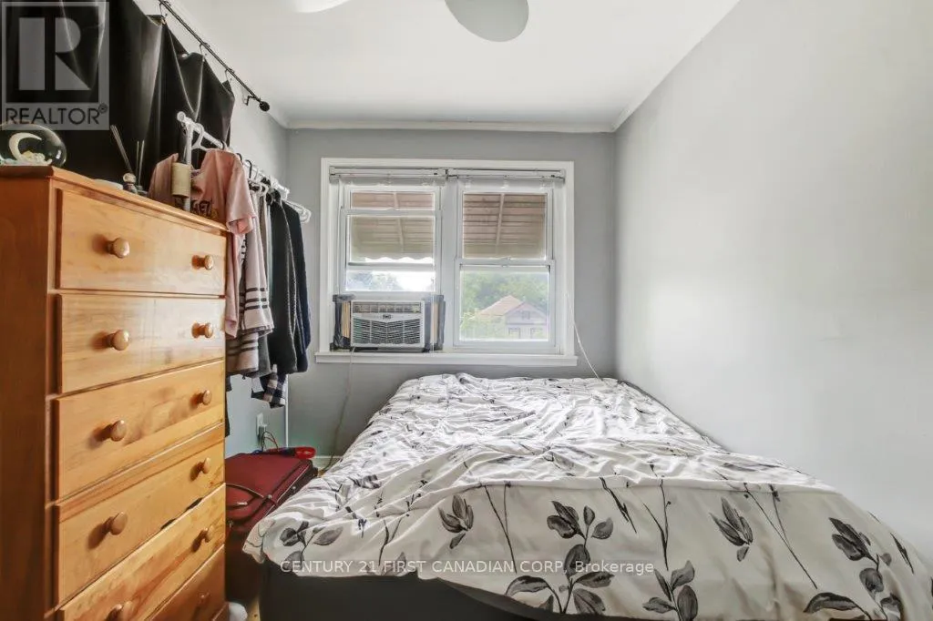 Cross Streets: OXFORD STREET EAST. ** Directions: FROM HIGHBURY AVE NORTH, TURN LEFT ONTO OXFORD STREET, TURN LEFT ONTO QUEBEC STREET. This charming 1 1/2 story home offers a unique opportunity for both investors and first-time homebuyers. It includes a self-contained extra suite with a separate hydro meter. This suite can provide a valuable income stream for first-time buyers, helping with mortgage payments while they reside in the main part of the house. The main entrance welcomes you with an enclosed front porch, perfect for enjoying the outdoors in comfort. Inside, one of the main floor bedrooms (located on the left) can converted into a living room featuring a fireplace. The wall is temporary and can be easily removed to restore the space to a family room. The spacious eat-in kitchen is a highlight, boasting a lovely bay window that overlooks the rear gardens. The property's location is also highly convenient, with close proximity to Fanshawe College, a shopping center, and downtown London. For added peace of mind, the home features a metal roof installed in 2021 and air conditioning that was replaced in 2023. (id:27476)