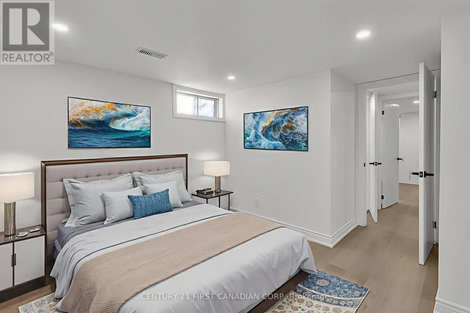Cross Streets: Huron St. ** Directions: Sorrel Road, in between Huron Street and Perth Ave. Experience modern living in this beautifully renovated basement unit, perfectly situated just steps from Western University and Fanshawe College and minutes from shopping, transit, and everyday conveniences. Designed with comfort in mind, the unit features a private entrace, a bright and stylish kitchen, generously sized bedrooms, a sleek bathroom, and in-unit laundry for ultimate ease. Enjoy peace of mind with brand-new appliances including refrigerator, stove, and stacked laundry. Tenants contribute 30% of hydro and water and are responsible for snow removal for their portion of the property. This clean, modern, and move-in-ready space is ideal for responsible students or professionals seekinga quiet home in a highly desirable location. (id:27476)