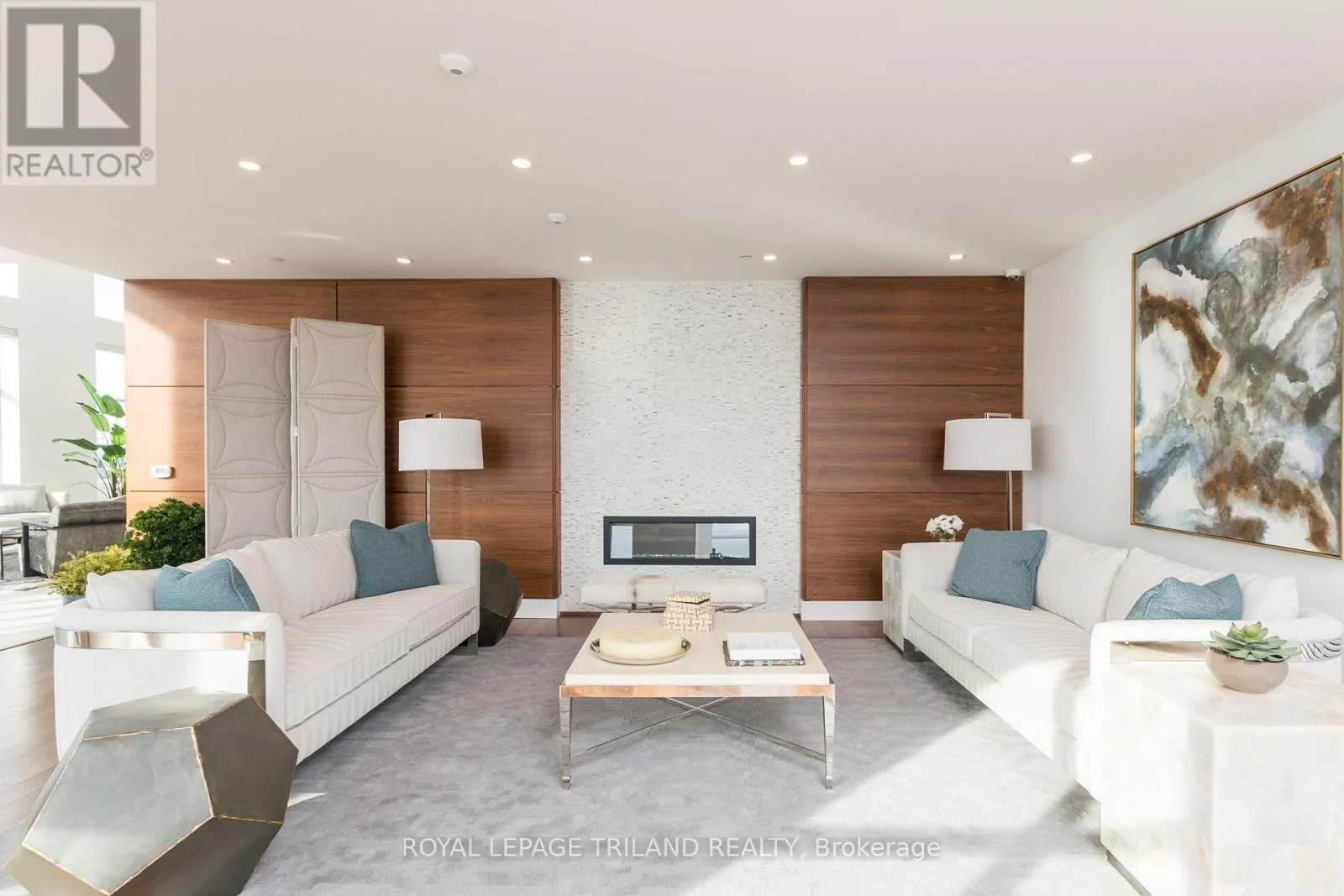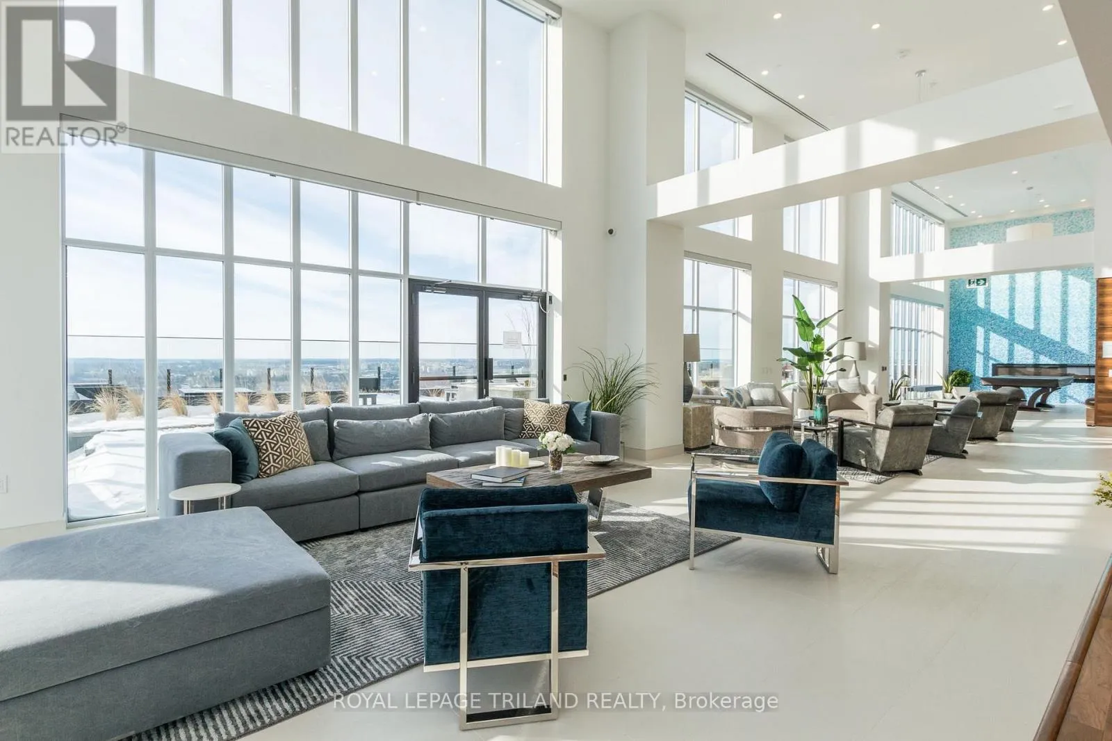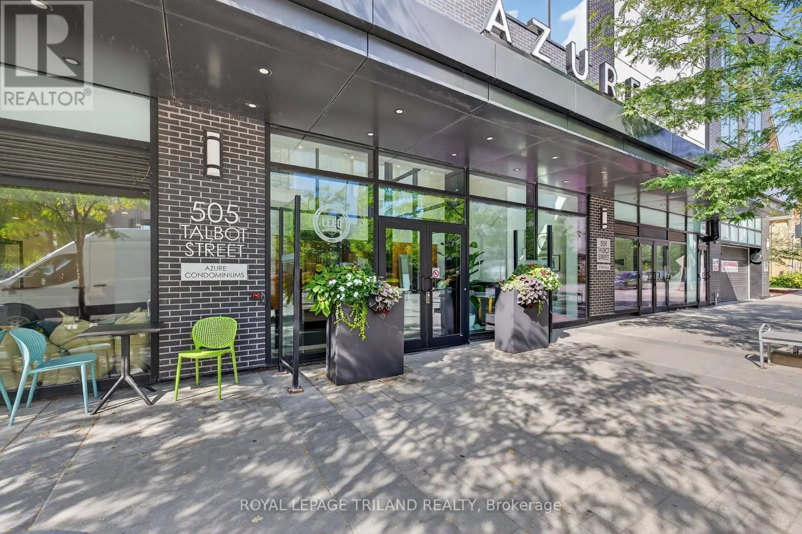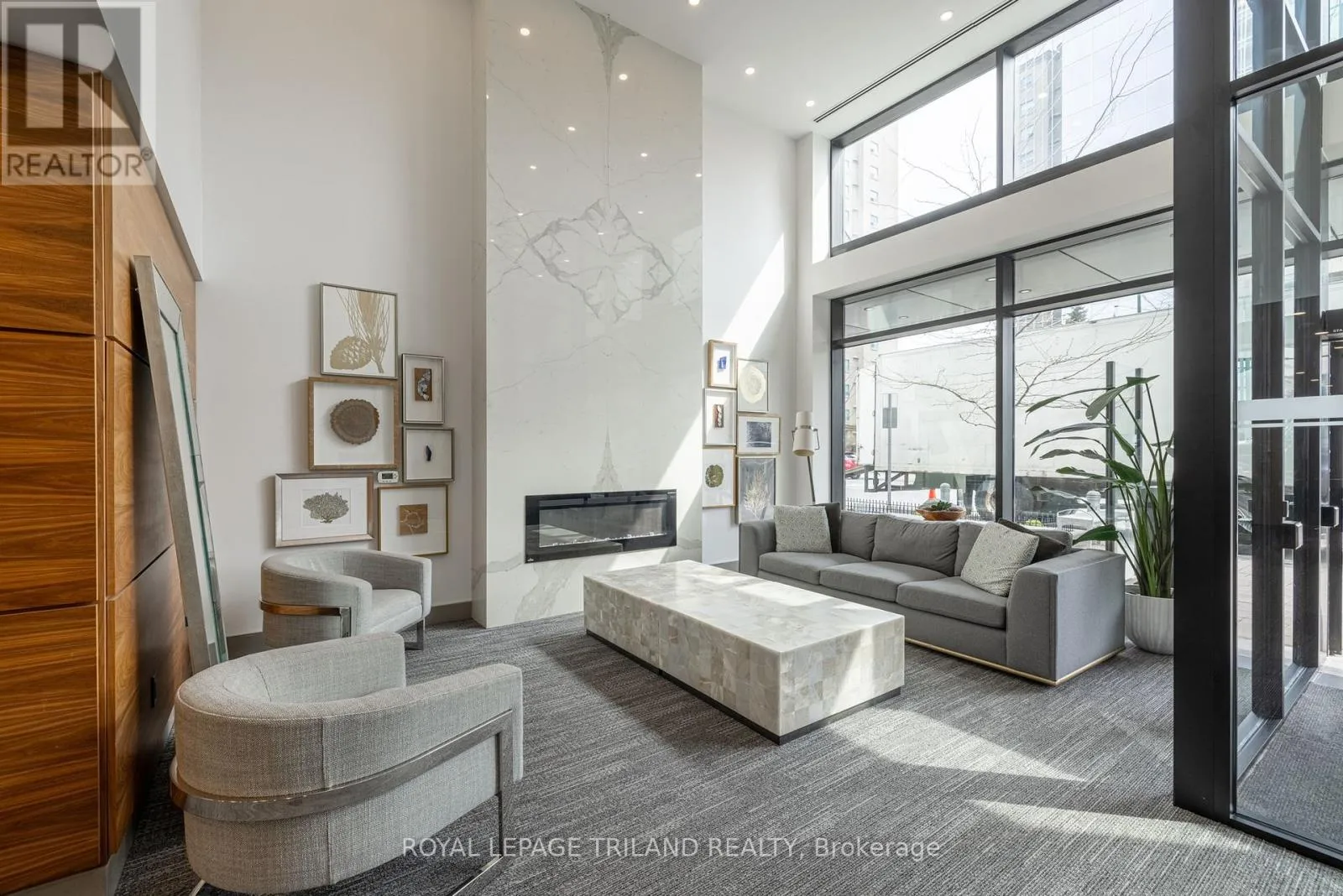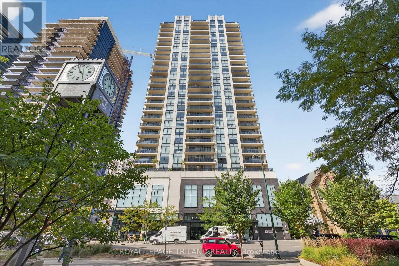Cross Streets: Dufferin. ** Directions: The Azure is located on the west side of Talbot between Kent & Dufferin. The Azure! Situated on the 23rd floor, this unit offers unobstructed panoramic western views stunning in every season and highlighted by remarkable sunsets. With over 1,400 sq. ft. of living space plus a 160 sq. ft. balcony, this two-bedroom plus den, two-bathroom condo combines convenience, thoughtful design and modern finishes. The kitchen features built-in appliances, quartz countertops, backsplash and island seating. An open-concept layout provides a dedicated dining area and flows into the living room, complete with electric fireplace, recessed ceiling detail, and balcony access. The primary suite includes a walk-in closet, 4-piece ensuite, and its own balcony entry. Additional conveniences include in-suite laundry, ample storage, an owned parking space located directly off the elevator access, and a same-floor storage locker. Residents enjoy exceptional building amenities, including a 29th-floor rooftop patio with BBQs, lounge seating, gas fire pit and picnic space, fitness room, golf simulator, pool table, library, seating areas with wet bar and a guest suite. Reasonable condo fees include heating, cooling, water, and building insurance/maintenance. Walk to restaurants, shops, Covent Garden Market and Canada Life Place. All of this in a prime downtown location, within a highly regarded building offering exceptional amenities and suited for any lifestyle! (id:27476)