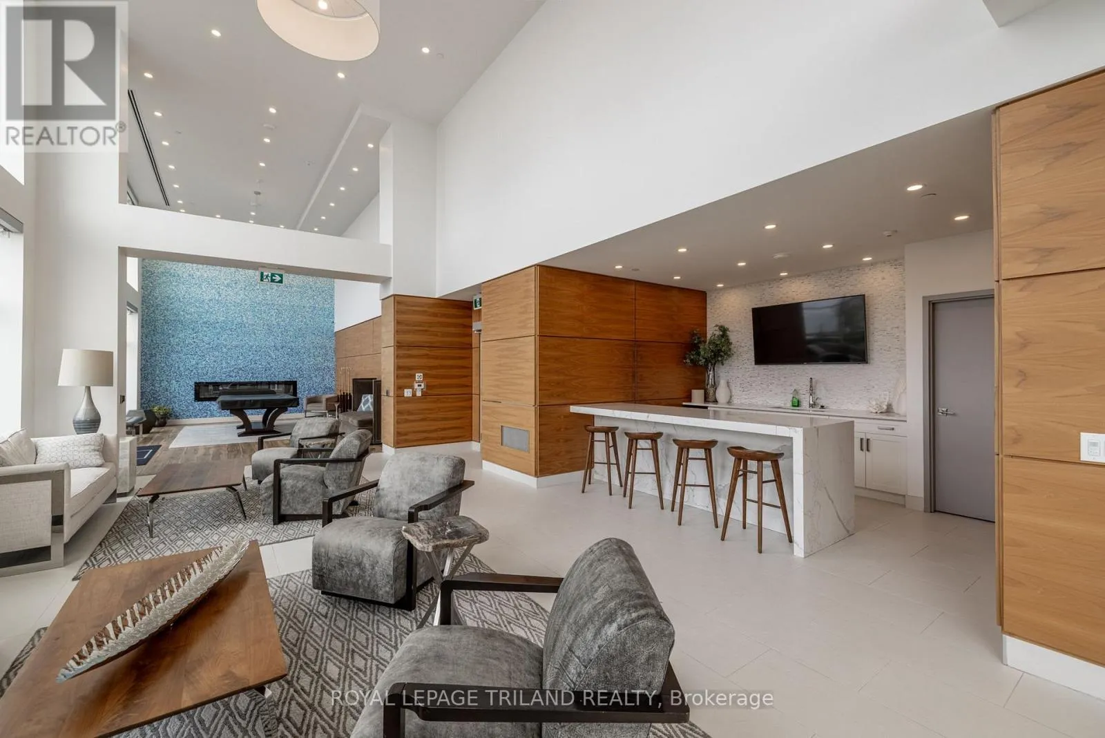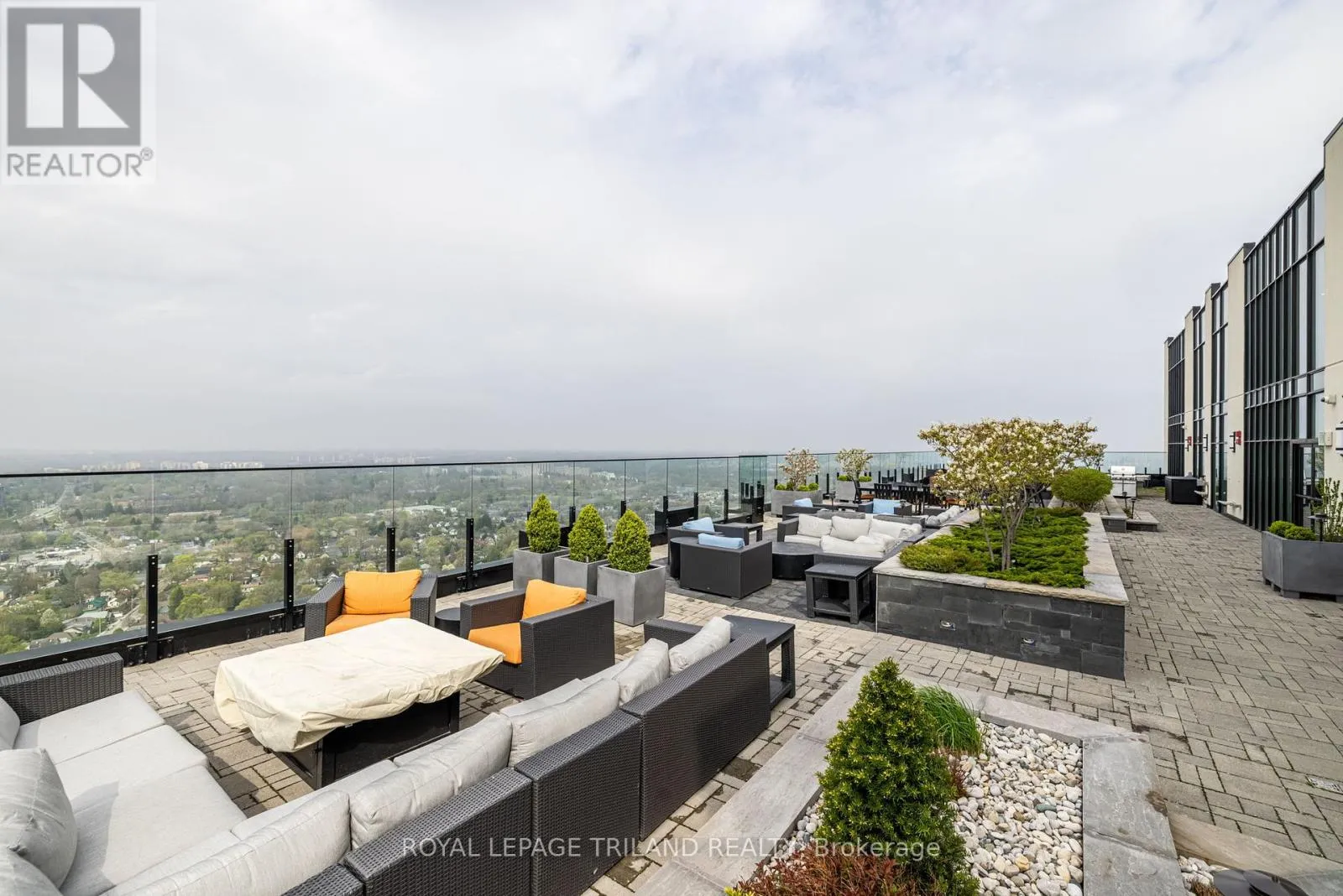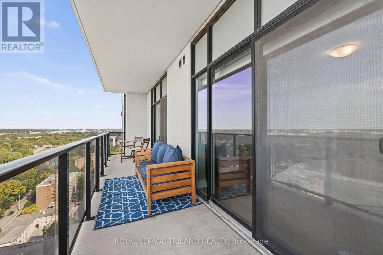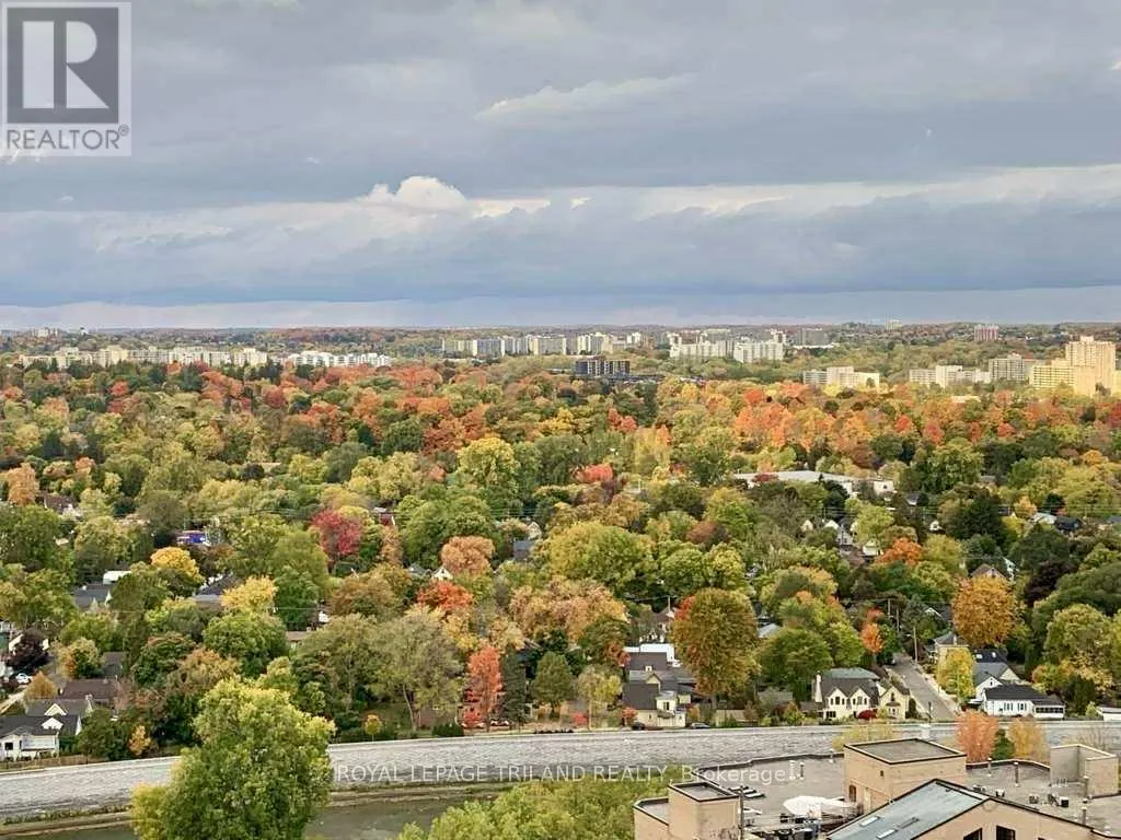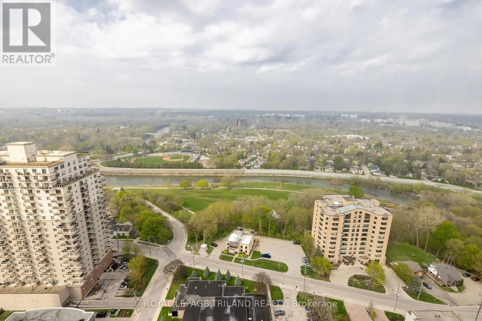Cross Streets: Dufferin. ** Directions: The Azure is located on the west side of Talbot between Kent & Dufferin. The Azure! Situated on the 23rd floor, this unit offers unobstructed panoramic western views stunning in every season and highlighted by remarkable sunsets. With over 1,400 sq. ft. of living space plus a 160 sq. ft. balcony, this two-bedroom plus den, two-bathroom condo combines convenience, thoughtful design and modern finishes. The kitchen features built-in appliances, quartz countertops, backsplash and island seating. An open-concept layout provides a dedicated dining area and flows into the living room, complete with electric fireplace, recessed ceiling detail, and balcony access. The primary suite includes a walk-in closet, 4-piece ensuite, and its own balcony entry. Additional conveniences include in-suite laundry, ample storage, an owned parking space located directly off the elevator access, and a same-floor storage locker. Residents enjoy exceptional building amenities, including a 29th-floor rooftop patio with BBQs, lounge seating, gas fire pit and picnic space, fitness room, golf simulator, pool table, library, seating areas with wet bar and a guest suite. Reasonable condo fees include heating, cooling, water, and building insurance/maintenance. Walk to restaurants, shops, Covent Garden Market and Canada Life Place. All of this in a prime downtown location, within a highly regarded building offering exceptional amenities and suited for any lifestyle! (id:27476)