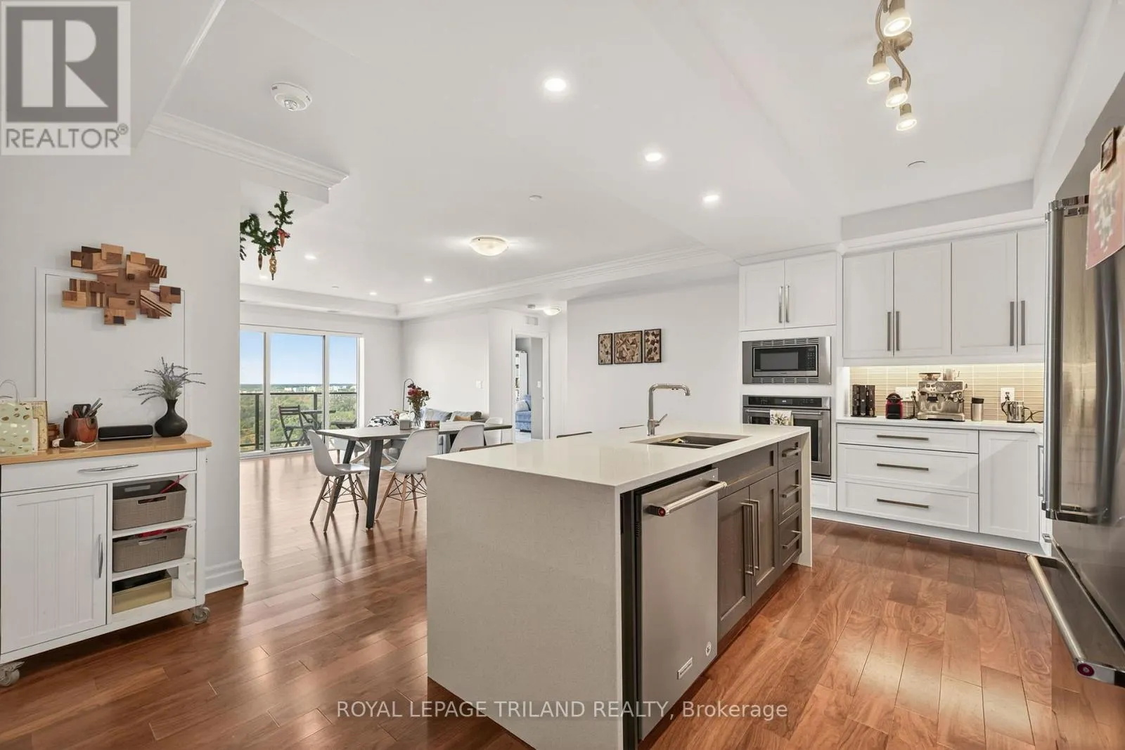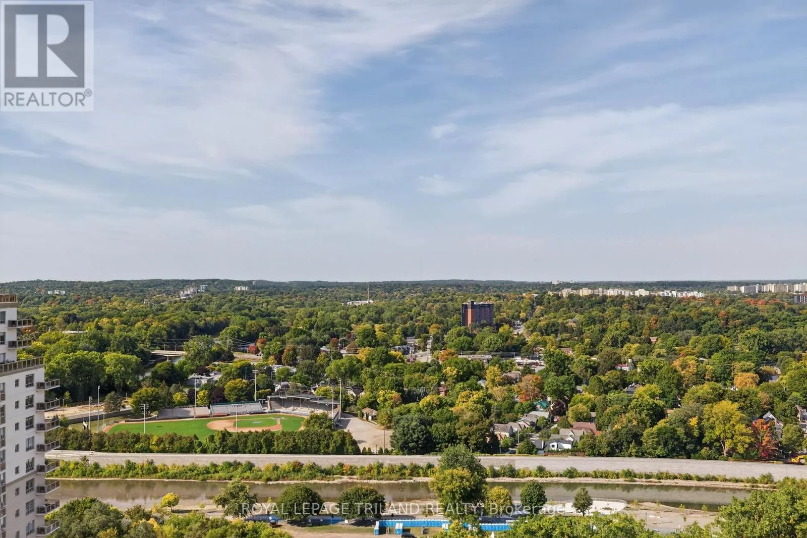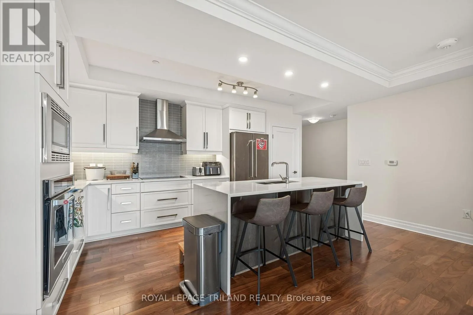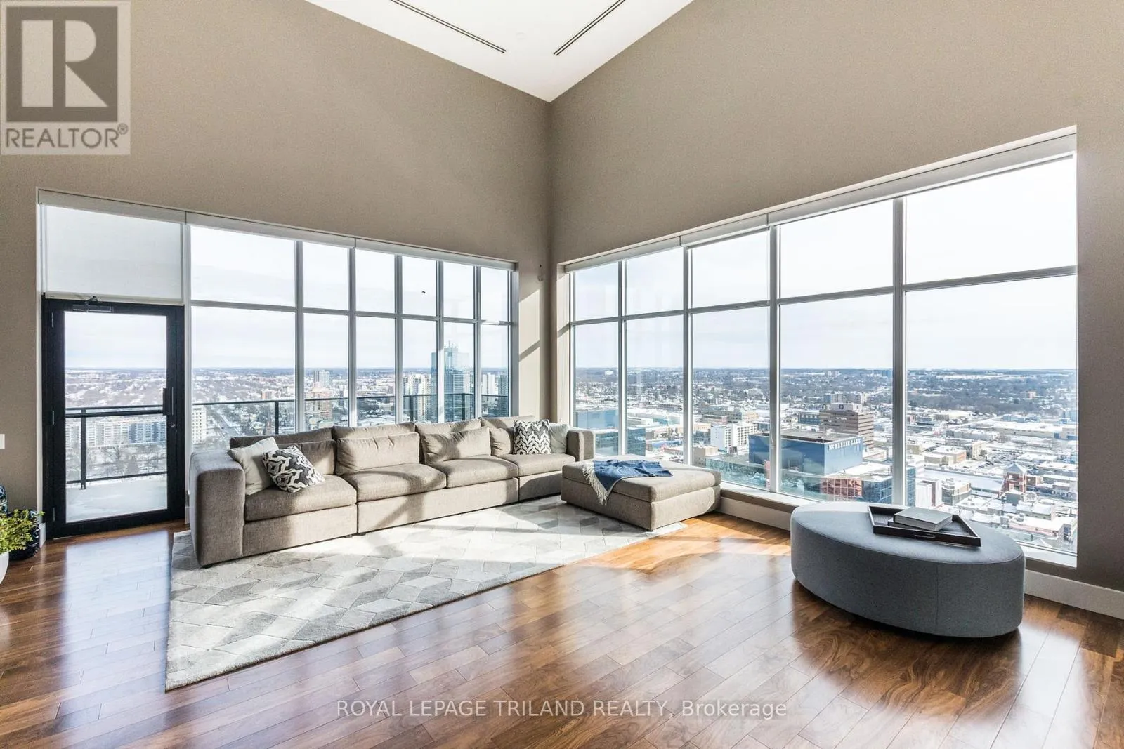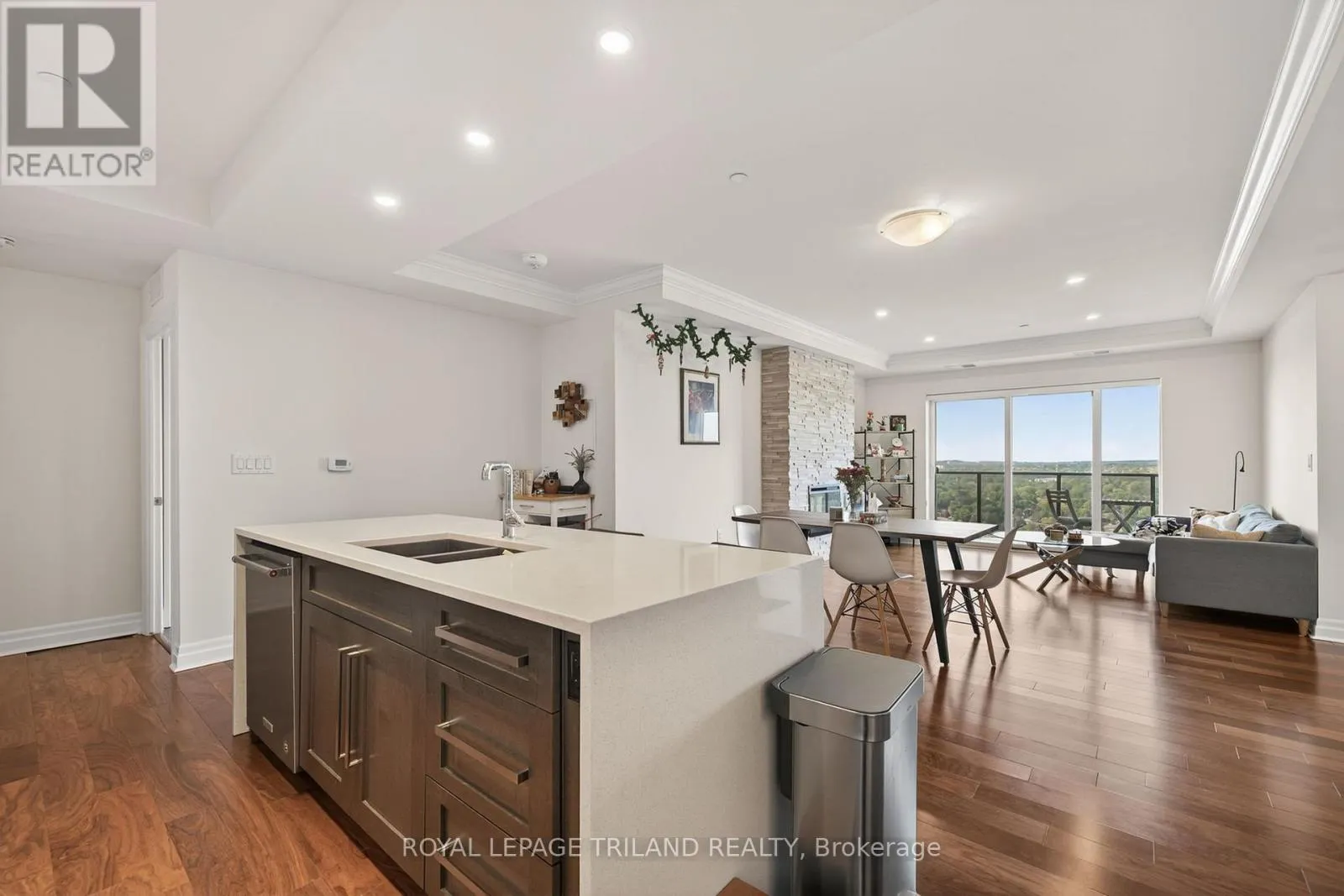 Cross Streets: Dufferin. ** Directions: The Azure is located on the west side of Talbot between Kent & Dufferin. The Azure! Situated on the 23rd floor, this unit offers unobstructed panoramic western views stunning in every season and highlighted by remarkable sunsets. With over 1,400 sq. ft. of living space plus a 160 sq. ft. balcony, this two-bedroom plus den, two-bathroom condo combines convenience, thoughtful design and modern finishes. The kitchen features built-in appliances, quartz countertops, backsplash and island seating. An open-concept layout provides a dedicated dining area and flows into the living room, complete with electric fireplace, recessed ceiling detail, and balcony access. The primary suite includes a walk-in closet, 4-piece ensuite, and its own balcony entry. Additional conveniences include in-suite laundry, ample storage, an owned parking space located directly off the elevator access, and a same-floor storage locker. Residents enjoy exceptional building amenities, including a 29th-floor rooftop patio with BBQs, lounge seating, gas fire pit and picnic space, fitness room, golf simulator, pool table, library, seating areas with wet bar and a guest suite. Reasonable condo fees include heating, cooling, water, and building insurance/maintenance. Walk to restaurants, shops, Covent Garden Market and Canada Life Place. All of this in a prime downtown location, within a highly regarded building offering exceptional amenities and suited for any lifestyle! (id:27476)