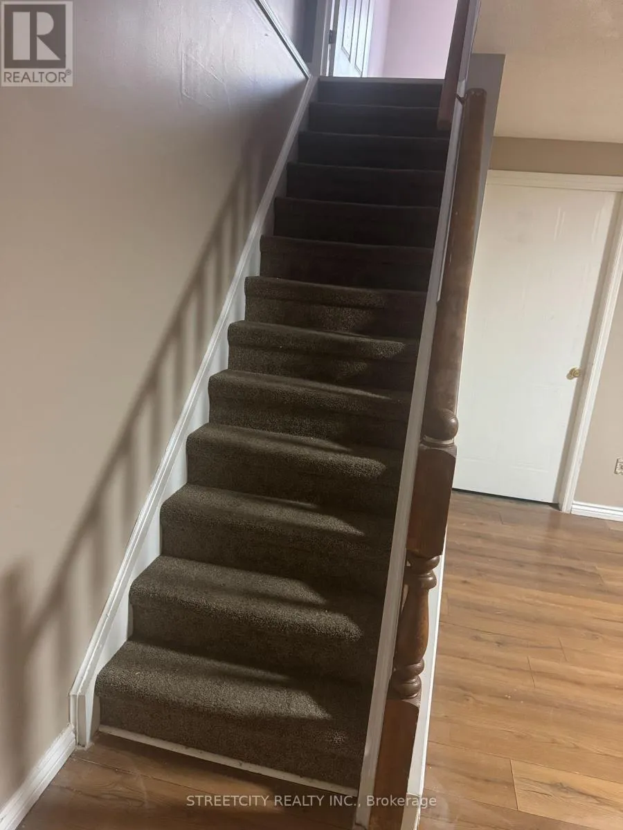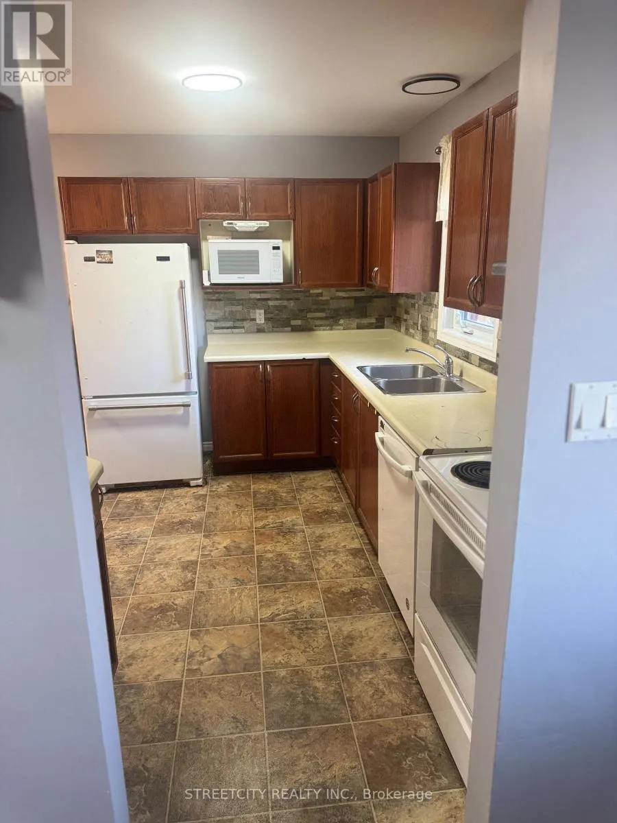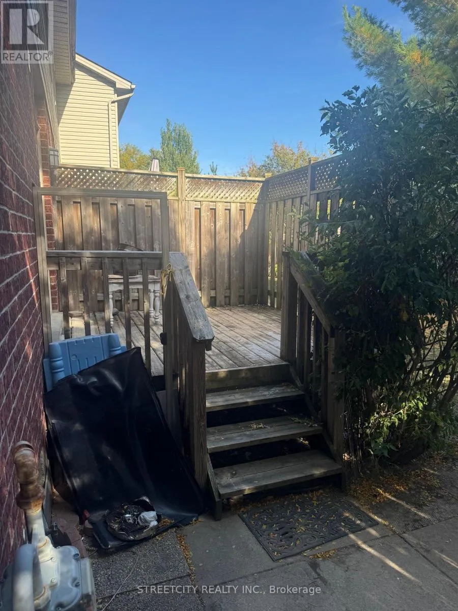 Cross Streets: VETERANS & ADMIRAL. ** Directions: WEST ADMIRAL TURN LEFT BONAVENTURE. Don't miss!!! Updated 3 bedroom townhouse. Prime location within the complex-End unit & backs onto greenspace. NEW Washer ,Furnace (2024) . Large kitchen & eating area, sliding doors from large living room to a private deck. The kitchen has been updated and has an awesome stone backsplash, plus tons of storage and work space with a separate dining area. Upper level features a huge master bedroom, 2 additional bedrooms & updated bathroom newer vanity & ceramic flooring. The lower features a spacious family room with gas fireplace & lots of storage space. Well-maintained complex close to schools with easy access to the 401, shopping, schools, transit and more. (id:27476)