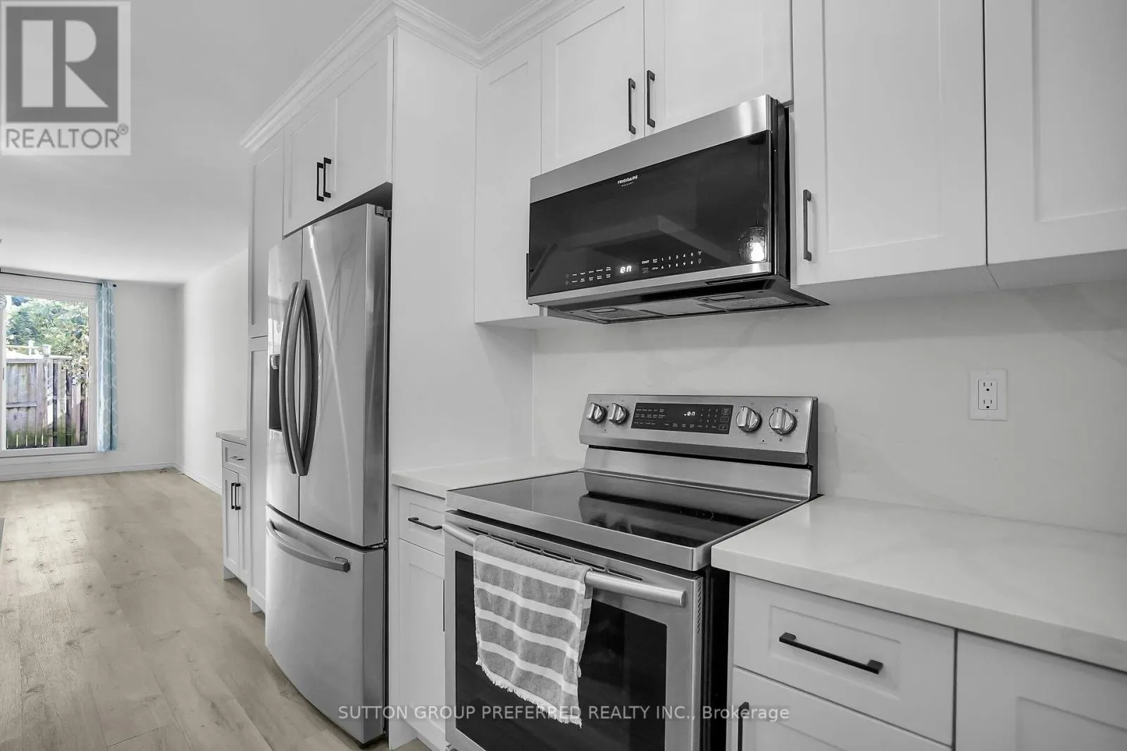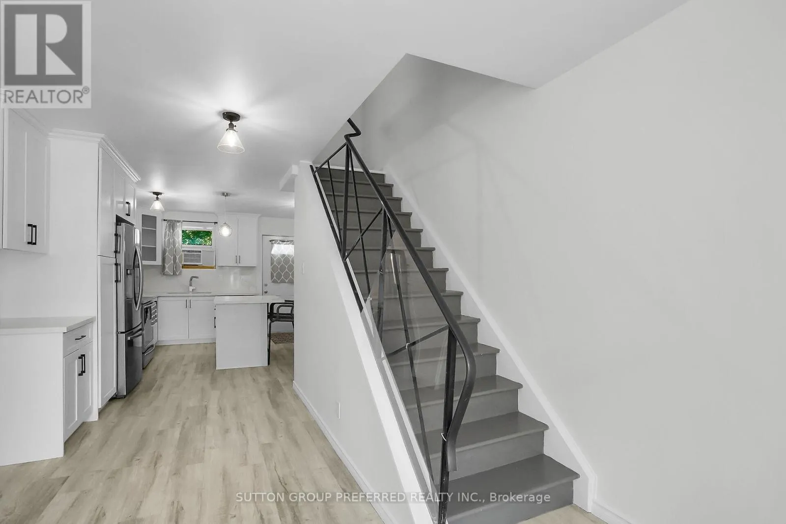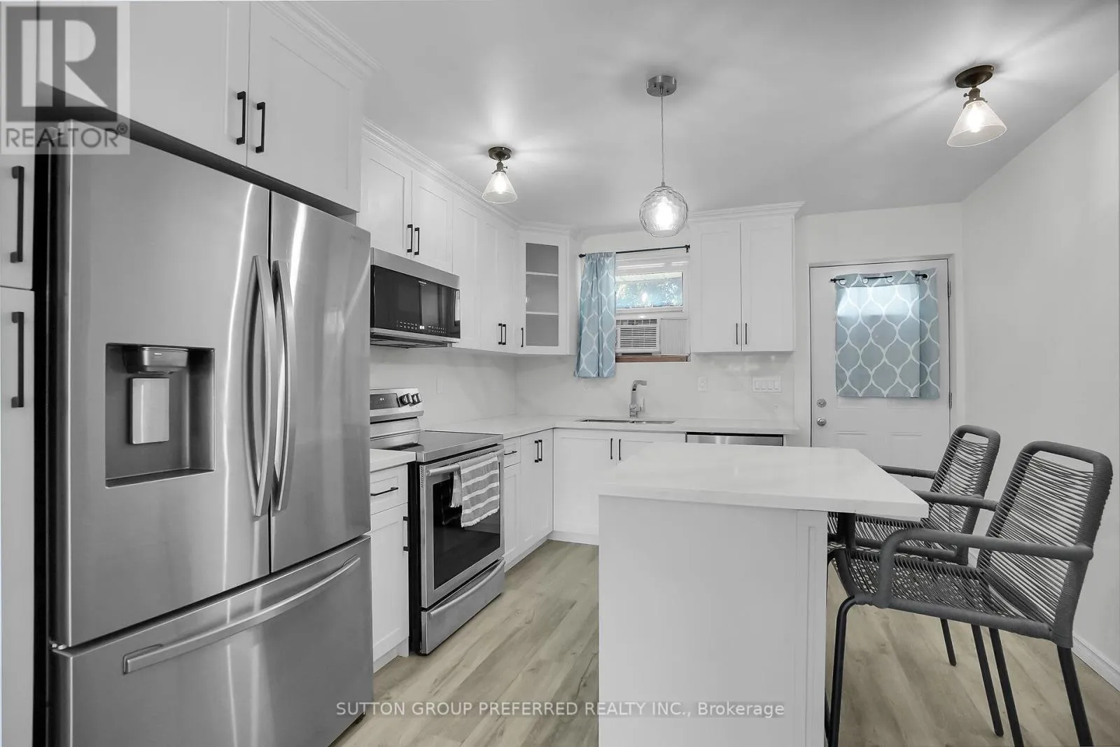 Cross Streets: Clarke. ** Directions: Trafalgar east of Clarke. Welcome to 88-1919 Trafalgar Street, a fully updated townhouse condo offering affordable living in East London! This home has been completely renovated from top to bottomeverything is new, including the kitchen, bathrooms, flooring, paint, and even an electric fireplace for cozy nights in. The condo corporation has recently replaced the windows as well, giving you peace of mind for years to come. Inside, youll find two spacious bedrooms upstairs along with a full 4-piece bath. The finished basement adds extra living space with a third bedroom and a 3-piece bath, perfect for guests, a home office, or a teenagers retreat as well as a large laundry room with plenty of storage. Step outside to your private fenced backyard, complete with a handy shed for storage. With low condo fees of only $240/month (including water), this is one of the most affordable and move-in-ready options in East London. Whether you're a first-time buyer, downsizing, or looking for a smart investment, this home checks all the boxes. (id:27476)