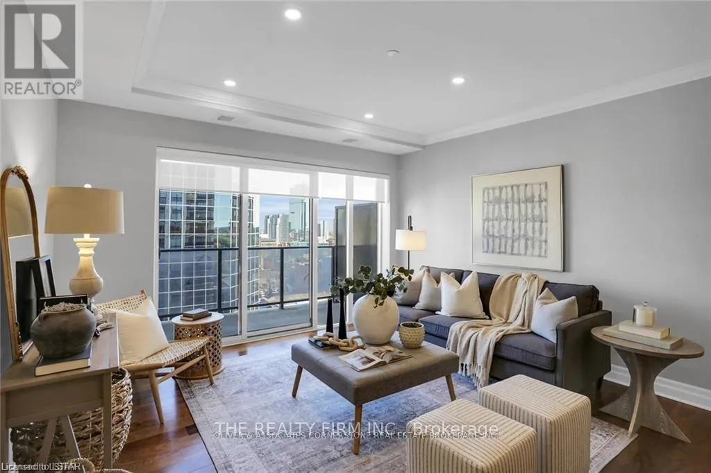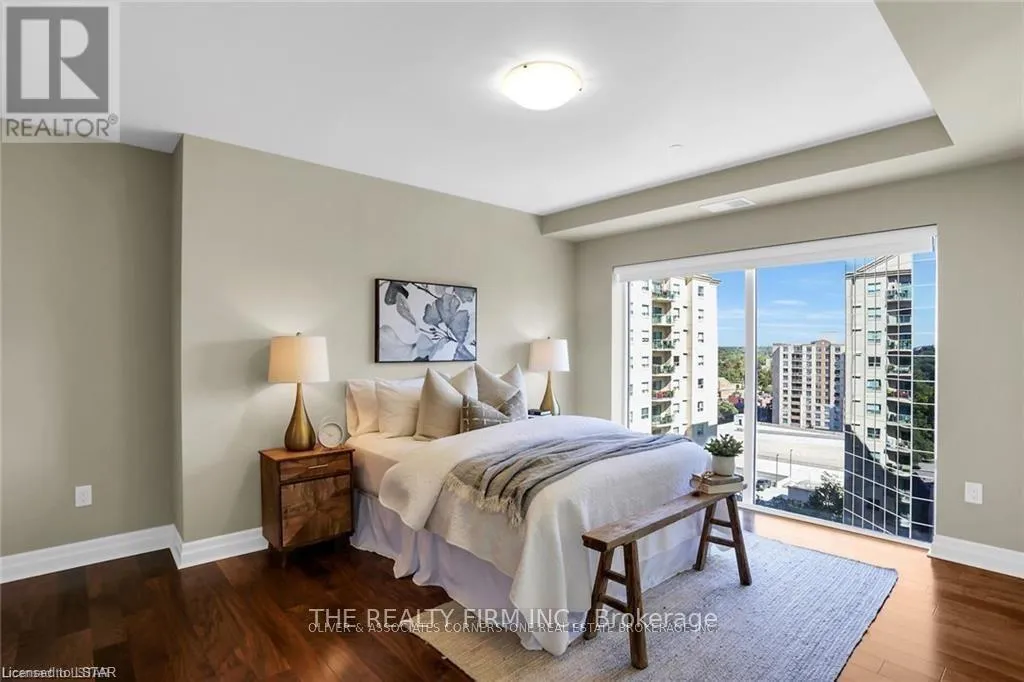 Cross Streets: TALBOT/DUFFERIN. ** Directions: NOTH/WEST CORNER OF TALBOT/DUFFERIN. Exclusive downtown living at its best! Amazing 2 bed, 2 bath unit located in the always-in-demand Azure Condominium with 1250sf.ft (Balcony). The open concept design makes for bright, expansive spaces: perfect for entertaining. There are huge floor to ceiling windows: lots of light: views of the city. Enjoy both the sunrise and sparkling city lights after dusk from your balcony. This suite will wow you with it's high-end finishes: quartz countertops in kitchen and bathrooms, premium engineered hardwood on all floors. Quality tile in all wet areas. The primary bedroom is large and has a walk-in closet, spa-worthy 3-pc ensuite with a walk-in shower. The second bedroom has fabulous light and a spacious closet. The 4-pc main bath is beautifully finished. Both bathrooms have grab bars. There is a laundry center in -suite as well as a storage room in-suite. Exclusive use to your storage locker is on the same floor. Parking spot located directly across from the elevator for easy access. Very best Amenities! 29th floor: golf simulator, exercise room, pool table, kitchenette, community BBQ, outdoor patio with ample seating& library. Guest suite available. **EXTRAS** Perfectly located in the heart of London, Budweiser Gardens, restaurants, shopping, Covent Garden Market, parks& trails along the Thames to enjoy the ever-changing colours of the seasons. Everything, right at your fingertips! (id:27476)