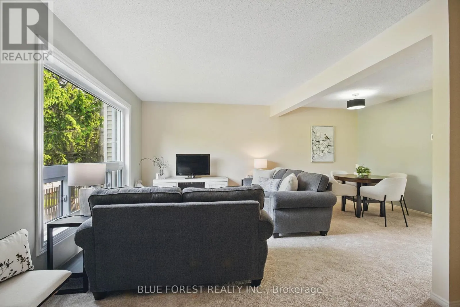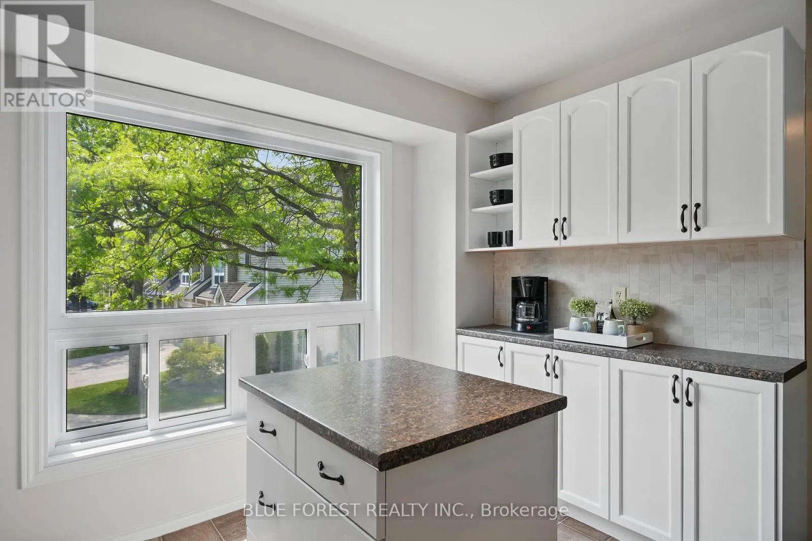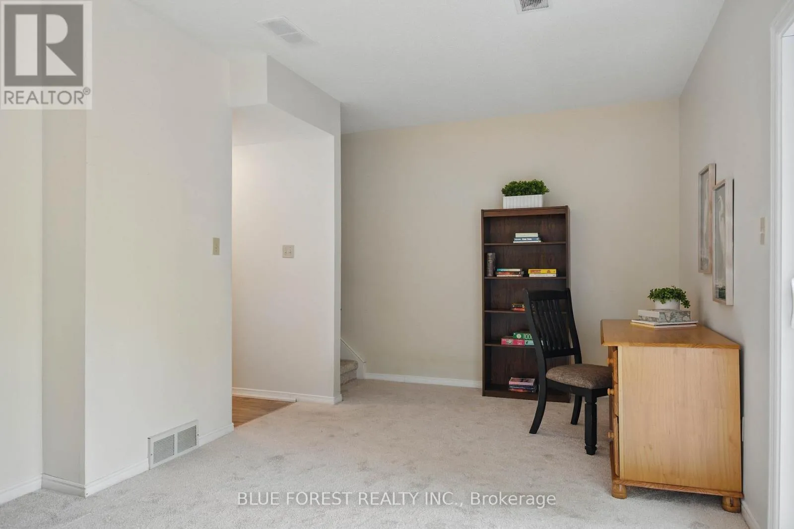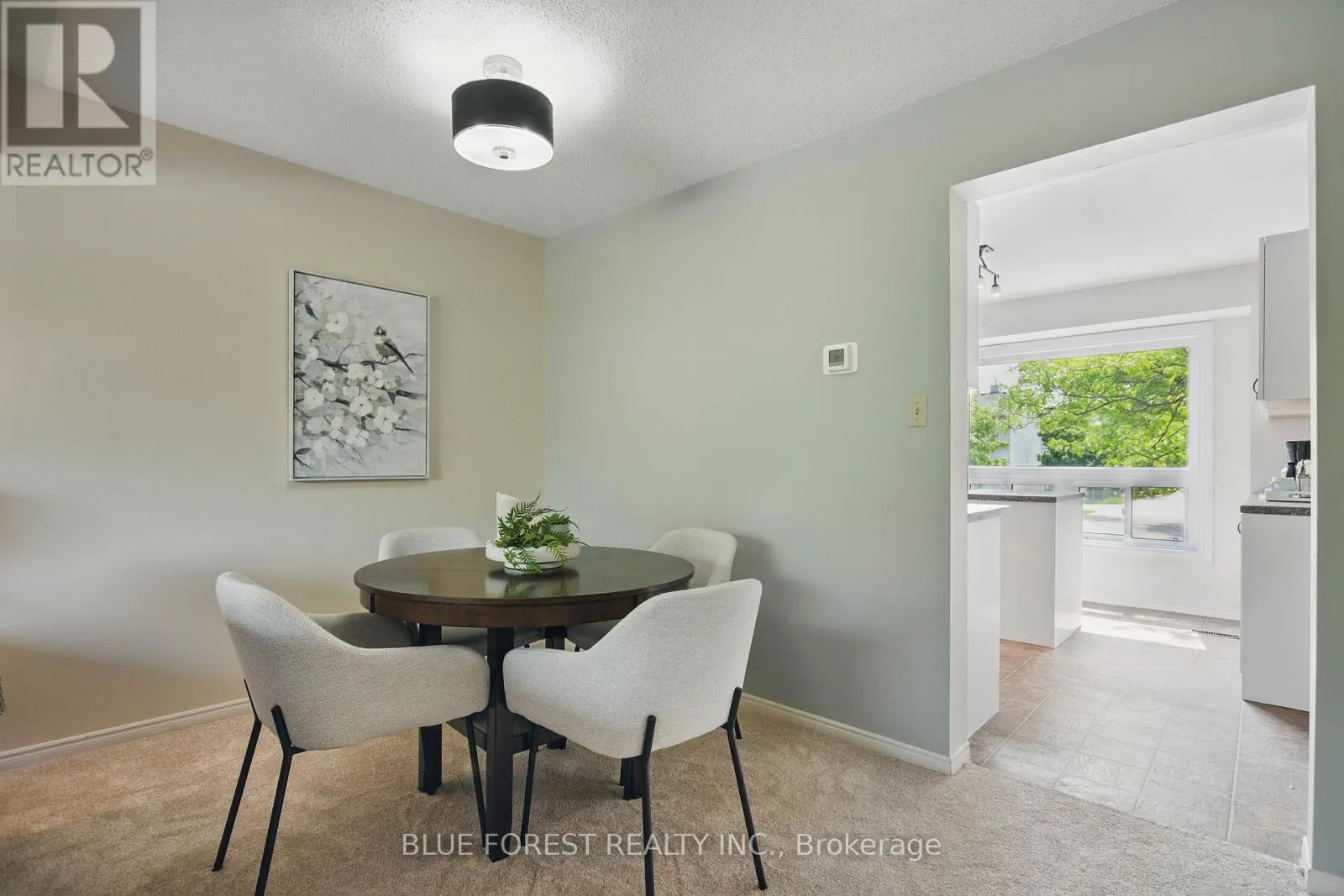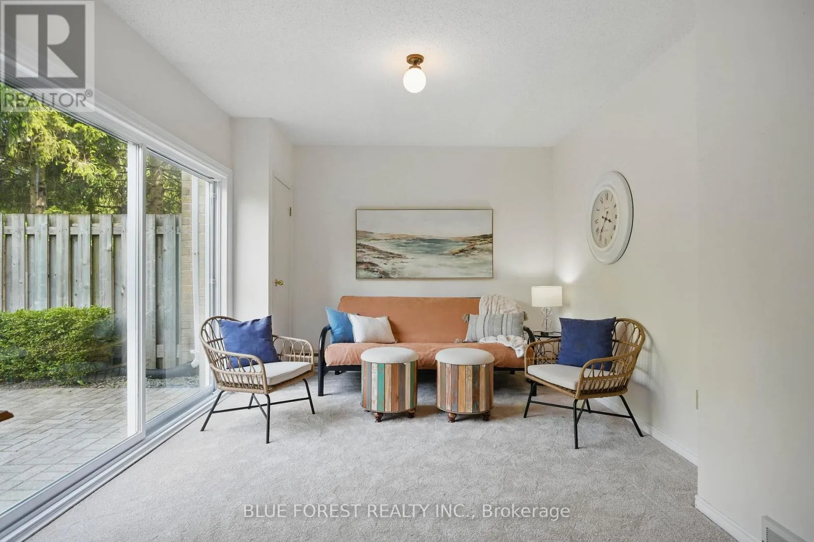 Cross Streets: Dundas. ** Directions: East of Clarke Rd on Dundas, turn south on Wavell St. Big, Bright & Beautiful 3 level townhouse with great open views to the east from the main living space! Most flooring was replaced in May 2025, and most of the unit has been freshly painted. Sunny kitchen has been updated with extra cabinets installed as a pantry/coffee bar, along with a central island, and newer backsplash. The ground level offers inside access to the garage, lots of storage space, and a lovely family/hobby space with oversized sliding doors to the private patio area. Super spacious bedrooms on the upper level, all with large east/west facing windows! Excellent private location within the complex! Park the car and walk to the Argyle Shopping District, Library, Arena, Community Centre and Clarke Rd High School! (id:27476)