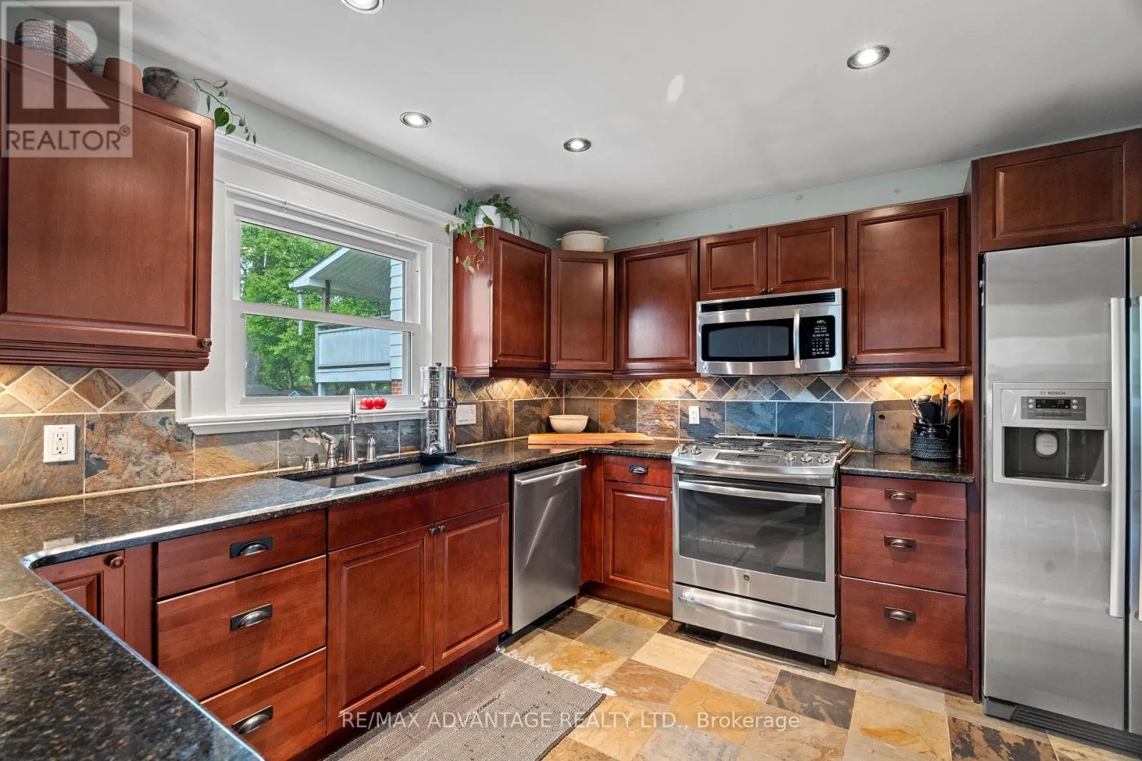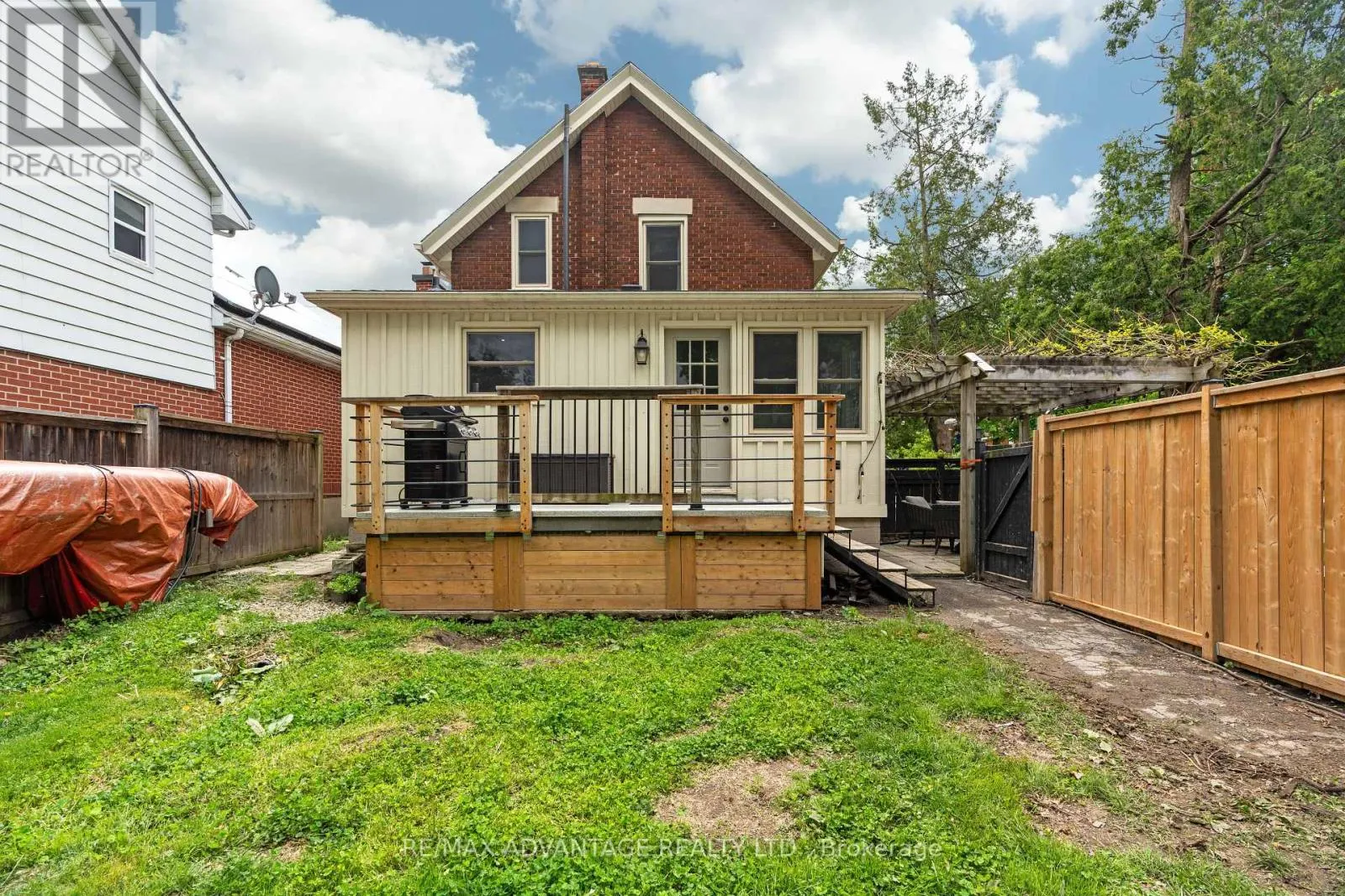 Cross Streets: Beattie Ave & Gilbert St. ** Directions: Heading North on Highbury Ave No turn right on to Beattie. The property is on the left. Timeless Brick Home with In-Law Suite & 1.97% Assumable Mortgage. This charming 1 3/4 storey all-brickhome perfectly blends century-old character with modern upgrades - plus the rare bonus of a 1.97%assumable mortgage. Set on a large corner lot with a private double-wide driveway, this home features tallceilings, original trim, cast iron vents, and solid wood doors that speak to its craftsmanship. Hardwood &tile floors - no carpet throughout! Enjoy an updated kitchen with granite counters and stainless steelappliances, leading to a spacious fenced yard with many extra features. French doors connect the livingroom and family room which feature large windows overlooking the shaded corner lot. Main floor laundryand mudroom give convenient access to the backyard. The 2nd floor holds 3 bedrooms with closet spaceand a 4-pc bath with jetted soaker tub. A separate entrance to the lower level allows for an in-law suite.The lower level suite comes complete with room for a tenant, 2nd kitchen & 3 pc bath ideal for extendedfamily or rental income. Exterior features include a large private yard with a good mix of sun and shade, aRoomsPhotoscovered front porch with new rails and waterproofing (2025), back deck waterproofing (2024), fully fencedbackyard (2021), insulated studio/workshop (2025), garden shed (2021), exterior gas line (2021) andbrick repointing (2025). Pride of ownership is evident here! Located near many amenities, including the401 and downtown London. This house is truly a home which offers character, comfort, and convenience inone package. Suitable for many living situations including families, couples, investors and those looking forsome extra monthly income! (id:27476)