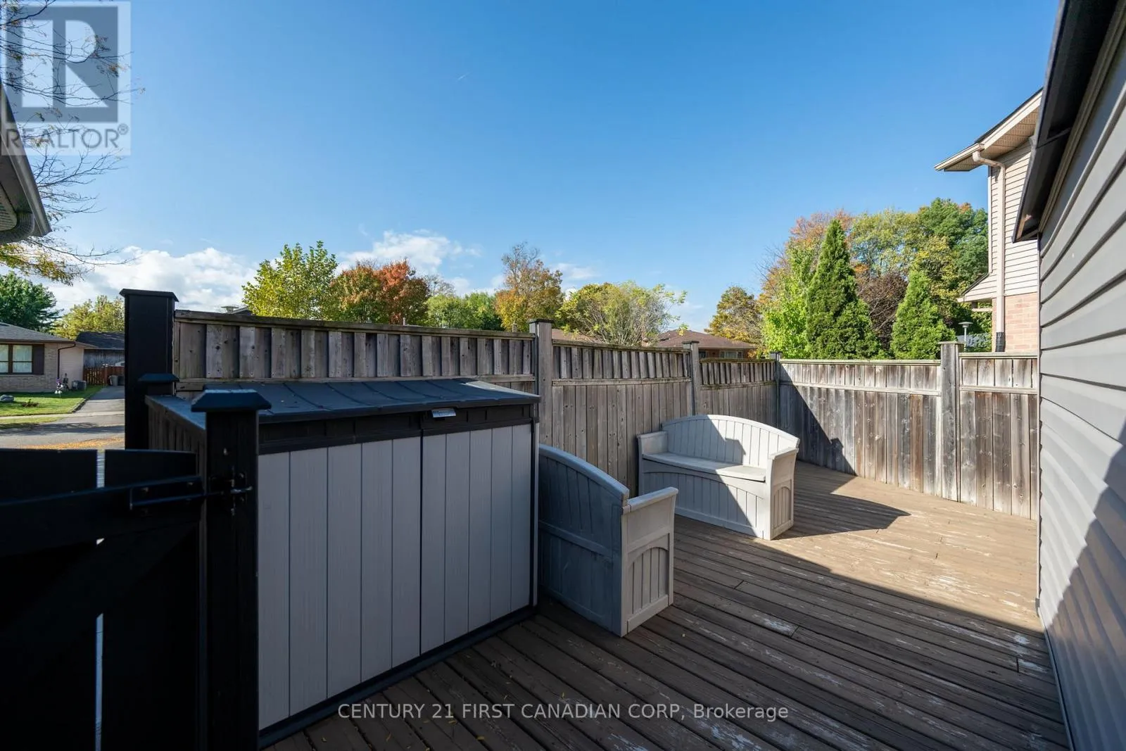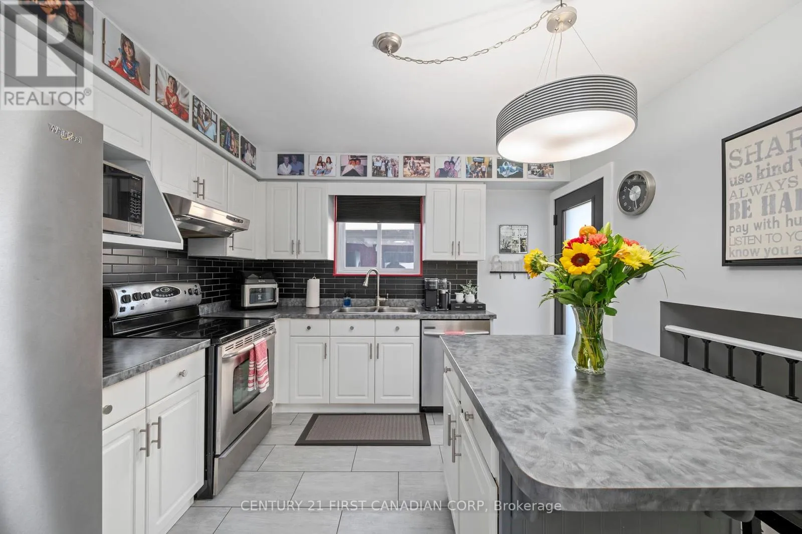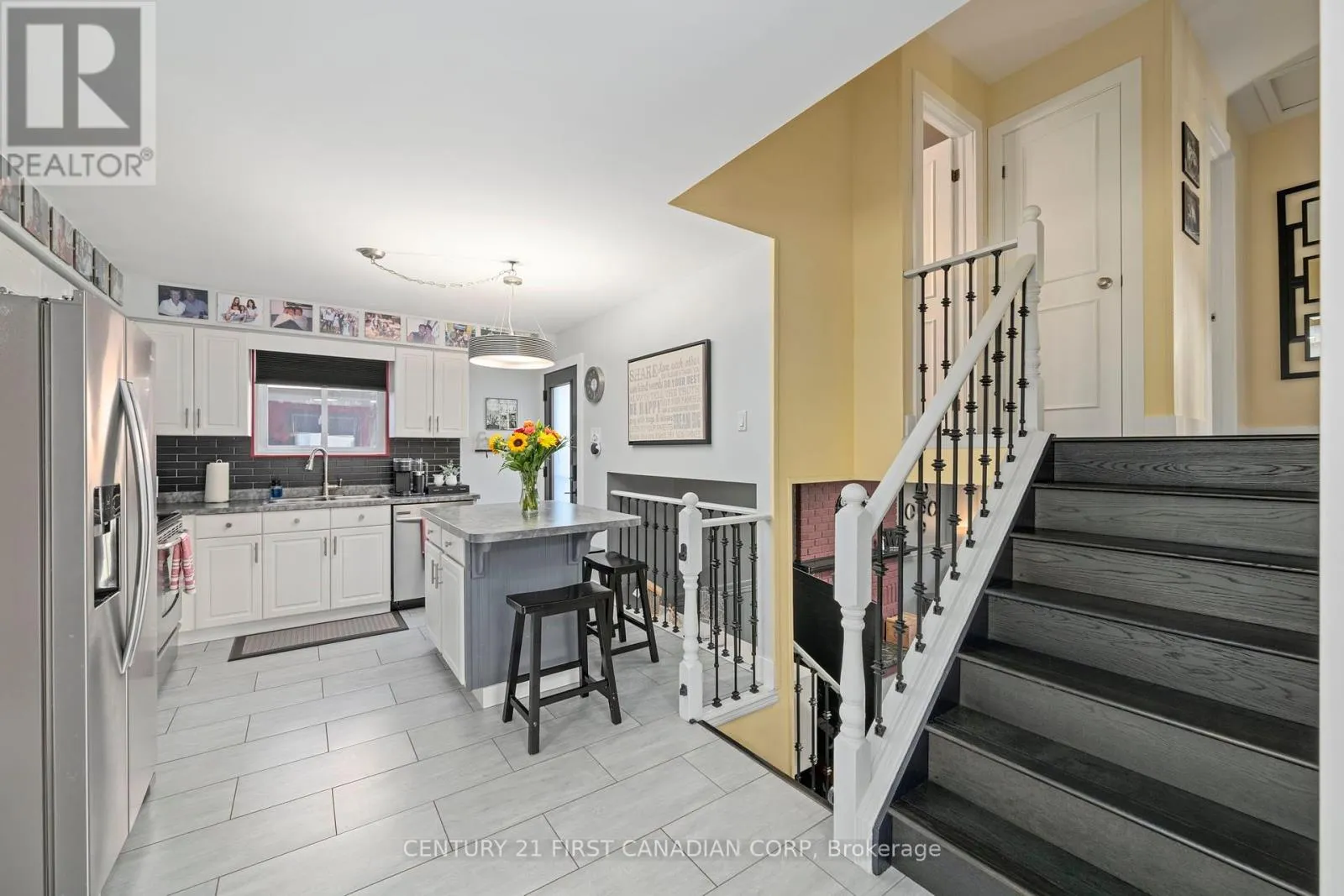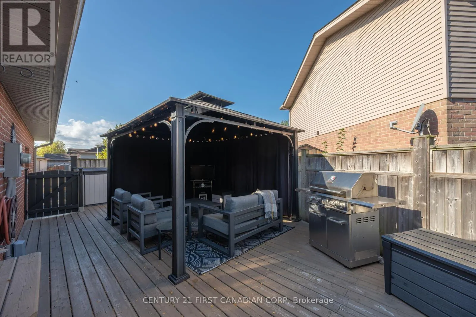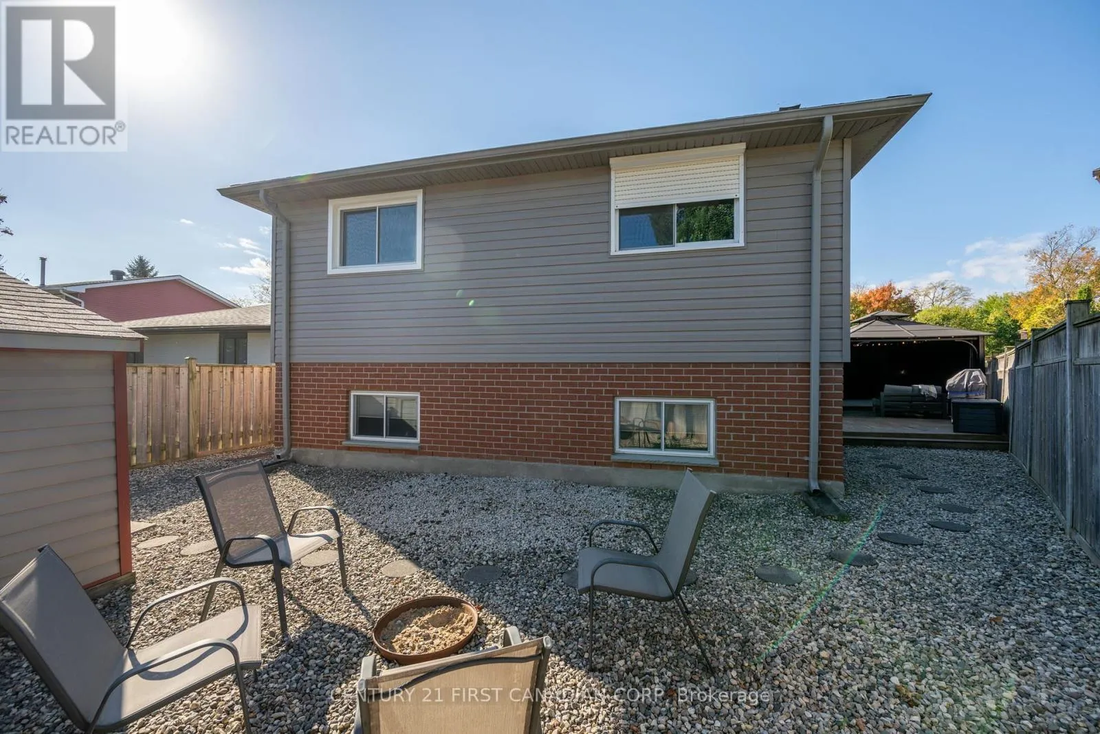 Cross Streets: Hamilton Rd/River Run Terrace. ** Directions: East on Hamilton Rd, Left on River Run Terrace, Left on Danielle Crescent. First time on the market! This cherished 4-level backsplit has been lovingly cared for by its original owners and is filled with warmth, memories, and pride of ownership. From the moment you step inside, you'll feel the welcoming energy of a home thats been well-loved and thoughtfully maintained and updated over the years.The open-concept main level is perfect for family living and entertaining, with a bright and spacious flow between the kitchen, dining, and living areas. Upstairs, you'll find three generous bedrooms, including a primary suite with a convenient cheater ensuite.The lower level is made for additional family fun or relaxation, featuring a cozy family room, bar area, and space for family game nights or entertaining guests, plus a handy 3-piece bath. The basement offers a laundry area, workshop with plenty of storage, along with an insulated fruit cellar with ventilation ideal for extra storage or pantry space. Step outside to your private backyard retreat, complete with a deck and gazebo. The perfect spot to unwind, watch a show, or enjoy an evening with family and friends. Located in a friendly, family-oriented neighbourhood, close to East Park for endless outdoor fun, golf and the driving range. Shopping, schools, amenities and quick access to Highway 401. A truly special home, loved for many years and ready for the next family to create their own lasting memories. (id:27476)