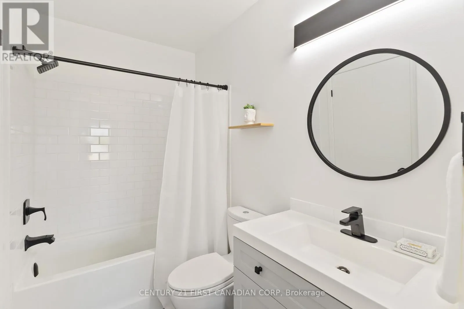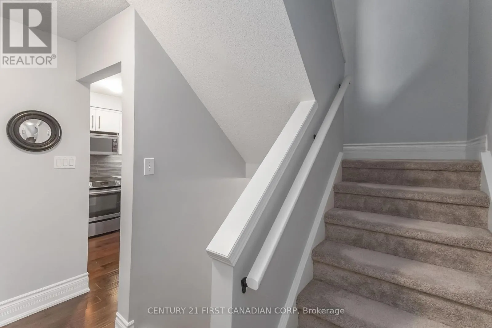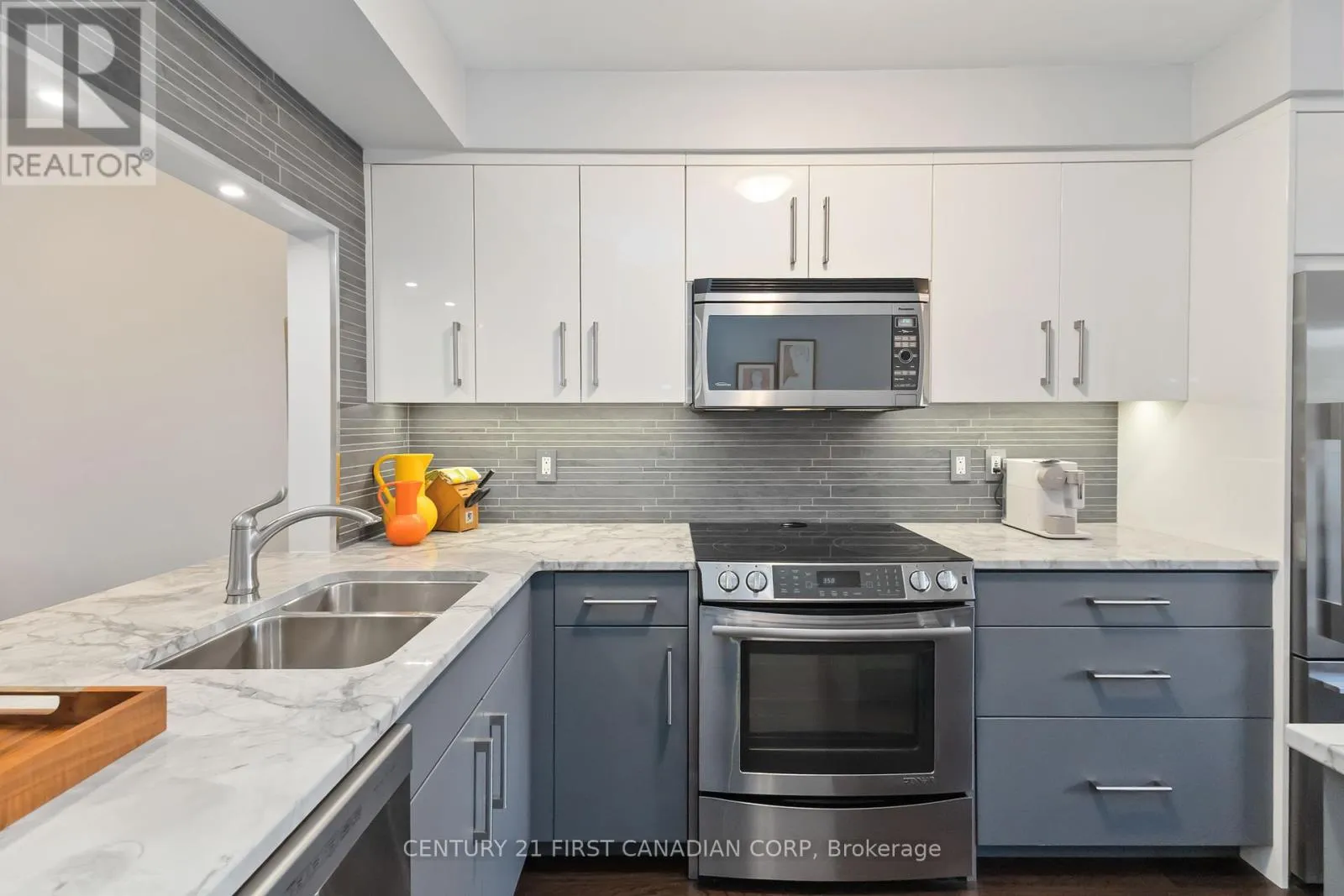 Cross Streets: just south of Pall Mall. ** Directions: Turn South from Oxford on Colborne St, property is on West Side. Located in the sought-after Woodfield district, this townhouse condo is a must see. You will fall in love with the neighbourhood, its top-ranked schools, and the unbeatable proximity to downtown, Western University, and both University and St. Josephs Hospitals. Inside, the bright and updated kitchen offers quartz countertops, a large island with seating and storage, plus a full-sized dining area. A pass-through breakfast bar opens to the spacious living room, which flows into a cozy sitting area with sliding doors to the upper deck. This is the perfect space for outdoor entertaining and BBQs. Upstairs, you will find 3 bedrooms, including the primary with ensuite access to the 4-piece bathroom. The finished lower level adds even more living space, featuring a family room with walk-out access to a private fenced patio and hot tub retreat. An attached single-car garage has extra storage space and inside entry. The driveway has tandem parking for two extra vehicles. Reach out today to see this one for yourself. (id:27476)