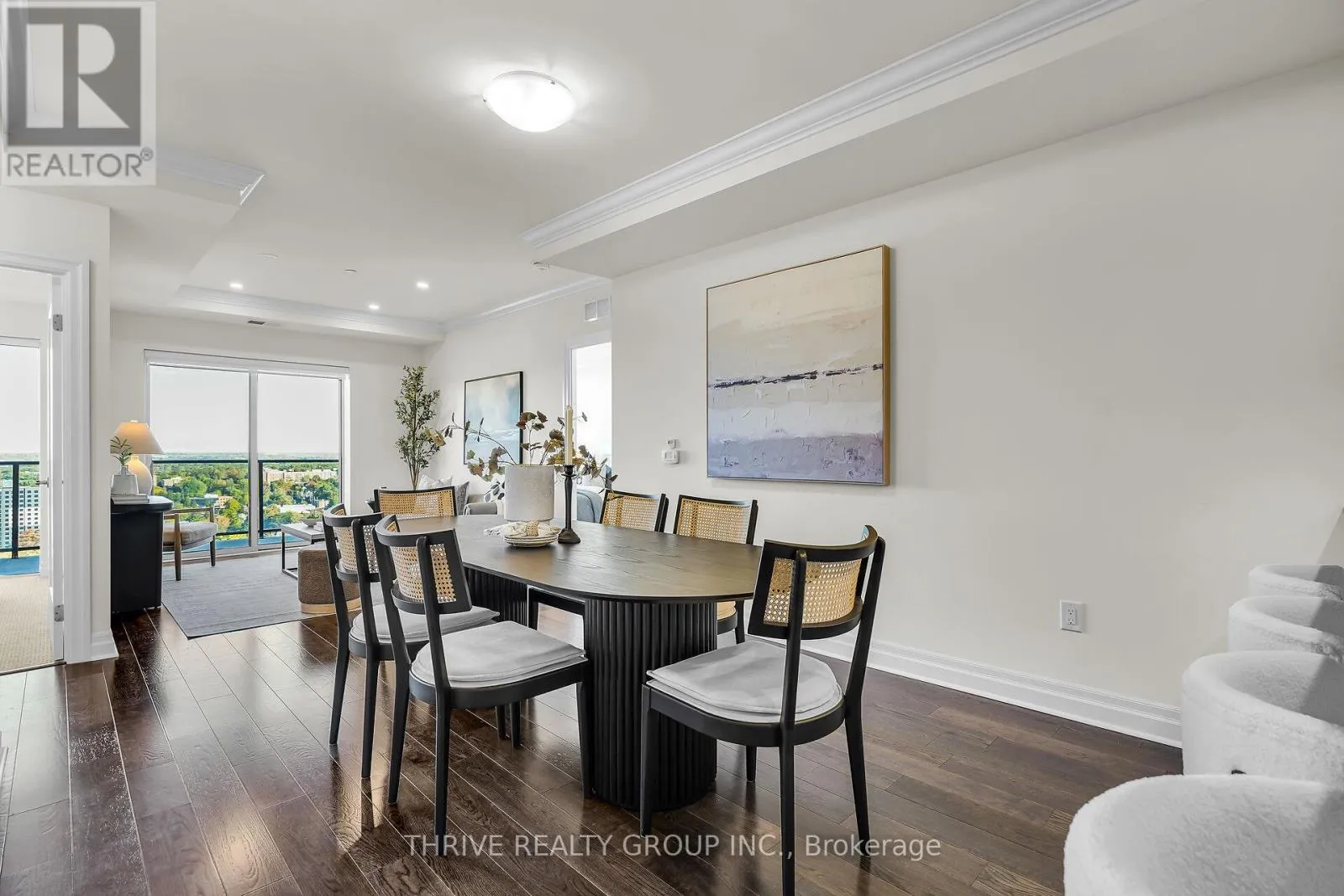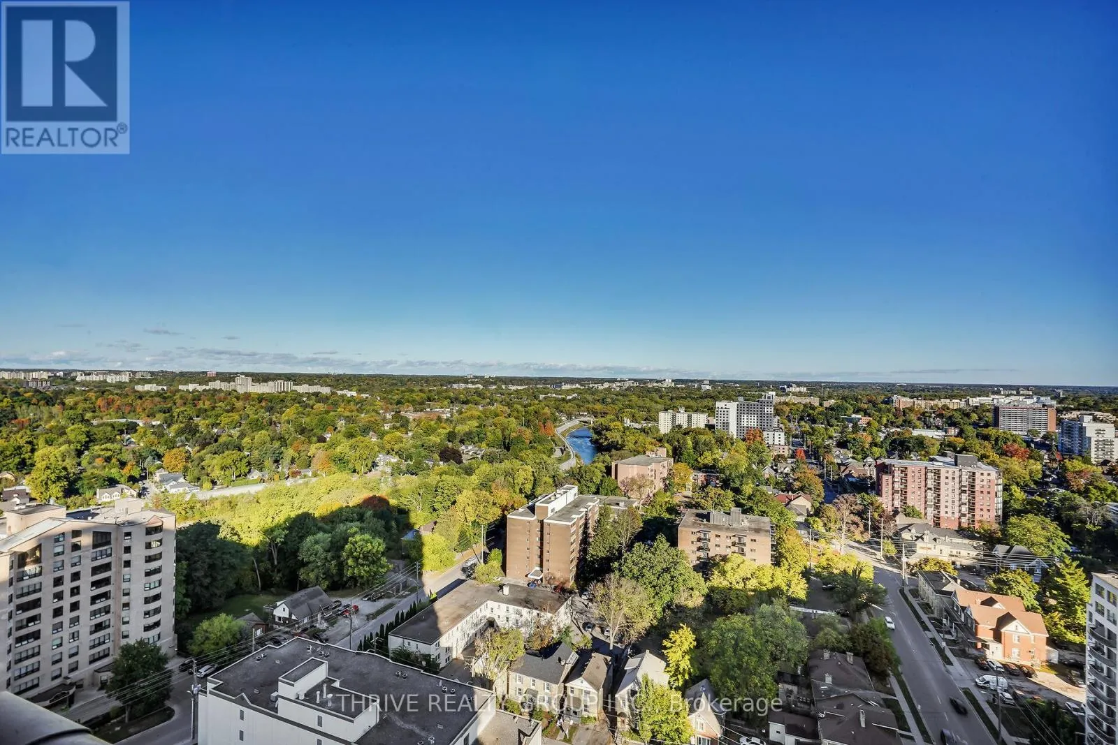 Cross Streets: Talbot/Dufferin. ** Directions: Corner of Talbot & Dufferin. Welcome to luxury living at the Azure Condominium! Executive 2 Bedrooms + Private Den / 2 Bathrooms / In-suite Laundry / Dedicated Parking with EV Charger. Located on the 22nd floor, this NORTH FACING Plaza 2L model offers 1,315 sq ft (+140 sq ft balcony) open concept living with breathtaking panoramic views of cityscapes and evening sunsets. Step into the well equipped kitchen featuring stainless steel appliances, quartz countertops, tile backsplash, plenty of cabinetry and breakfast bar. The thoughtfully designed open-concept floor plan includes a dedicated dining area that flows seamlessly into the living space. With floor-to-ceiling windows and direct access to the balcony, it's an ideal setting for entertaining guests and enjoying quiet evenings. The spacious primary suite complete with floor-to-ceiling windows, offers a luxurious ensuite bathroom with double sinks, spacious vanity and walk-in closet. The private Den/Office space is an exceptional addition to the floor plan whether you work from home or not ... private space is always an added bonus! Second bedroom with closet and 4 pc bathroom is conveniently located off the main living areas. Oversized laundry/utility room provides plenty of space for laundry appliances and extra storage for your convenience -- no need for a remote storage locker. Exclusive access to rooftop amenities featuring Social Lounge, Library, Private Dining Room, Golf Simulator & Fitness Centre. Rooftop terrace offers stunning city views, complete with BBQs, gas fire pits & plenty of seating, Guest Suite available. Located minutes from London's finest restaurants, parks, hospitals, Canada Life, public transit & more. Condo fees include heating, cooling, water & hot water. This is a "must see" opportunity - book your showing today and be prepared to fall in love! (id:27476)