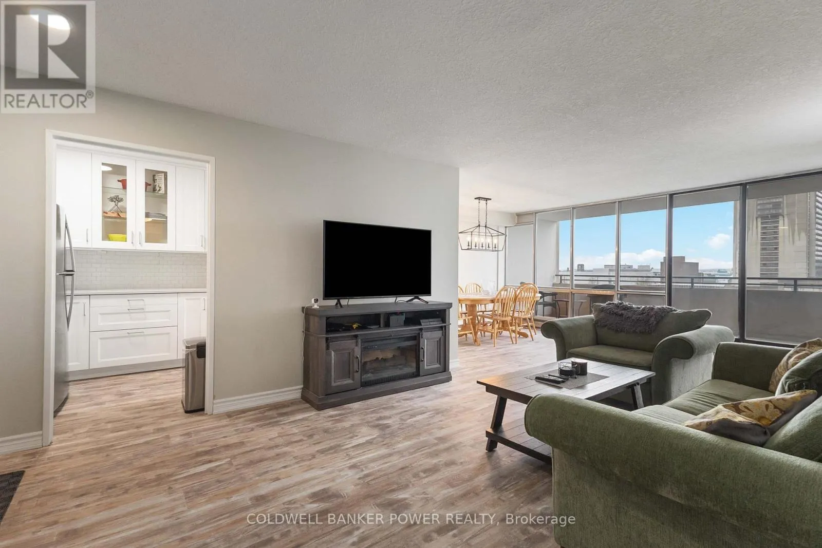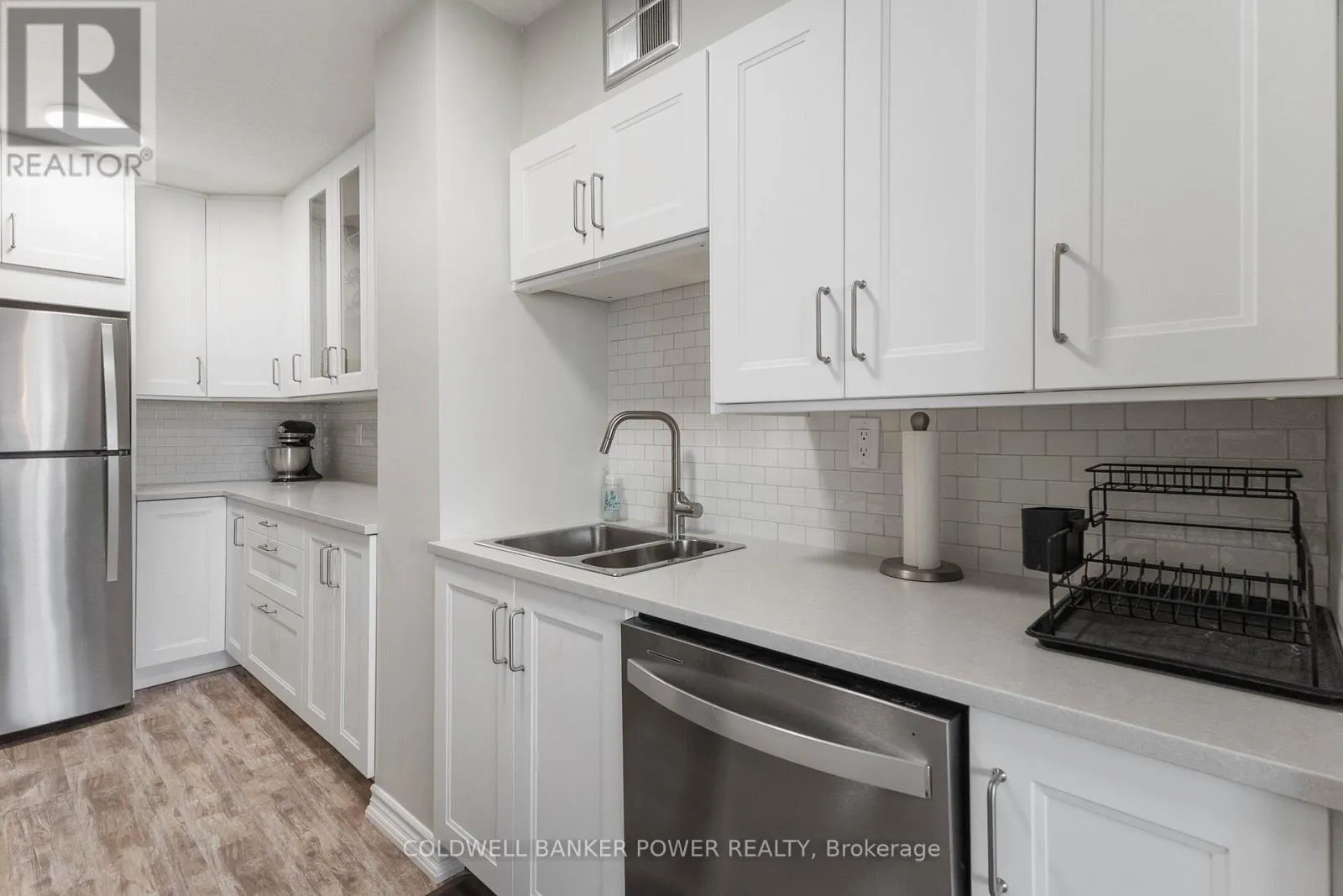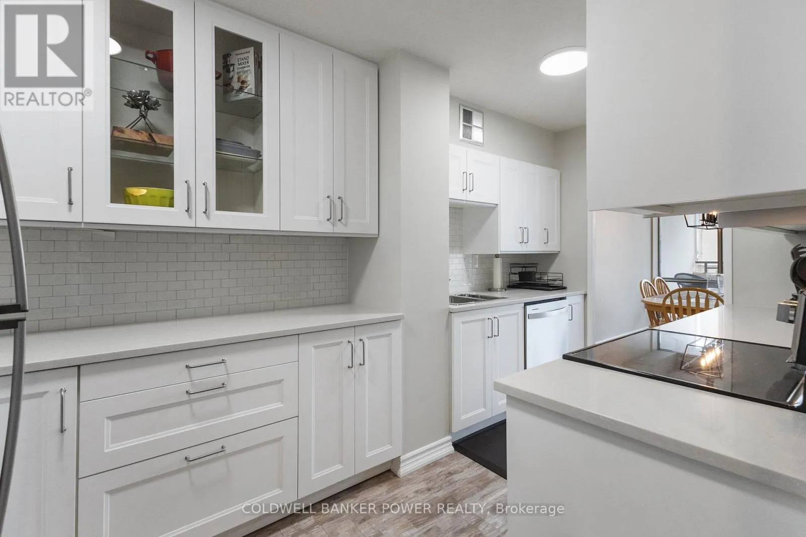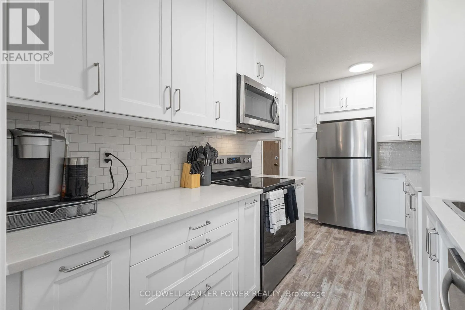 On the South West Corner of Dundas St and Colborne St Fully renovated 1 BEDROOM PLUS OFFICE/DEN, beautiful new white kitchen with quartz countertops and subway tile backsplash, neutral vinyl floors (no carpet), bright and spacious unit with desirable west facing exposure overlooking downtown and sunsets! Fantastic downtown location and within walking distance to great restaurants, parks, trails, shopping, transit, summer festivals and more! This home offers spacious primary bedroom and small den/office, huge great room area and large eating area overlooking wall to wall windows with access to expansive balcony. 1 underground parking spot included. NOTE: Condo fee includes: heat, hydro, water, internet, cable tv, central air as well as extensive amenities including indoor pool, party room, workout room, convenience store on main level, party room and secure entry. 4 appliances included. (id:27476)