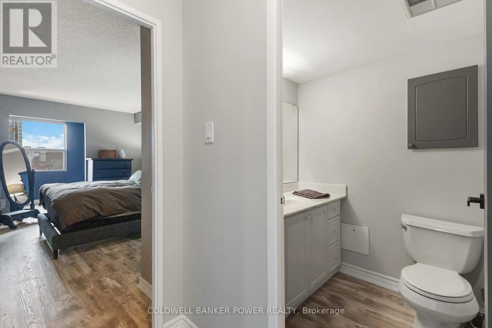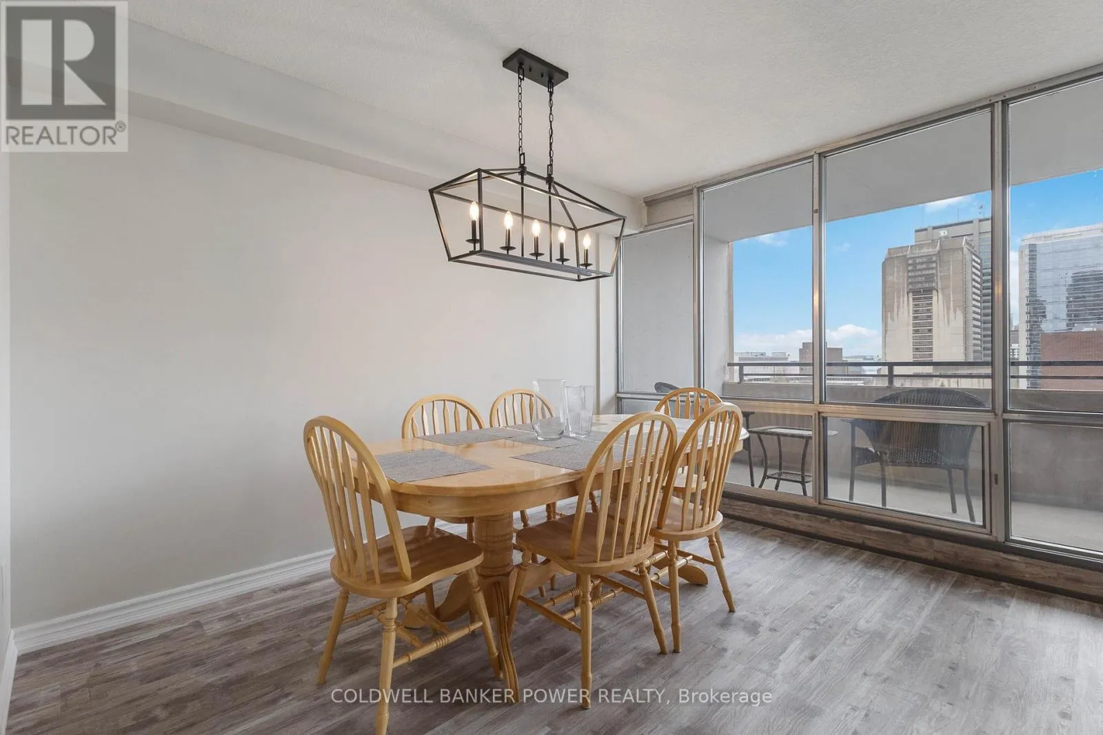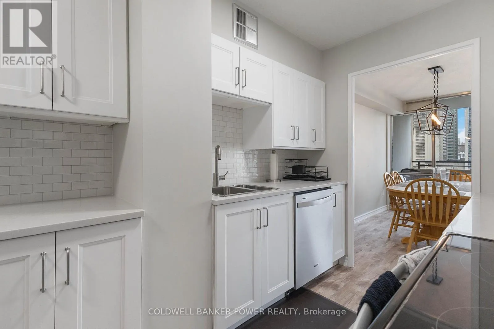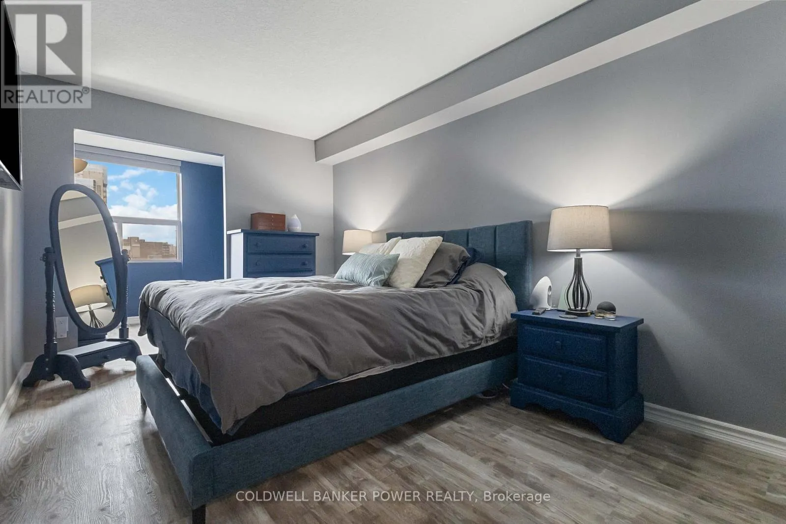 On the South West Corner of Dundas St and Colborne St Fully renovated 1 BEDROOM PLUS OFFICE/DEN, beautiful new white kitchen with quartz countertops and subway tile backsplash, neutral vinyl floors (no carpet), bright and spacious unit with desirable west facing exposure overlooking downtown and sunsets! Fantastic downtown location and within walking distance to great restaurants, parks, trails, shopping, transit, summer festivals and more! This home offers spacious primary bedroom and small den/office, huge great room area and large eating area overlooking wall to wall windows with access to expansive balcony. 1 underground parking spot included. NOTE: Condo fee includes: heat, hydro, water, internet, cable tv, central air as well as extensive amenities including indoor pool, party room, workout room, convenience store on main level, party room and secure entry. 4 appliances included. (id:27476)