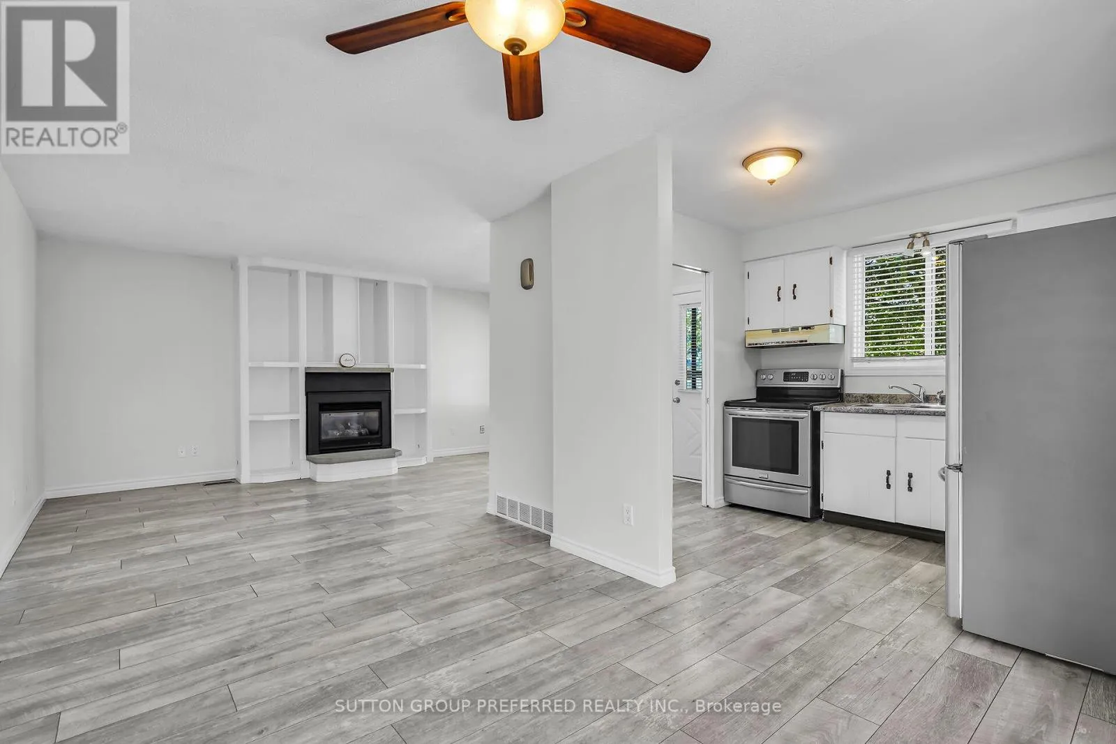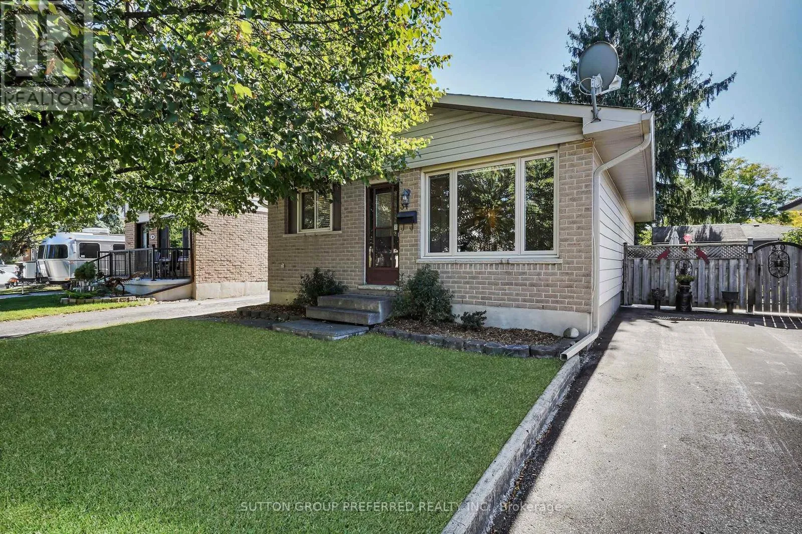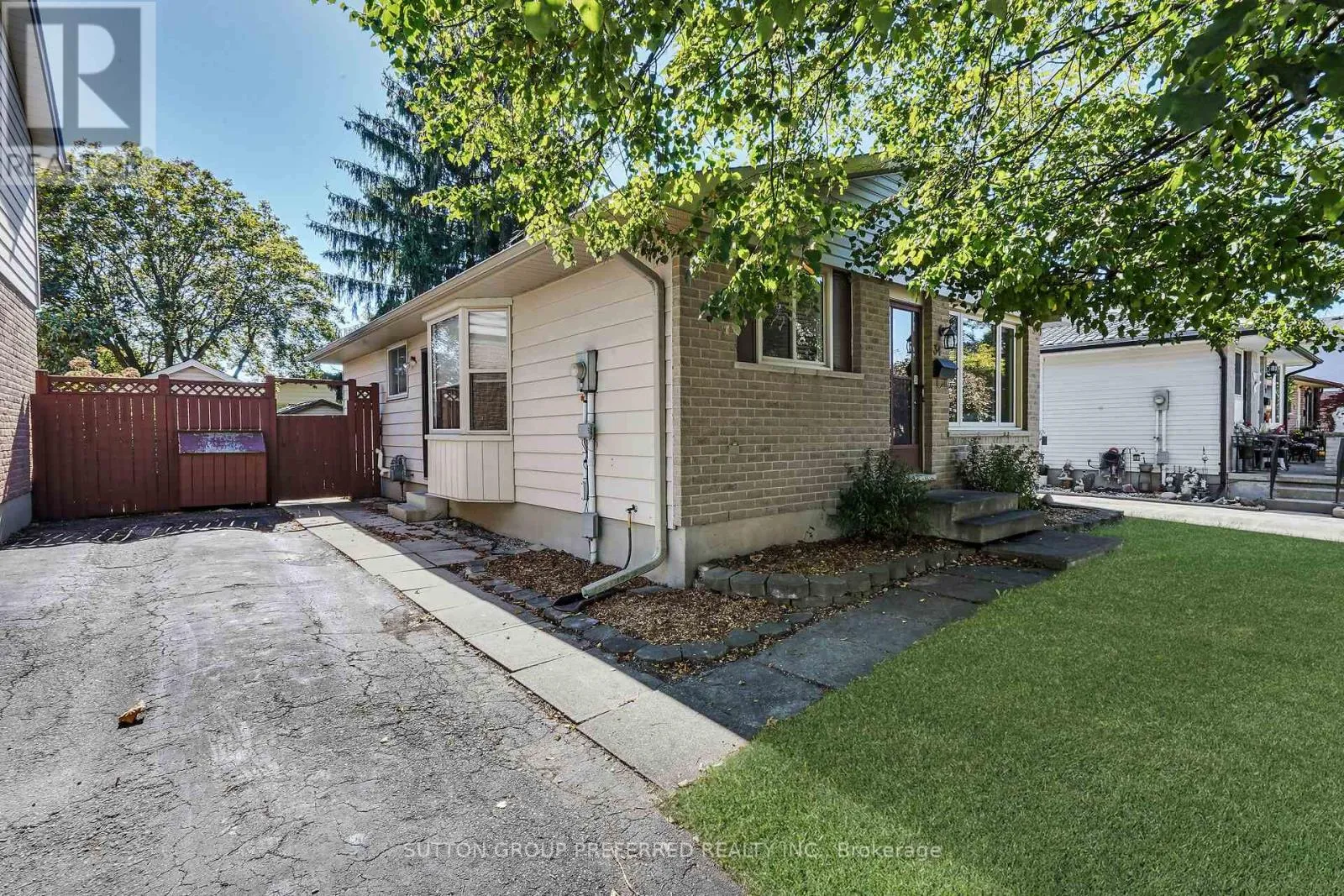 Cross Streets: Dundas & Carlyle. ** Directions: Dundas east to Carlyle then turn left onto Hearthside. Welcome to this charming 3 bedroom, 1 bath bungalow nestled on a quiet court location in family friendly Ronleigh Village in East London. Step inside to a partially open concept main floor, freshly painted, where wide vinyl plank laminate flooring flows throughout. The bright living room features a cozy gas fireplace with custom built-in shelving, creating the perfect gathering spot. The white kitchen comes with two appliances, while the roomy dining area offers a bay window that fills the space with natural light. Three well-sized bedrooms and a 4 piece bathroom complete the main level, making this home both practical and comfortable. Enjoy summer evenings on the patio while the kids and pets play in the fully fenced yard. A 12 x 9 vinyl sided shed with concrete floor provides ample storage for garden tools and outdoor equipment. The side door entrance from the lane way leads directly to the unspoiled lower level which offers endless possibilities for a future living space. Notable updates include: windows on main floor (2014), shingles (2014), soffits and fascia (2020). This home is ideally located close to schools, shopping, bus routes, and offers quick access to Hwy 401, a perfect fit for commuters, families, those downsizing or investors. Do not miss this opportunity to settle into a well-kept home in a welcoming community. Some photos are virtually staged. (id:27476)