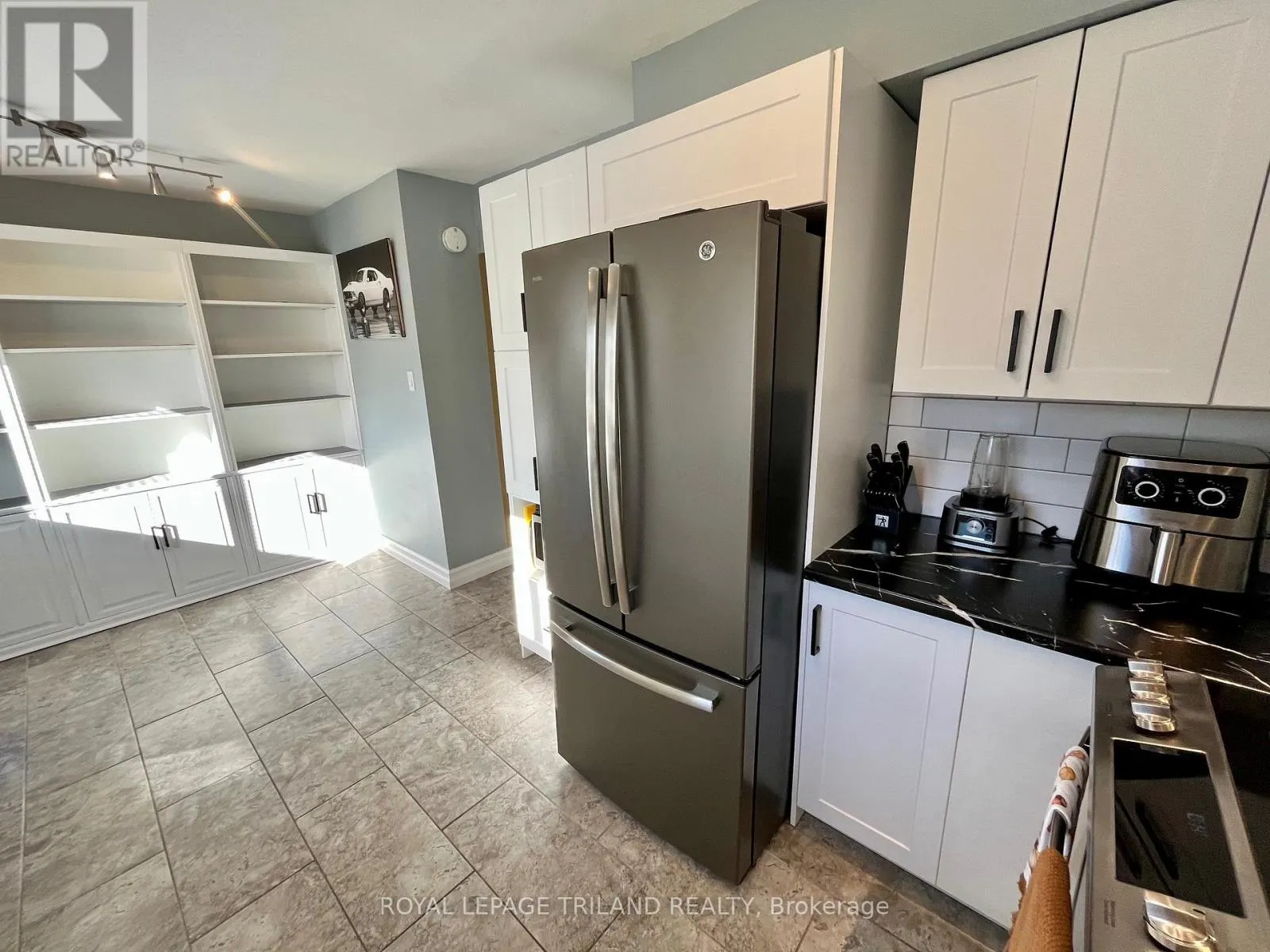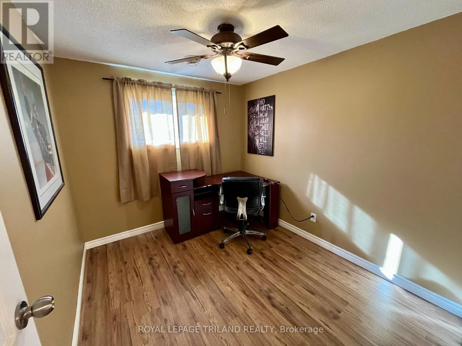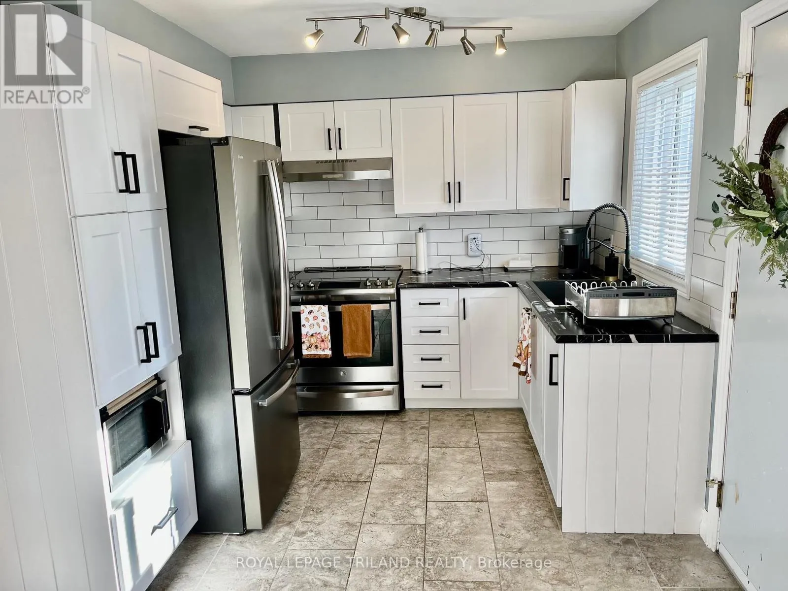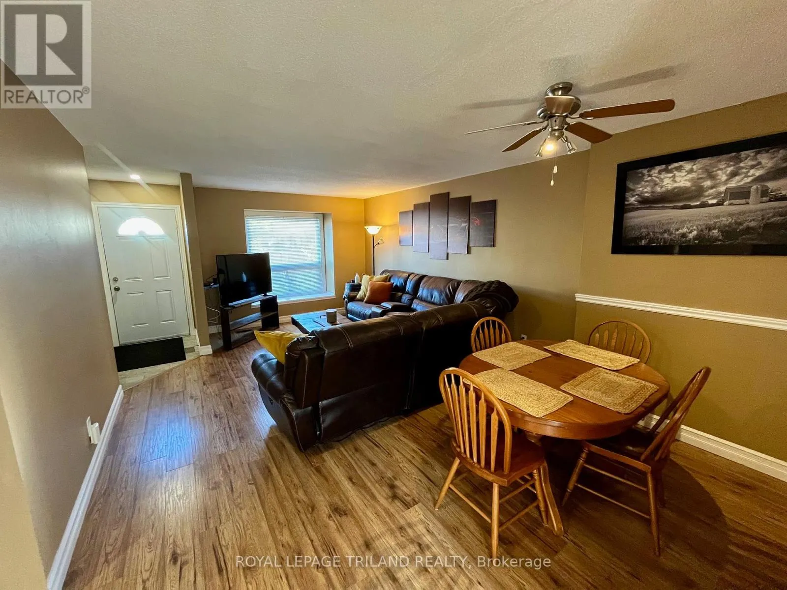 Cross Streets: OXFORD ST E AND THIRD ST. ** Directions: Oxford St E to Third St., complex is on West Side of Third St. Marvelous end-unit condo townhouse with an exclusive parking spot, ideally located just steps from Fanshawe College. Offered for sale for the first time in 17 years, this lovingly maintained, owner-occupied home showcases true pride of ownership throughout. Built in 1989, the property backs onto peaceful greenspace and is conveniently close to public transit and local schools. Enjoy year-round barbecuing on your private patio. Notable updates include: Kitchen (2022), furnace and A/C (2015), main floor laminate (2019), second floor laminate (2022), and fully remodelled powder room and 4-piece bathroom (2020), including new subfloor, tile, fixtures, and vanities. A new cook stove was installed in 2022. Don't miss this opportunity to own a beautifully cared-for condo in a desirable location! (id:27476)
