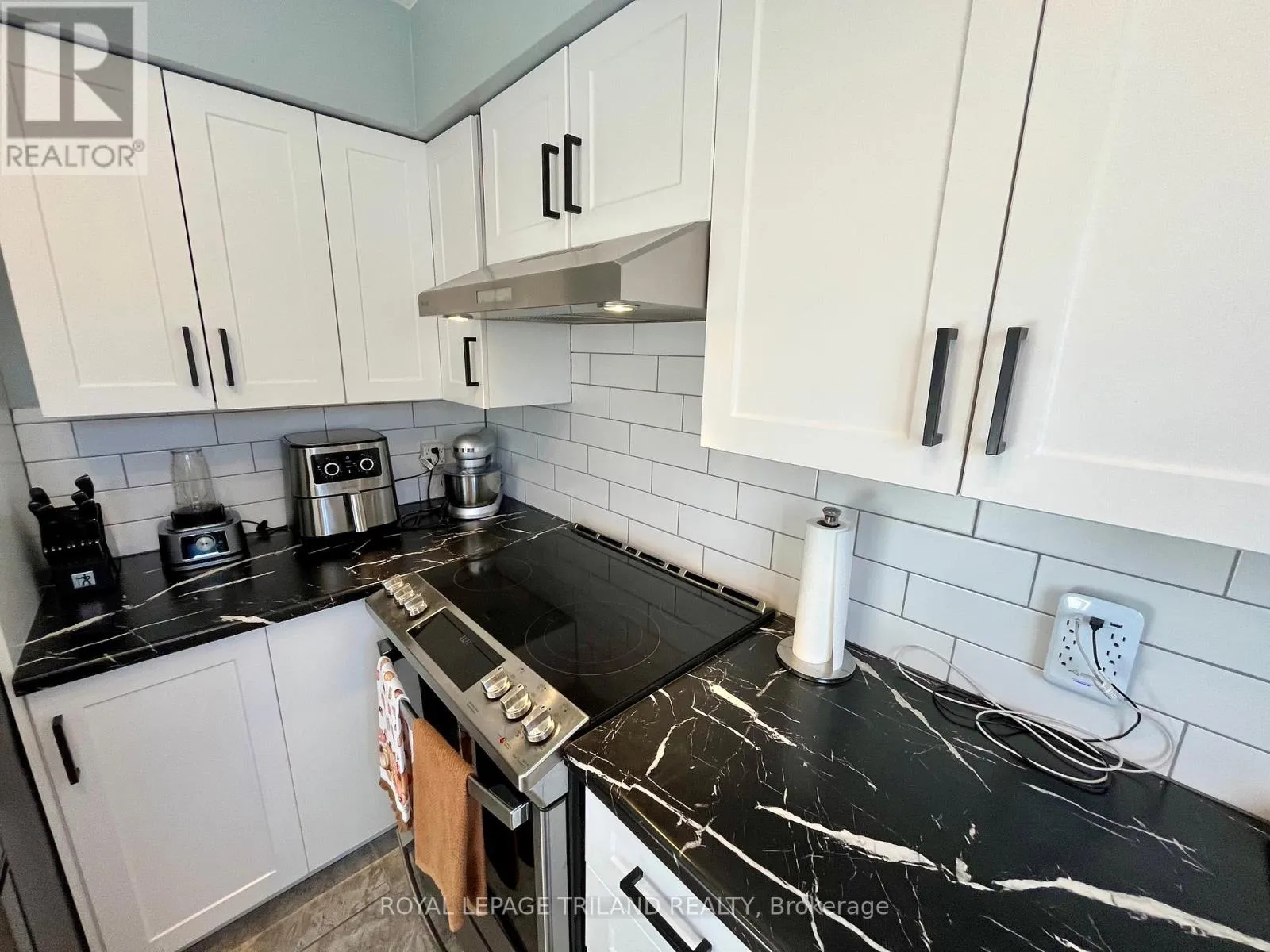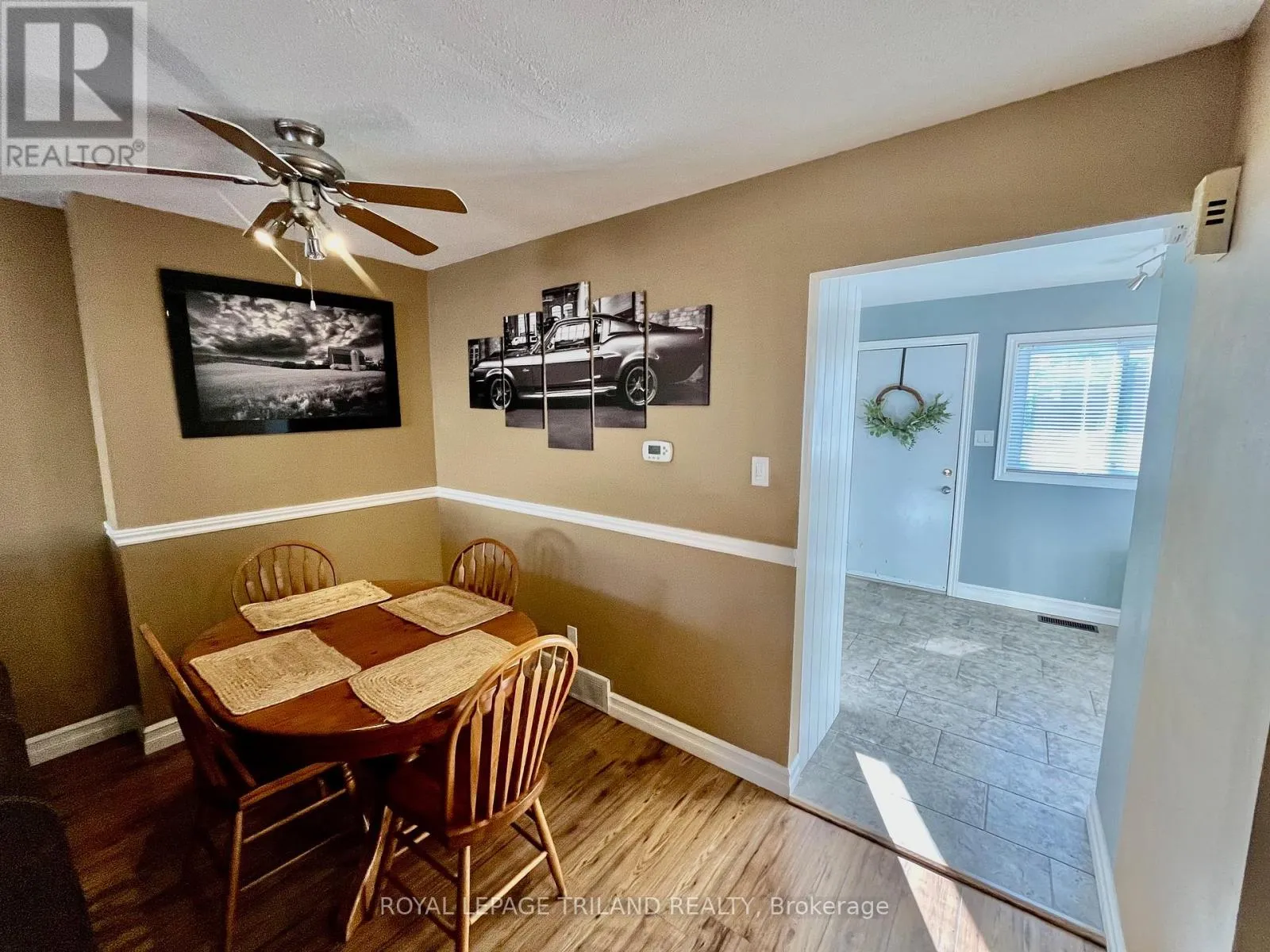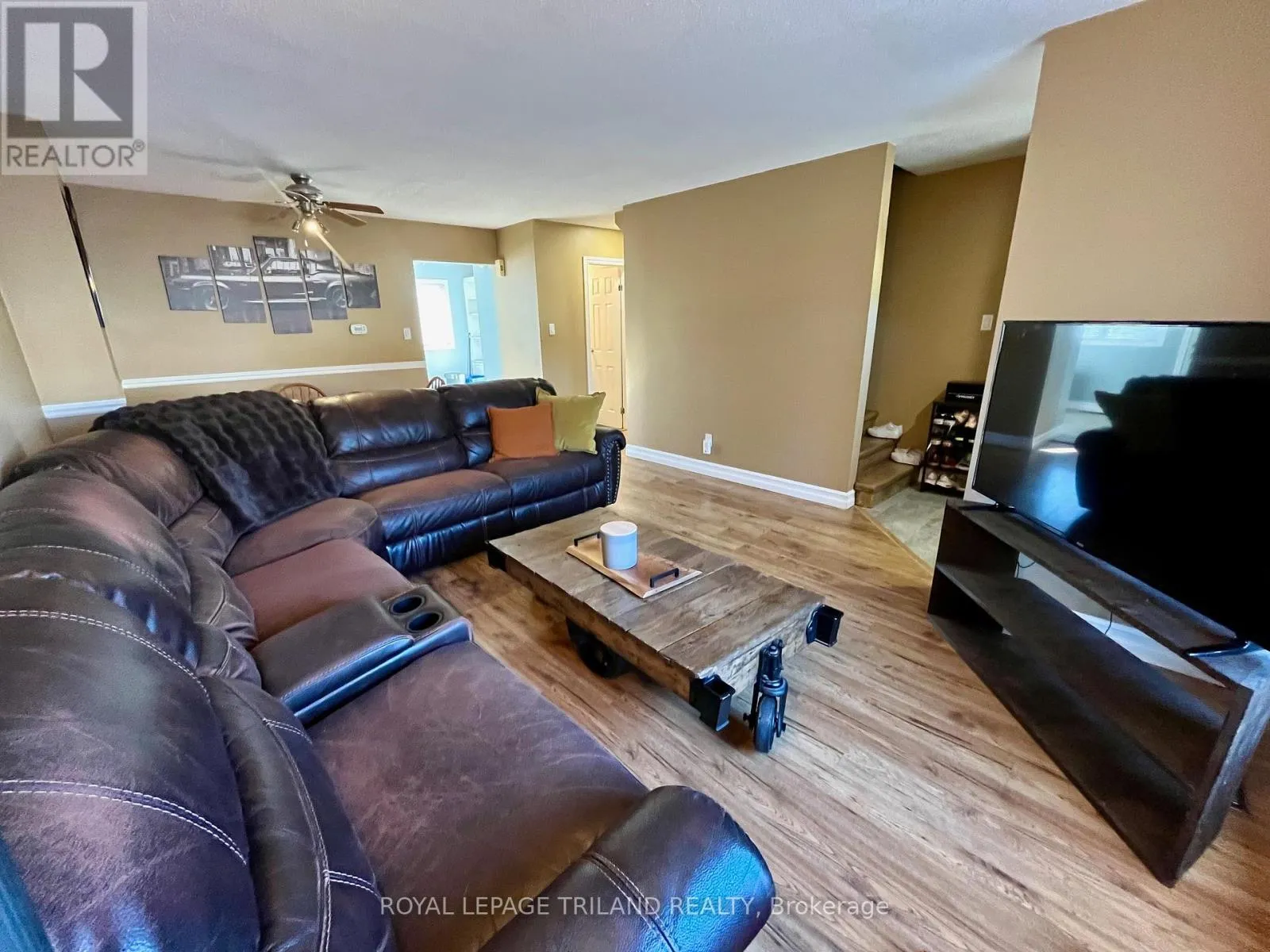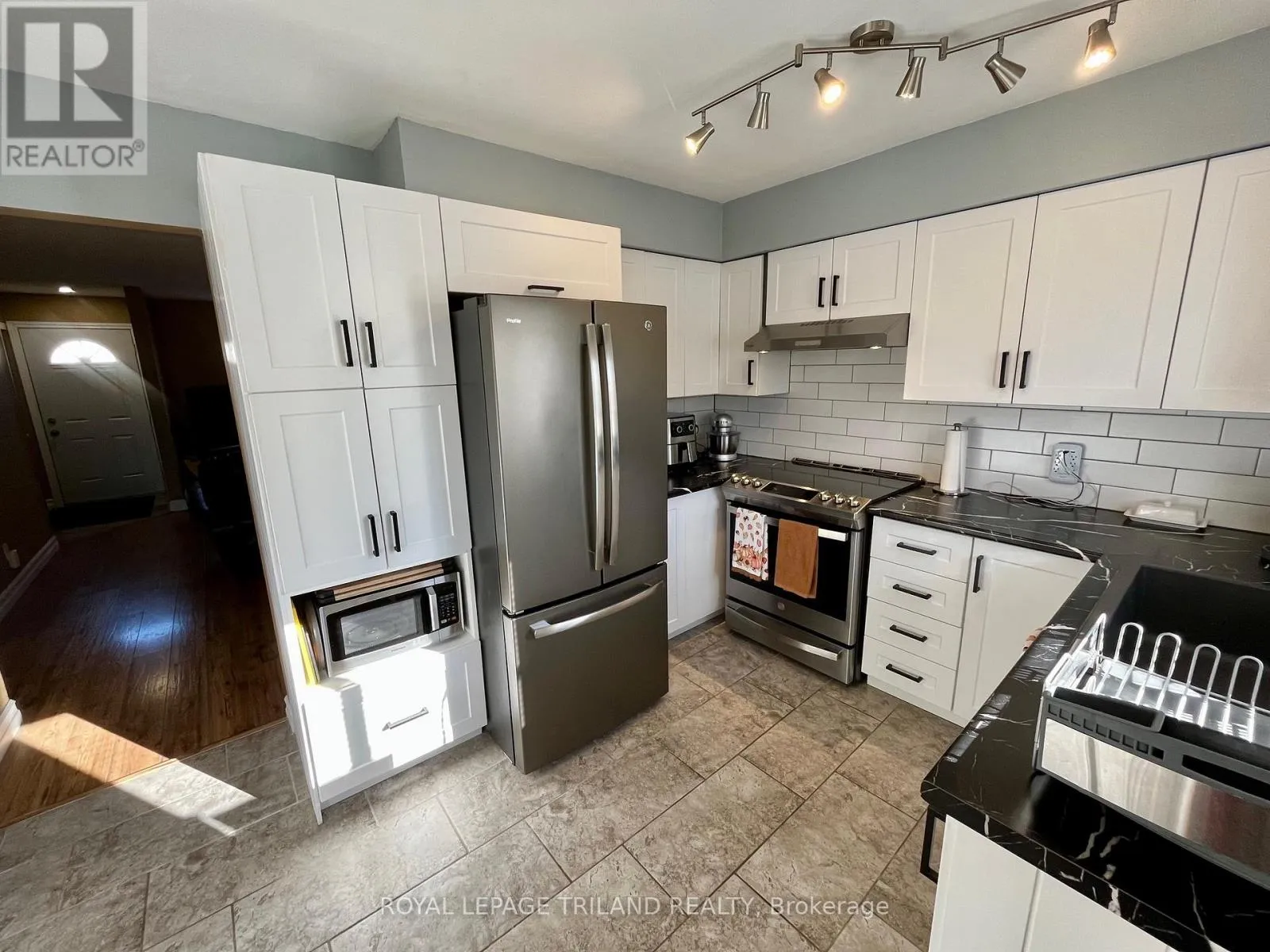 Cross Streets: OXFORD ST E AND THIRD ST. ** Directions: Oxford St E to Third St., complex is on West Side of Third St. Marvelous end-unit condo townhouse with an exclusive parking spot, ideally located just steps from Fanshawe College. Offered for sale for the first time in 17 years, this lovingly maintained, owner-occupied home showcases true pride of ownership throughout. Built in 1989, the property backs onto peaceful greenspace and is conveniently close to public transit and local schools. Enjoy year-round barbecuing on your private patio. Notable updates include: Kitchen (2022), furnace and A/C (2015), main floor laminate (2019), second floor laminate (2022), and fully remodelled powder room and 4-piece bathroom (2020), including new subfloor, tile, fixtures, and vanities. A new cook stove was installed in 2022. Don't miss this opportunity to own a beautifully cared-for condo in a desirable location! (id:27476)