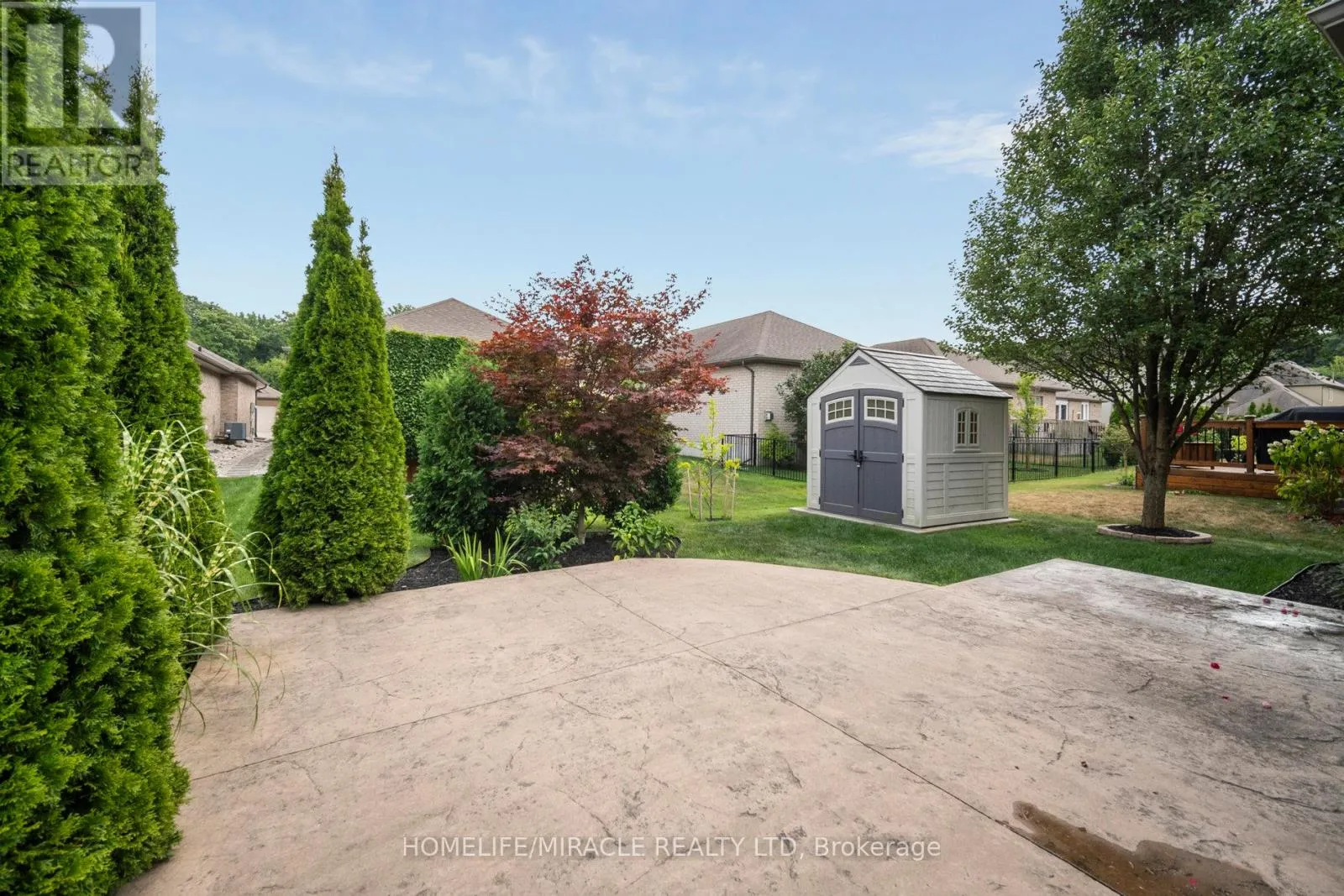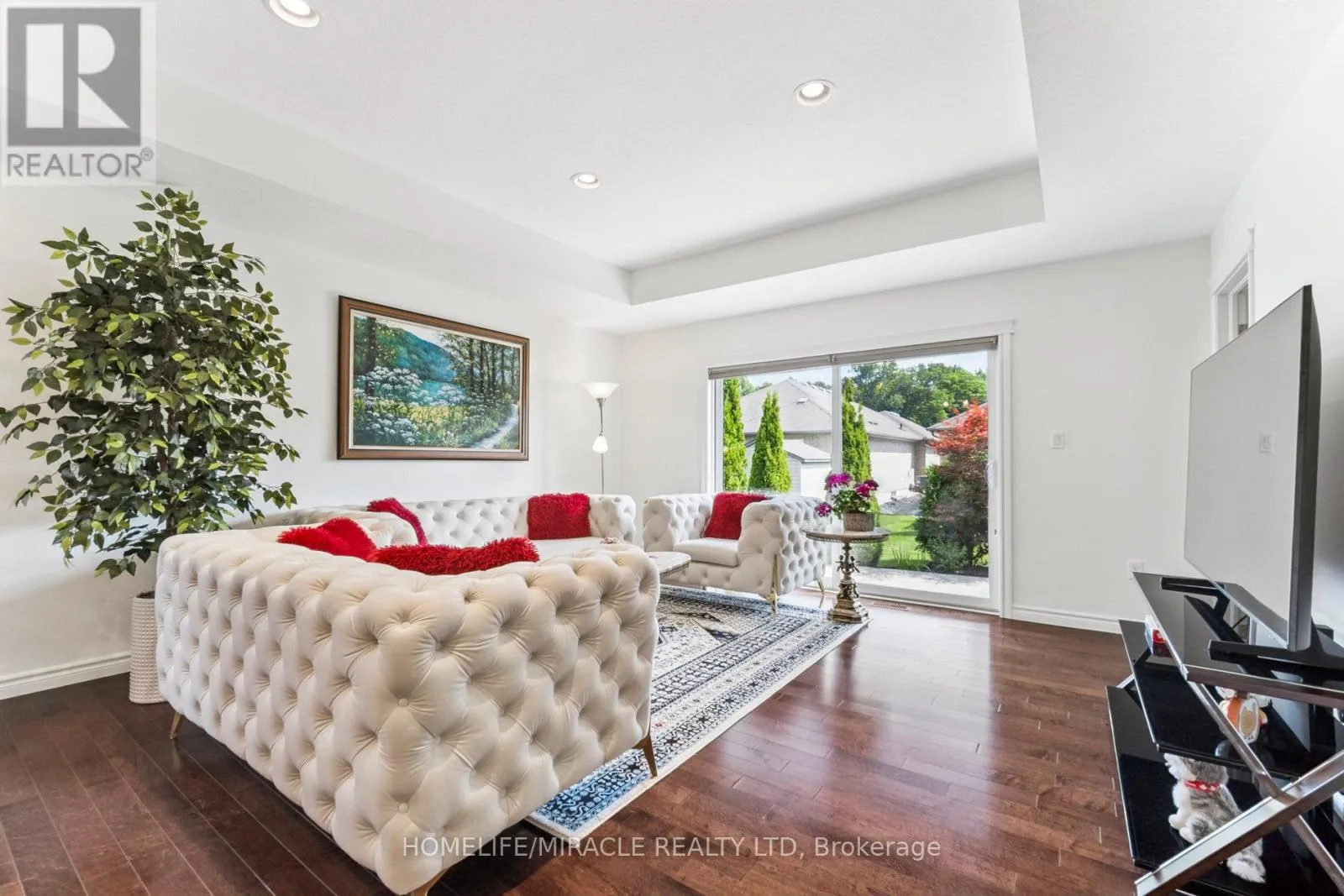 Enter East Off Highbury Ave. First Right In Complex. Home on left side. Offered in sought-after Maple Ridge Estates! This immaculate, move-in ready, low-maintenance home blends comfort and elegance with thoughtful upgrades-almost $50,000 invested in the last year alone. Featuring 4 spacious bedrooms (2+2), 3 full bathrooms (including a primary ensuite), a welcoming main floor, main-floor laundry, and a generous 2-car garage, it truly checks all the boxes. Freshly painted throughout, the home boasts brand-new hardwood flooring on the main floor and new flooring in the basement, complemented by 9-foot ceilings for an open, airy feel. The primary bedroom features a new window, while the basement includes two new windows with brand-new blinds. The open-concept living, dining, and kitchen area flows seamlessly to a larger, stamped-concrete patio and landscaped backyard-perfect for entertaining. The kitchen offers modern fixtures and ample prep space to enjoy under high, coffered ceilings in the living area. The garage is a standout, with a brand-new polyaspartic floor coating (10-year limited warranty), new drywall and insulation, and a full heating system-ideal for a workshop or man cave. Additional highlights include hardwood and tile flooring, a cozy gas fireplace, an expansive recreation room, and timeless finishes. All furniture is optional to purchase directly from the seller, offering a turnkey opportunity. Words can't capture all the goodness this home offers-book your showing today! (id:27476)