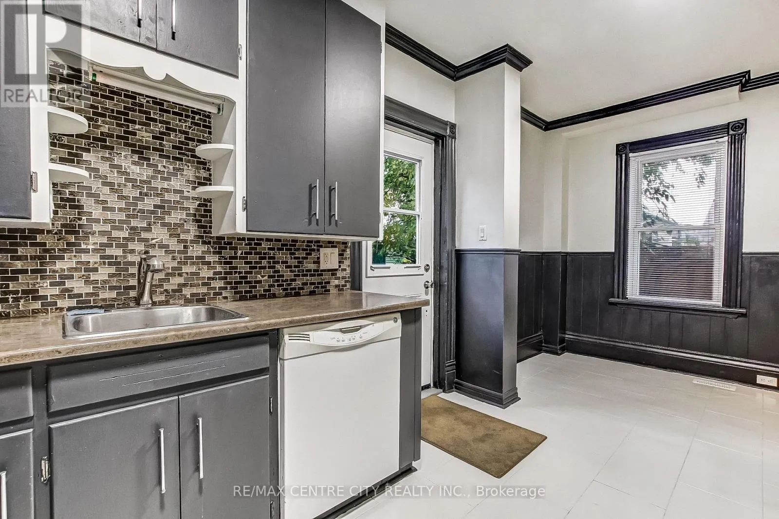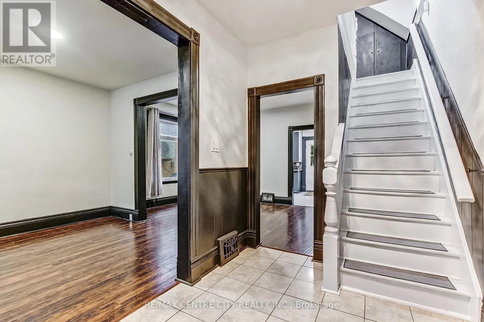 Cross Streets: EGERTON ST. ** Directions: TRAVELLING NORTHBOUND FROM TRAFALGAR STREET ON EGERTON ST, MAKE A LEFT ON DAME ST. Great opportunity to get into the market. Welcome to this well maintained home on a quiet centrally located street. Large covered front porch for those relaxing summer evenings. Main floor features lots of natural light, high ceilings, spacious eat-in kitchen and large living and dining rooms. Laminate floor runs throughout. Spacious kitchen provides access to the private fenced-in rear yard, perfect for small children and entertaining friends and family. Upstairs you will find 3 large bedrooms and a newer bathroom. Recent upgrades include plumbing, roof shingles and gutter guards all done in 2020. Come take a look and make it your own. (id:27476)