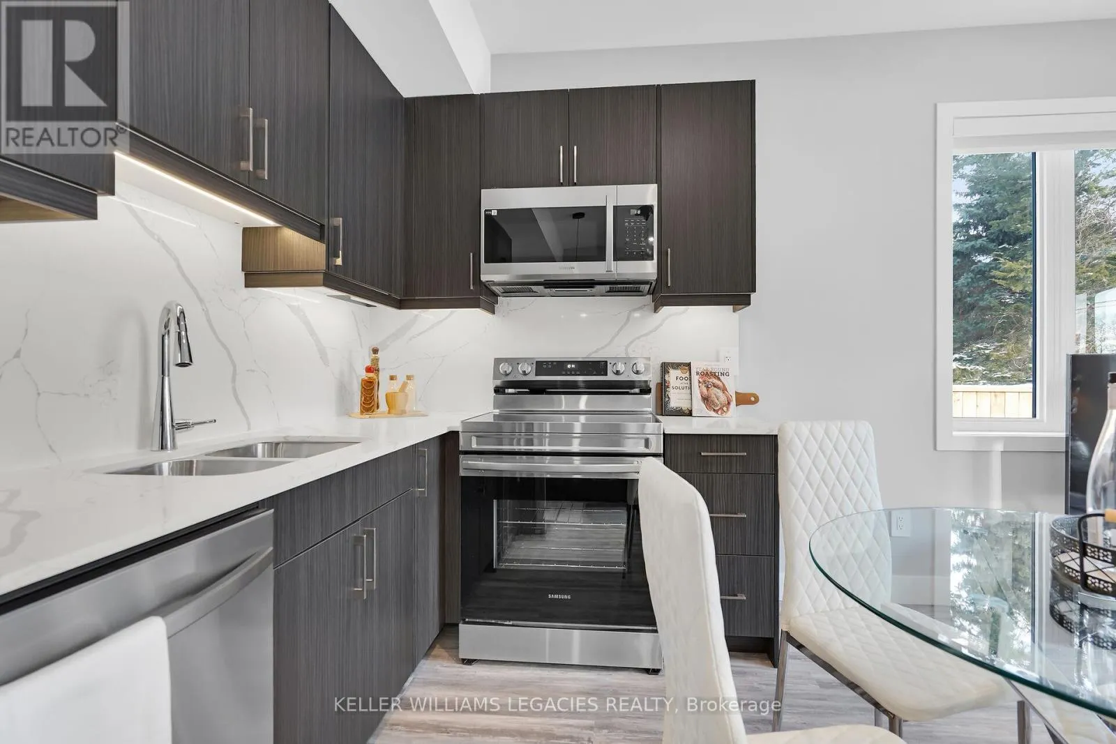 Cross Streets: Hamilton and Highbury. ** Directions: Take highbury ave north and turn right on Hamilton and right of Norlan. To Be Built - CLOSING End of 2026/2027 - Welcome to Meadowlily Grove, Fully upgraded Spacious townhomes Brought to you by Award Winning Builder Royal Premier Homes, London's only park-fronting stacked townhome community, where modern design meets natural serenity. An Excellent Opportunity for First-Time Buyers and Investors! Limited Units Available-This price is available only to those who qualify as first-time home buyers. Disclaimer: This Sage model (ground-level middle unit) has Living, Dining and Ground level room with full wahroom and 2 bedroom at lower level. This model showcases over $40,000 in premium builder upgrades, featuring an open-concept layout with three full bathrooms, ~9 ft ceilings, and a designer kitchen with quartz countertops, soft-closing cabinetry, LED valence lighting, and premium fixtures. Upgraded finishes include hand-smoothened ceilings, custom-stained stairs with black iron spindles, matte black hardware, and premium black brick exterior detailing. Energy-efficient construction, HRV ventilation, and upgraded mechanical systems ensure long-term comfort and value. Enjoy beautifully landscaped surroundings with a fully sodded site, entrance pathway lighting, and community amenity space. One designated parking space is included, along with visitor parking and a convenient LTC bus stop located beside Meadowlily Rd N. Choose from a selection of stunning models including the Willow (3 Bed Corner Ground Level), Aspen (3 Bed Corner Upper Level), and Juniper (3 Bed (includes Interior room) Upper Level) - all offering exceptional layouts, stylish interiors, and unmatched affordability. Experience The Pinnacle of Luxe Living with thoughtfully designed, expertly crafted, and built for life homes.(Renderings, virtual staging, and photos are artists concept only. Actual finishes, layouts, and specifications may differ without notice.) (id:27476)