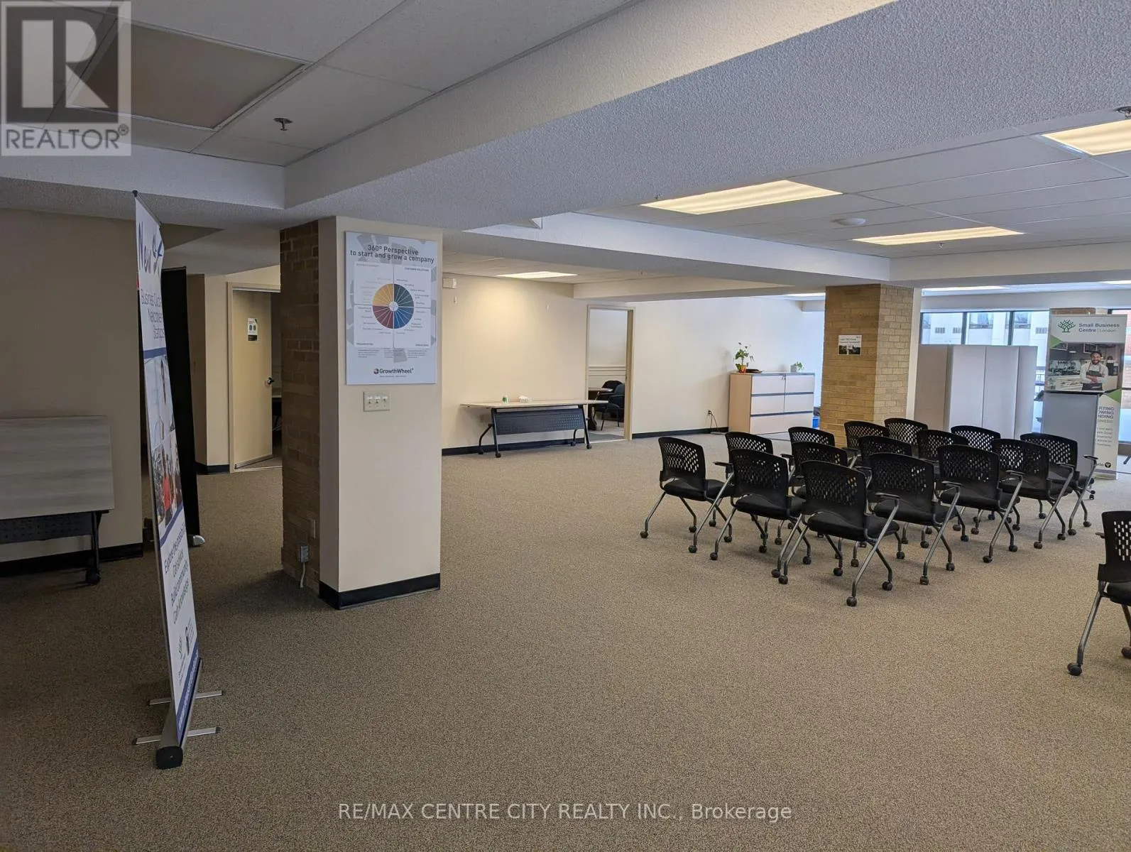 Cross Streets: Colborne Street. ** Directions: Located on the southwest corner of Dundas and Colborne. Located in the "London Towers" on the second floor, professional office suite consisting of two units, 219 and 220 totaling 7,371 square feet. Priced at only $68.00 per square foot. Units in excellent condition. Large open areas with plenty of windows facing north, oversized terrace, 2 private offices and kitchen. Large training area with divider that can be split into two areas. Underground parking garage with 2 allocated exclusive parking spaces to be verified by the Seller. Condo fee includes insurance, management, exterior and grounds maintenance and utilities. Units being sold "Under Power of Sale". Schedule "B" to be attached to all offers. Copy of 2025 operating budget and floor plan available upon request. The units can also be available for lease at $8.00 per square foot on a net basis plus property taxes and condo fee. Contact listing agent for further details. (id:27476)
