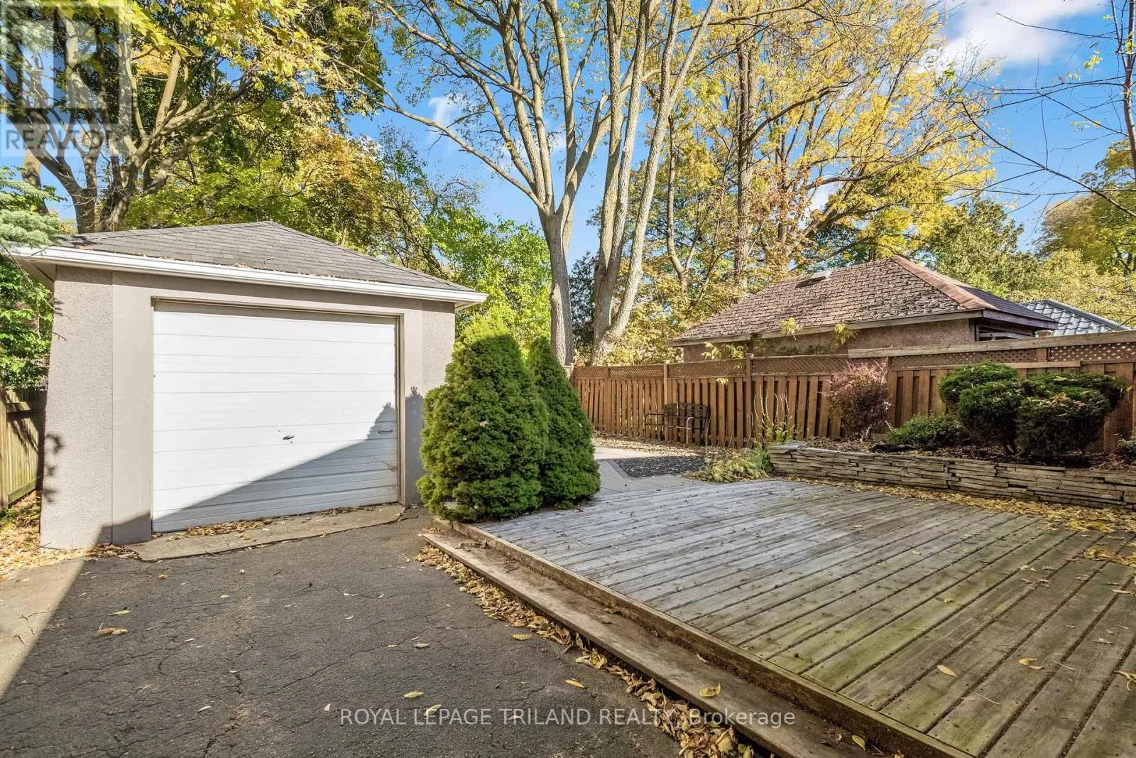 Cross Streets: Colborne. ** Directions: From Adelaide, head west on Cheapside - house is on the north side. Charming, move-In ready Old North bungalow! This beautifully maintained 1930s home is loaded with original character and has all the modern updates you need. The main floor shines with refinished hardwood floors and beautiful crown moulding, featuring a spacious living room with fireplace, huge dining room, and an eat-in kitchen. The expanded primary bedroom offers two closets (including a walk-in), and the second bedroom also boasts a walk-in closet. A refreshed main bath completes the level. The lower level provides a functional living space with a large rec room, third bedroom, 3-piece bath, laundry, and ample storage. Enjoy the private landscaped fenced yard with deck, patio, and single car garage. Recent major updates include roof (2020) and eaves (2021). Close to St. Joseph's Hospital, Western University, dining, schools and shops. (id:27476)