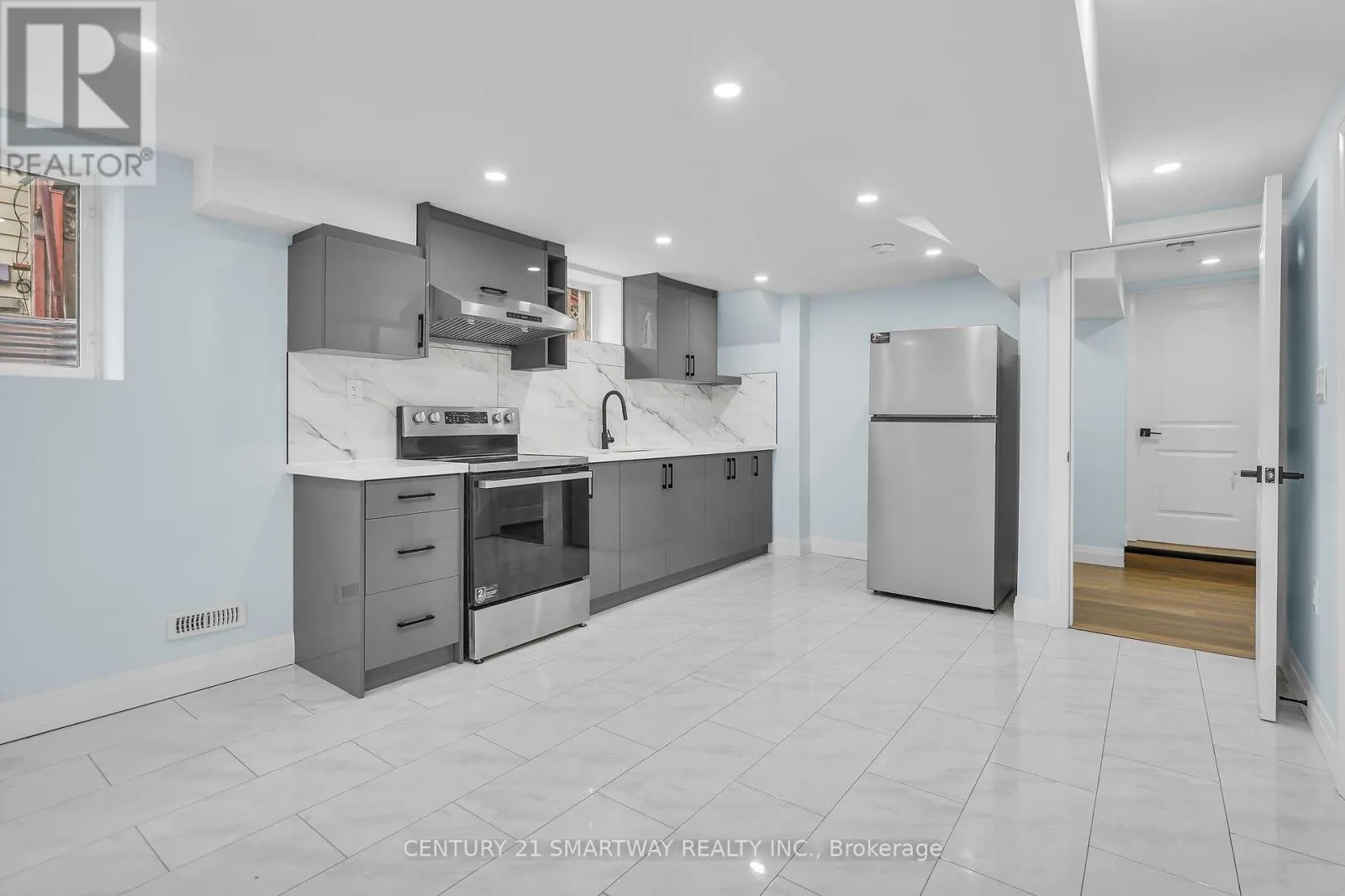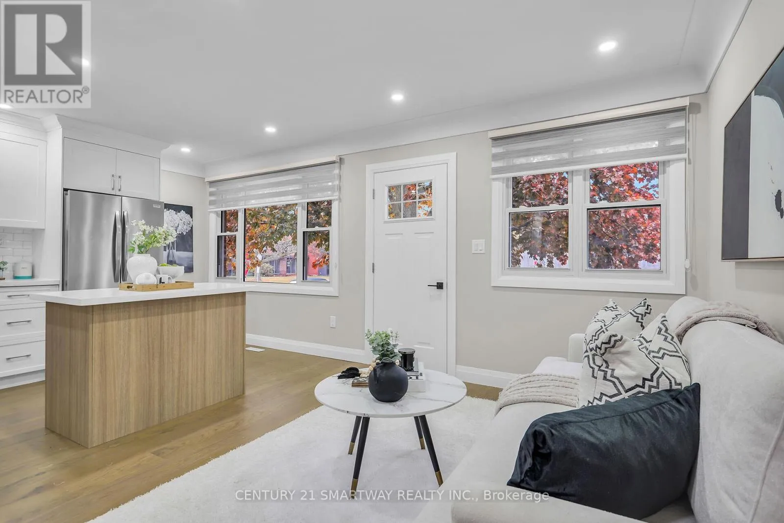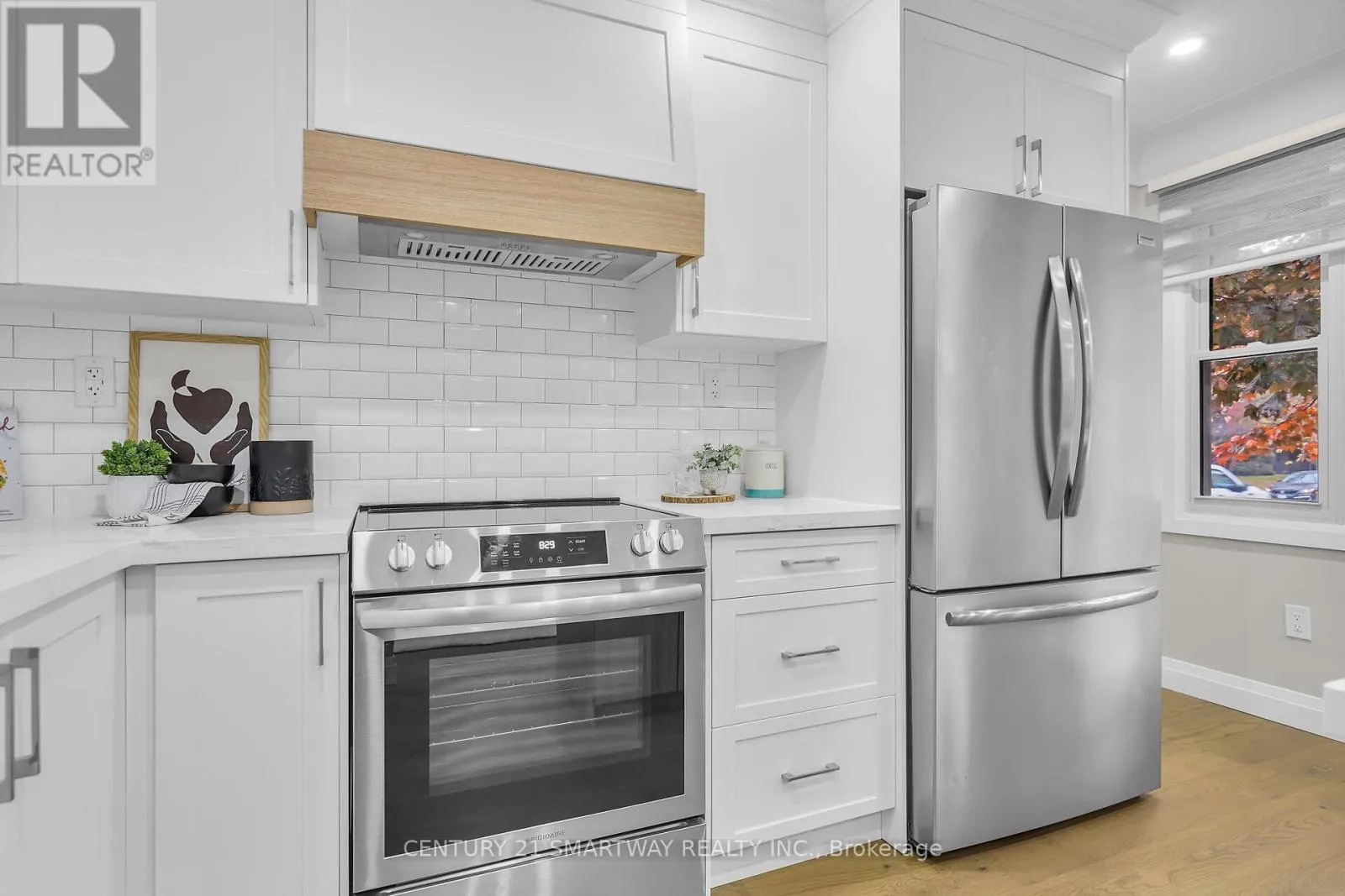 Corner of Boullee/Cheapside Welcome to this fully renovated brick Bungalow from the studs, everything is new in this house (except outer walls, metal roof, ceiling & a/g windows) for your piece of mind ,no expense spared . This house comes with legal apartment with separate entrance which makes it easy to rent it out if you want to. Inside you will find generously sized 2 +1 bedrooms, 2 washrooms, 2 kitchens, 2 laundries ,The heart of the home features a bright open concept living area with new kitchen with quartz countertop , abundant natural light. To list the upgrades there are too many like on the main floor all walls (exterior/interior) insulated with new insulation and new drywalls, all new plumbing, all new wiring, new subfloor and hardwood floor, all new doors, window casing, new lights ,pot lights ( colour can be changed), new Kitchen with quartz counter, centre island, backsplash, all new appliances(slide in stove,36" fridge), crown moulding ,baseboard. new zebra blinds.washroom has 2x2 porcelain tiles raped around the shower and floor. new Appliances. Basement Reno;- steps down through the newly installed downstairs steps to the beautifully finished basement, turn right you will find living room with kitchen and large windows (one Egress) ,Furnace/ hot water tank is relocated to the corner, all new Hvac Ducts system (new furnace/AC) installed , all new plumbing ,wiring, pot lights, drainage, separate laundry set, ceramic tiles floor in living/kitchen, vinyl flooring in bdrm. bathroom includes full standing shower with large tiles rapping around it and beautiful flooring , large bdrm with closet and window. Exterior :- Full house rejuvenation, metal long lasting roof is cleaned/washed, new fence (two sides), new concrete driveway and concrete rapped around the house ,front main door deck is refinished with new steps and painted ,Landscaped with fresh new sod-grass in the backyard and front yard . (id:27476)
