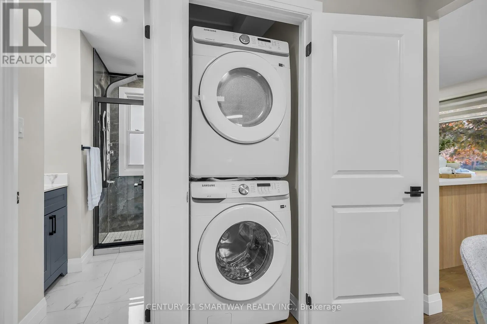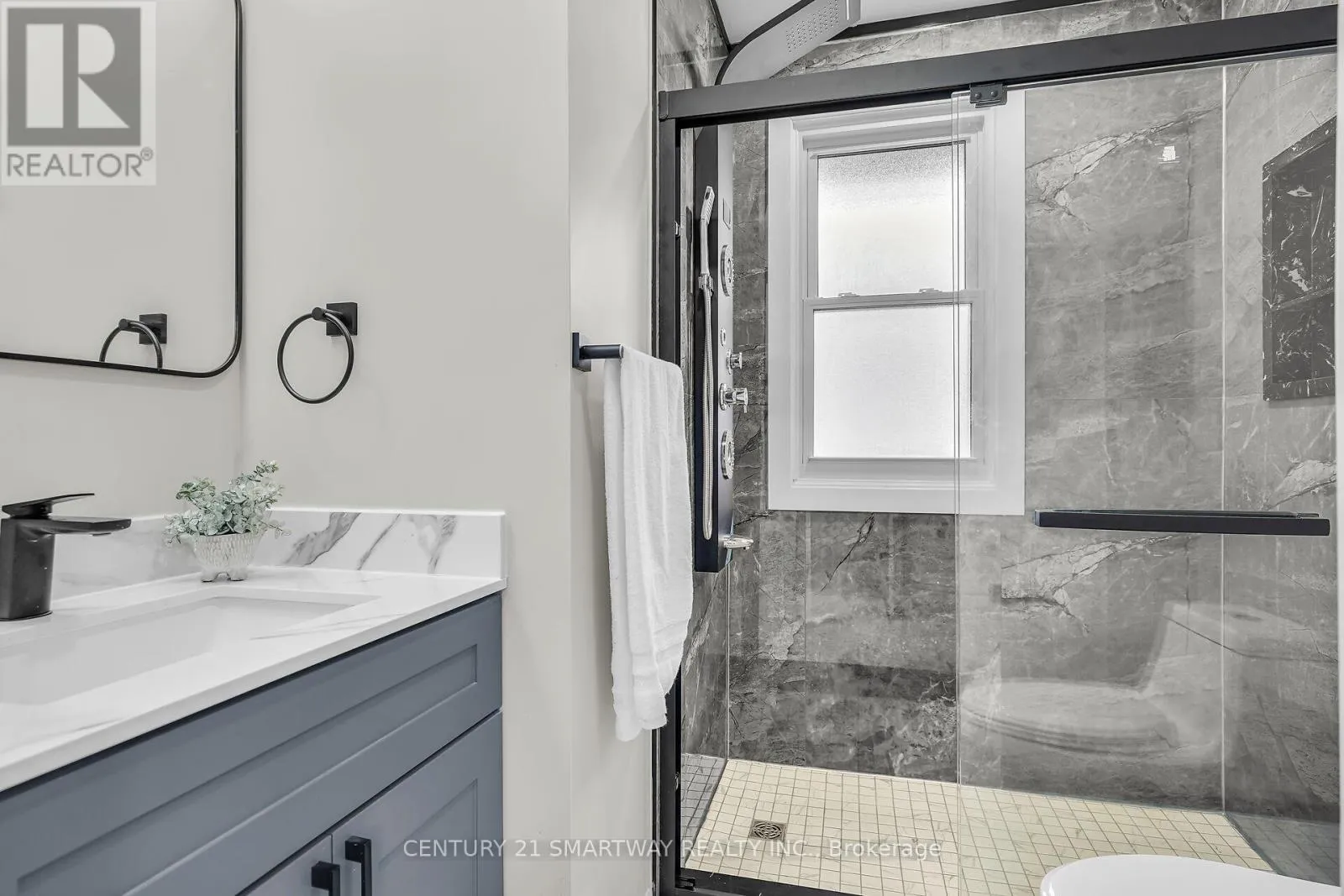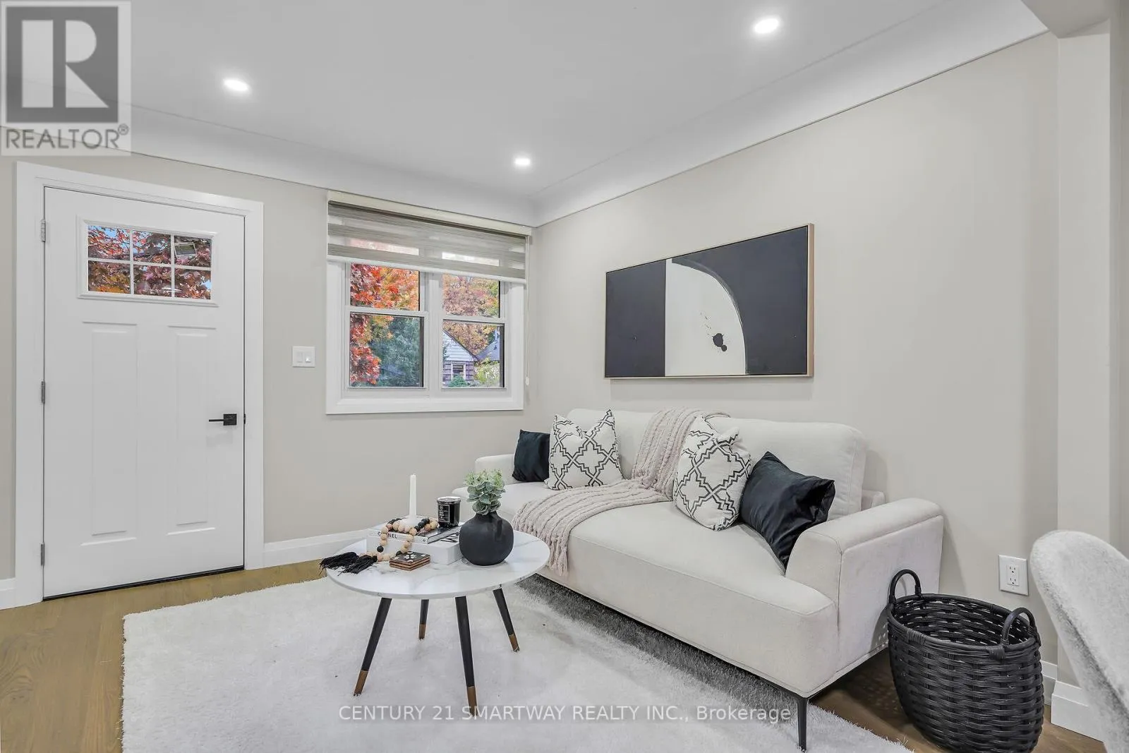 Corner of Boullee/Cheapside Welcome to this fully renovated brick Bungalow from the studs, everything is new in this house (except outer walls, metal roof, ceiling & a/g windows) for your piece of mind ,no expense spared . This house comes with legal apartment with separate entrance which makes it easy to rent it out if you want to. Inside you will find generously sized 2 +1 bedrooms, 2 washrooms, 2 kitchens, 2 laundries ,The heart of the home features a bright open concept living area with new kitchen with quartz countertop , abundant natural light. To list the upgrades there are too many like on the main floor all walls (exterior/interior) insulated with new insulation and new drywalls, all new plumbing, all new wiring, new subfloor and hardwood floor, all new doors, window casing, new lights ,pot lights ( colour can be changed), new Kitchen with quartz counter, centre island, backsplash, all new appliances(slide in stove,36" fridge), crown moulding ,baseboard. new zebra blinds.washroom has 2x2 porcelain tiles raped around the shower and floor. new Appliances. Basement Reno;- steps down through the newly installed downstairs steps to the beautifully finished basement, turn right you will find living room with kitchen and large windows (one Egress) ,Furnace/ hot water tank is relocated to the corner, all new Hvac Ducts system (new furnace/AC) installed , all new plumbing ,wiring, pot lights, drainage, separate laundry set, ceramic tiles floor in living/kitchen, vinyl flooring in bdrm. bathroom includes full standing shower with large tiles rapping around it and beautiful flooring , large bdrm with closet and window. Exterior :- Full house rejuvenation, metal long lasting roof is cleaned/washed, new fence (two sides), new concrete driveway and concrete rapped around the house ,front main door deck is refinished with new steps and painted ,Landscaped with fresh new sod-grass in the backyard and front yard . (id:27476)