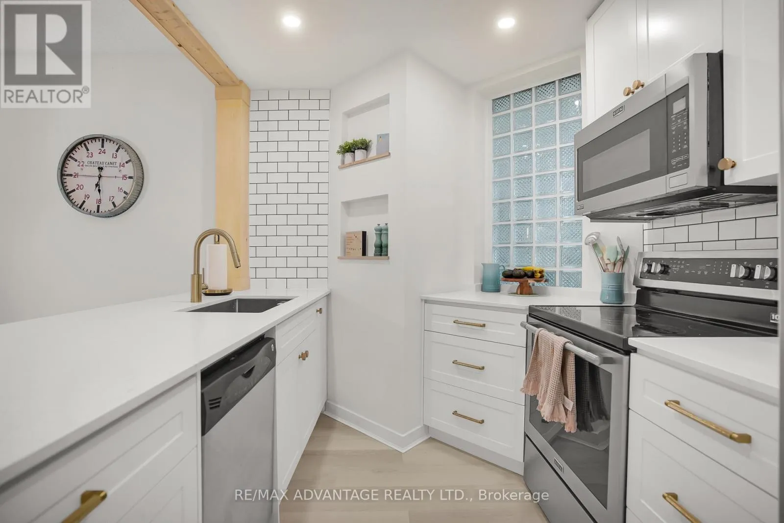 Cross Streets: Wellington and Queens. ** Directions: 460 Wellington Street. Welcome to Unit 408 at 460 Wellington, a rare penthouse offering in one of London's mostdistinctive and stylish heritage buildings. This boutique condo delivers the perfect blend ofhistorical character and modern convenience, appealing to professionals who appreciate design,location, and lifestyle. Enjoy tree-lined street views from this bright and beautifullyrenovated 2-bedroom, 2-bath unit featuring in-suite laundry, an opened modern kitchen, andchic decorative finishes throughout. The spacious layout is ideal and allows you to relaxabove the buzz of the city. The building itself is filled with charm and history, offeringaccess via both private and main elevators, along with top-tier amenities including an indoorheated pool, sauna, gym, newly completed party room, guest suite, and visitor parking. Oneunderground parking space and a generous storage locker are included. Step outside and you aremoments from Victoria Park, Richmond Row, cafés, shops, restaurants, and transit-everythingthe downtown lifestyle has to offer. Whether you're a young professional seeking a vibrant,walkable neighbourhood or looking to downsize without compromise, this penthouse is truly one-of-a-kind. Experience the character of old-world architecture with the ease of modern living. (id:27476)