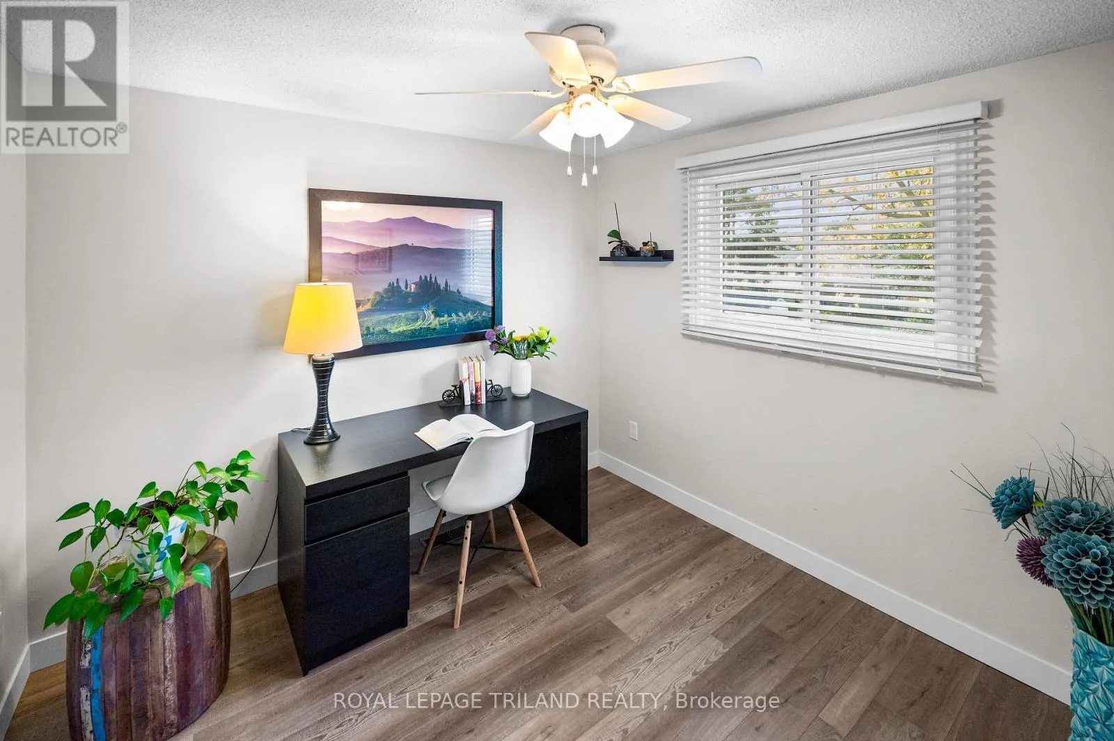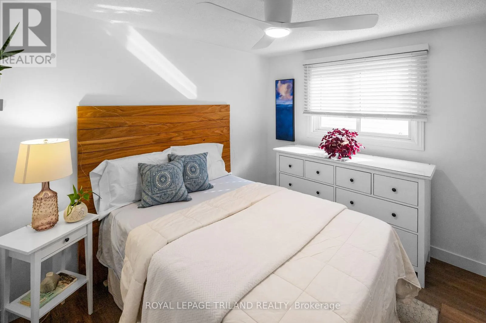 Cross Streets: Garland Crescent & Garland Lane. ** Directions: From Garland Crescent head west on Garland Lane. NO CONDO FEES! Absolutely beautiful, fully move-in-ready 3 bedroom, 2 bathroom semi-detached home with a finished basement located on a quiet, family-friendly street with an exceptionally deep, beautifully landscaped backyard. From the moment you arrive, you'll notice the pride of ownership throughout with stamped concrete, lovely gardens, and parking for up to four cars welcome you home. Step inside to a bright, spacious living room featuring pot lights and a stunning custom wall unit. The space is open concept to a dining area with three large windows that pours in natural light. The entire home is 100% carpet-free for easy maintenance. The kitchen offers plenty of counter and cabinet space, a large pantry, a tile backsplash, and modern appliances (2-3 years old). Use the dishwasher and wash extra large pots in the oversized Blanco sink with a window overlooking your gorgeous backyard, perfect for keeping an eye on kids or pets at play. Upstairs, the primary bedroom impresses with a double closet plus an additional walk-in closet and two large windows. Two additional good-sized bedrooms and a full bath with tub complete the upper level. While the home does have central air, each bedroom also features a new ceiling fan for additional comfort. The backyard is an entertainer's dream. It's deep, fully fenced, and beautifully landscaped with gardens, a large grassy area, stamped concrete patio, wood deck spanning the house, and storage shed. Located in a highly walkable area just minutes from everything you need. It's less than 1 km to Argyle Mall (Walmart, Staples, Winners etc.) plus Canadian Tire, Home Depot, restaurants, churches, and schools all within walking distance. Another big highlight is East Lions Community Centre being just over a kilometer away featuring an aquatic centre, double gymnasium, and outdoor tennis, pickleball, and basketball courts. Act now! This gem won't be on the market for long! (id:27476)
