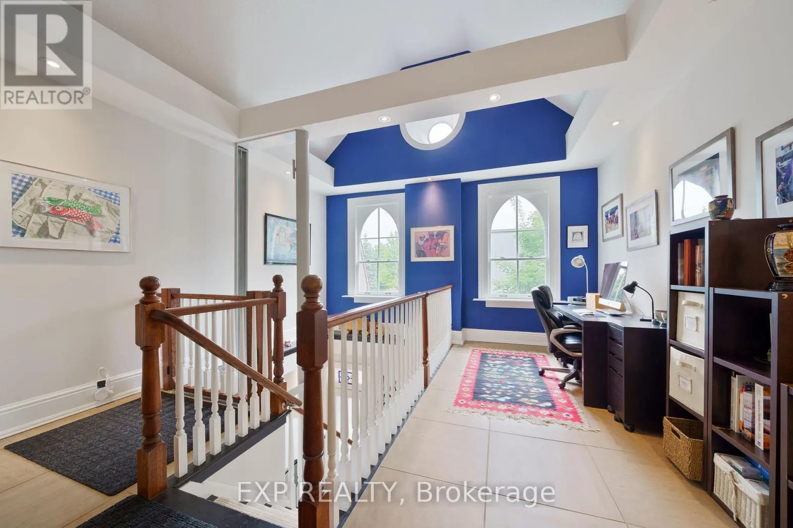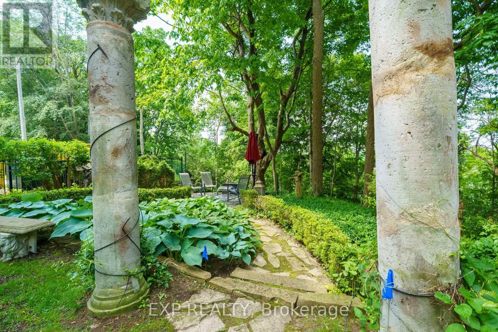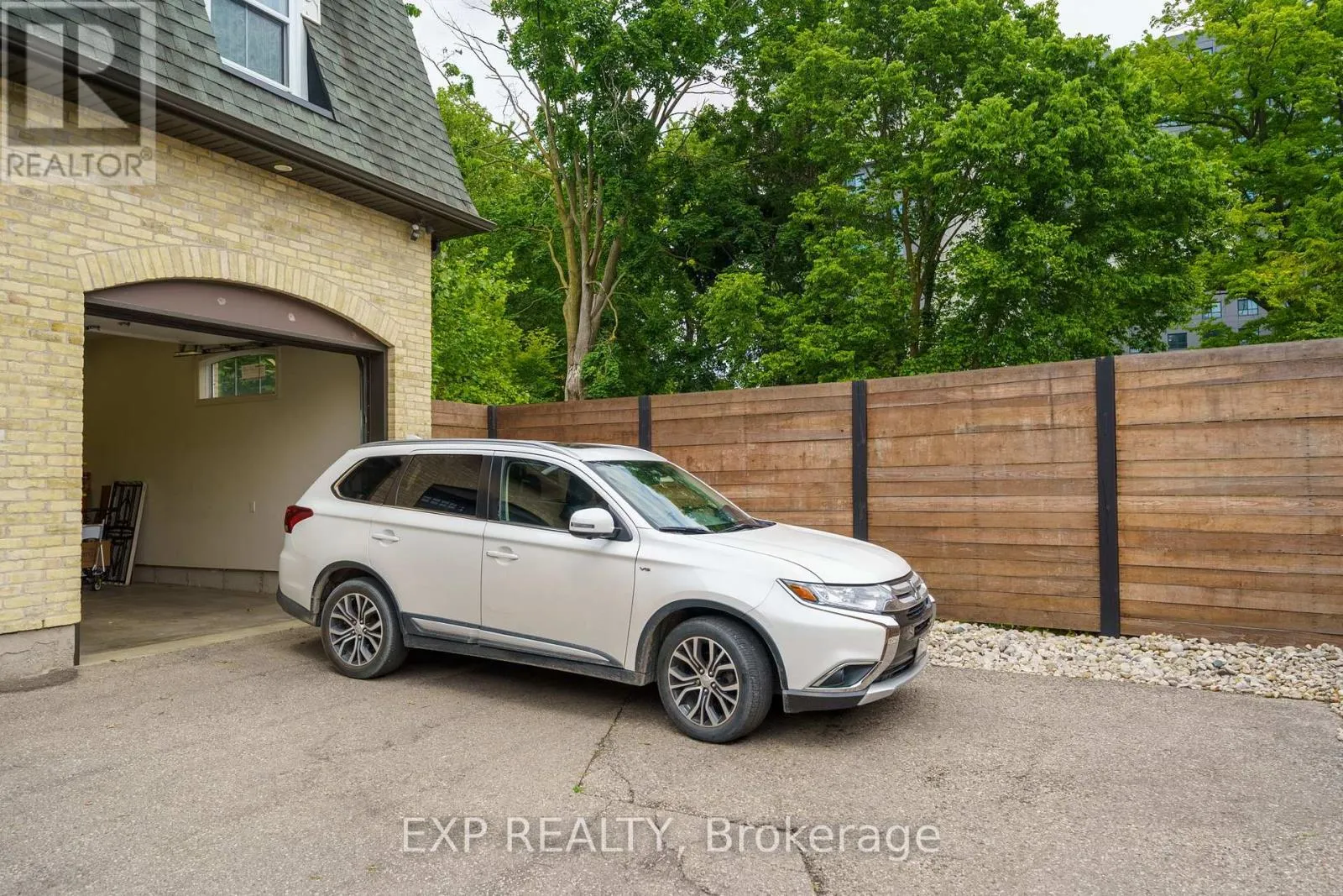 Cross Streets: Talbot & Central. ** Directions: Talbot & Barton. Welcome to Blackfriars Estate! This Private Gated "Raleigh House" Condo is nestled in the Trees overlooking the Thames River, steps away from vibrant Downtown. Designed and Built By DUO Ltd in 2013, this very unique home has all the Comforts of Quality Modern Construction set within the charm of a Historic Estate. Architectural Elegance embraces this 2 Bedroom, 2 Bath Home.The main floor features an elevator for ease of access, radiant in-floor heat, a Chefs kitchen, vaulted ceilings and office space. Large Bedroom and Bathroom with double shower.Notably this home offers two Terraces, East Facing (230sf) for morning coffee fitted with BBQ gas line and a West Facing (324sf) overlooking the pool and river, a perfect place to entertain and watch movies at night.Spacious Living & Dining Room with Stately Fireplace and access to West Balcony. Main Floor laundry. Upper Master Retreat is blended with the 5pc Ensuite Bath w/ Jetted Tub - unwind from the day. Efficient use of space with built-in cabinetry and a walk-in closet. All of this set amongst serene landscaped grounds, steeped in history and natural beauty. Commons Elements include the Pool, Outdoor Kitchen, a variety of private seating areas and a Tree House overlooking the river for nature enthusiasts. Exclusive oversize Garage + 1 Exterior parking spot & assigned storage locker are included. Condo Fee includes Heat & Water. New Ductless A/C units. Whole Home is wired in for a sound system. (id:27476)