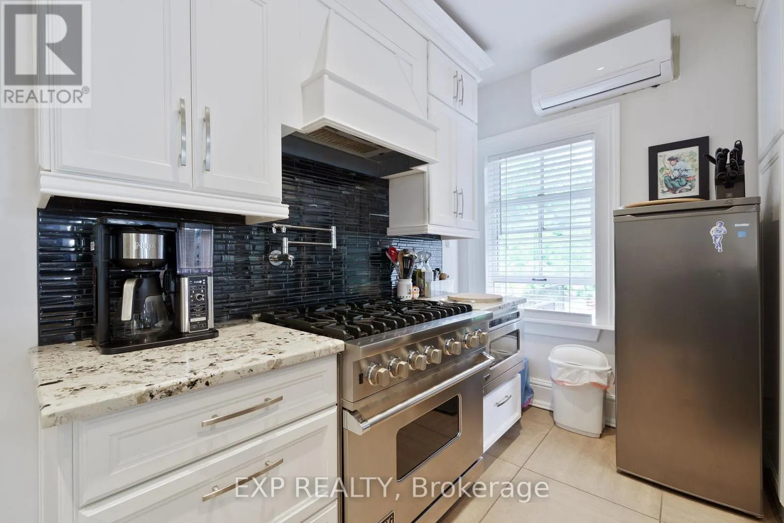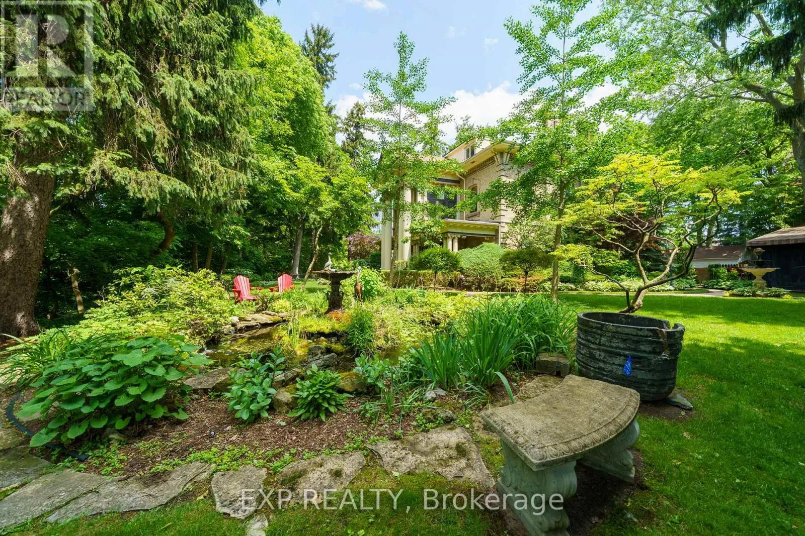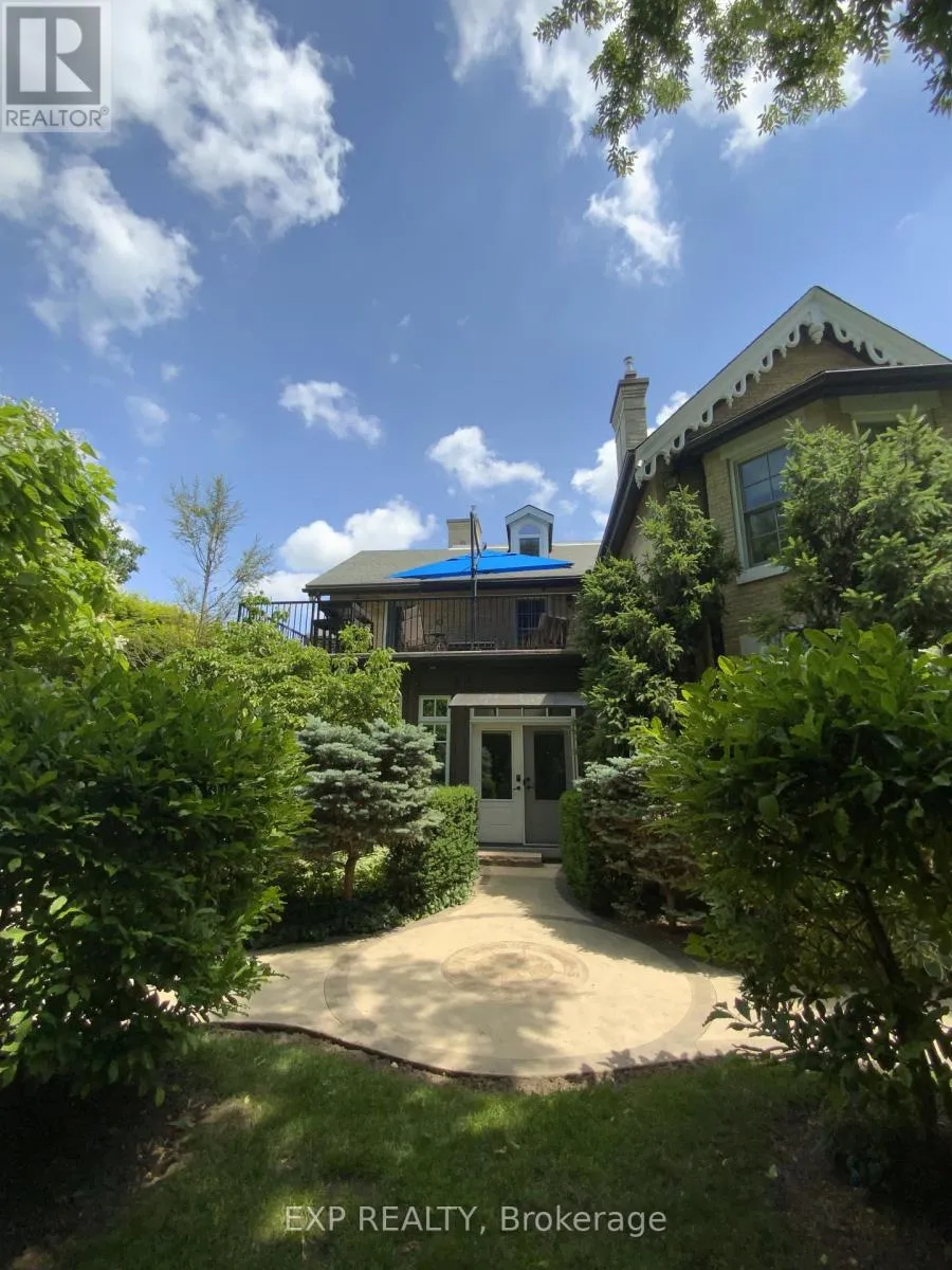Cross Streets: Talbot & Central. ** Directions: Talbot & Barton. Welcome to Blackfriars Estate! This Private Gated "Raleigh House" Condo is nestled in the Trees overlooking the Thames River, steps away from vibrant Downtown. Designed and Built By DUO Ltd in 2013, this very unique home has all the Comforts of Quality Modern Construction set within the charm of a Historic Estate. Architectural Elegance embraces this 2 Bedroom, 2 Bath Home.The main floor features an elevator for ease of access, radiant in-floor heat, a Chefs kitchen, vaulted ceilings and office space. Large Bedroom and Bathroom with double shower.Notably this home offers two Terraces, East Facing (230sf) for morning coffee fitted with BBQ gas line and a West Facing (324sf) overlooking the pool and river, a perfect place to entertain and watch movies at night.Spacious Living & Dining Room with Stately Fireplace and access to West Balcony. Main Floor laundry. Upper Master Retreat is blended with the 5pc Ensuite Bath w/ Jetted Tub - unwind from the day. Efficient use of space with built-in cabinetry and a walk-in closet. All of this set amongst serene landscaped grounds, steeped in history and natural beauty. Commons Elements include the Pool, Outdoor Kitchen, a variety of private seating areas and a Tree House overlooking the river for nature enthusiasts. Exclusive oversize Garage + 1 Exterior parking spot & assigned storage locker are included. Condo Fee includes Heat & Water. New Ductless A/C units. Whole Home is wired in for a sound system. (id:27476)