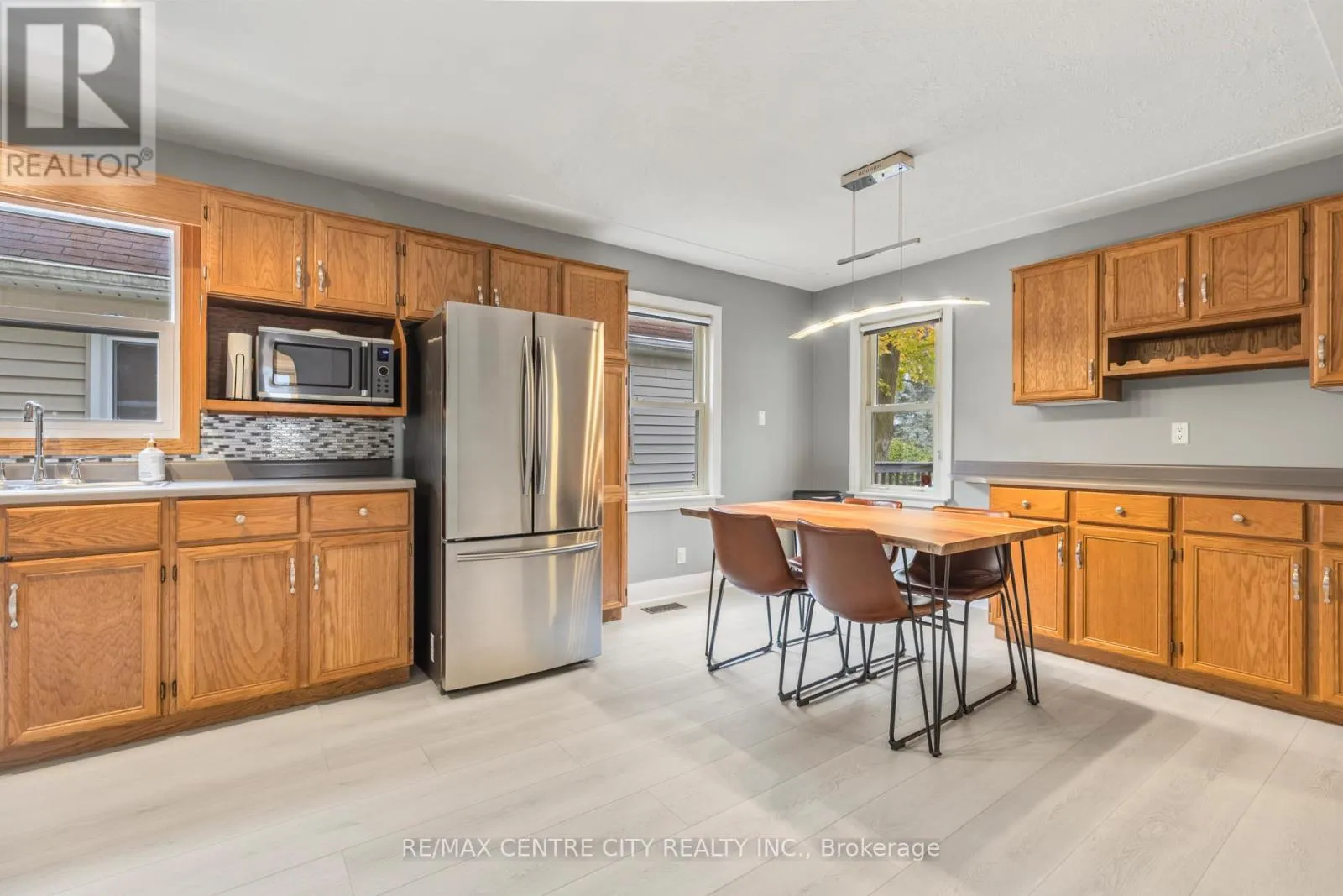 Cross Streets: Dakin and Price. ** Directions: Travel East on Dakin St and on the right. Welcome to this beautifully maintained 4-bedroom, 1-bathroom home, perfectly located in a quiet and family-friendly neighbourhood. Whether you're an investor or a first-time home buyer, this property offers comfort, convenience, and great value. Step inside to find a spacious kitchen with a generous eating area, ideal for family meals or entertaining guests. The home has been well cared for and features low-maintenance living, including a durable metal roof and a recently replaced AC unit-giving you peace of mind for years to come. Enjoy outdoor living at its best! The large deck is perfect for BBQing and summer gatherings, while the outdoor fireplace creates a cozy setting for entertaining friends and family on cool evenings. Plus, with no rear neighbours, you'll love the privacy and tranquility of your backyard retreat. Don't miss out on this rare opportunity-schedule your showing today and see why this home is the perfect blend of comfort, privacy, and easy living! (id:27476)