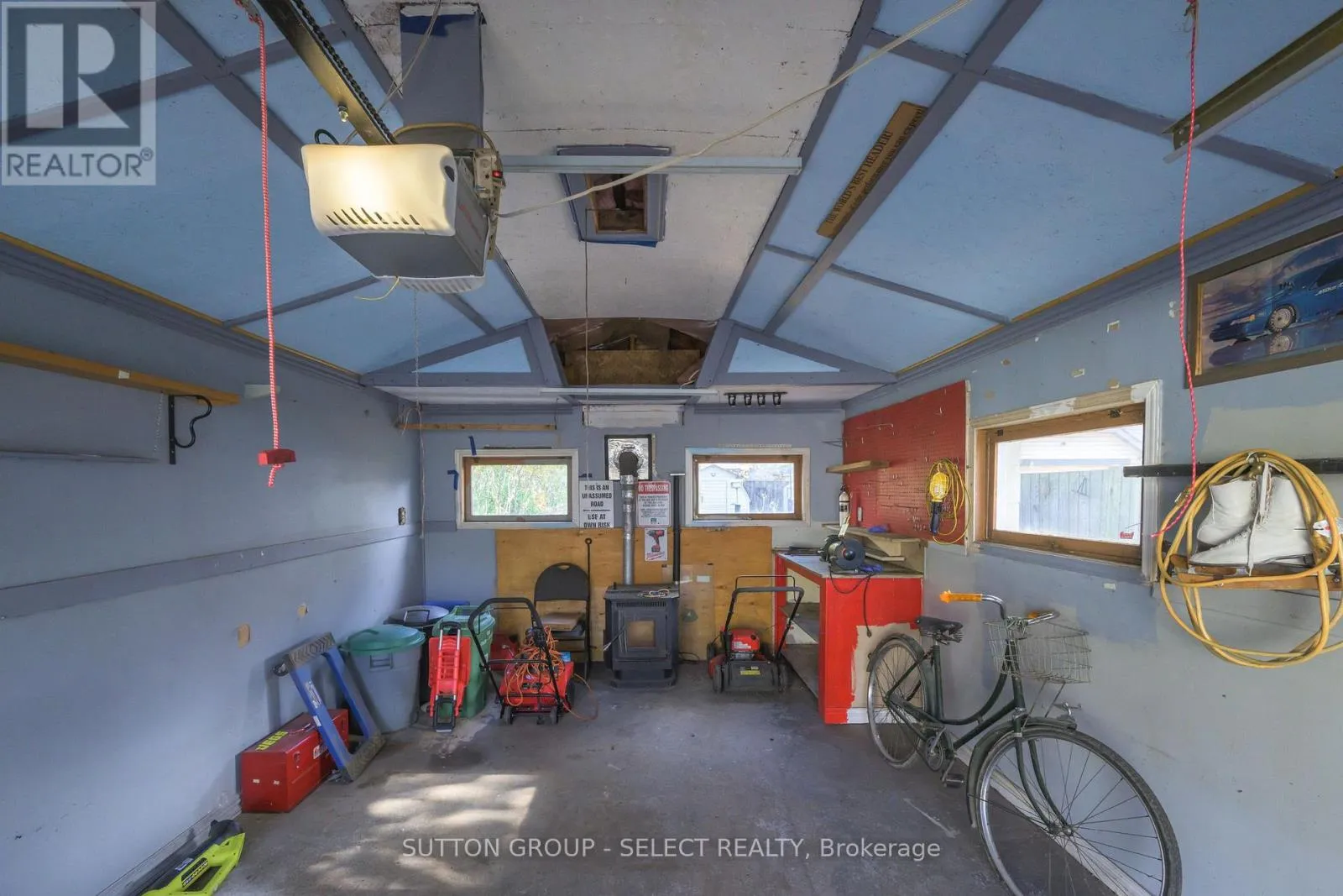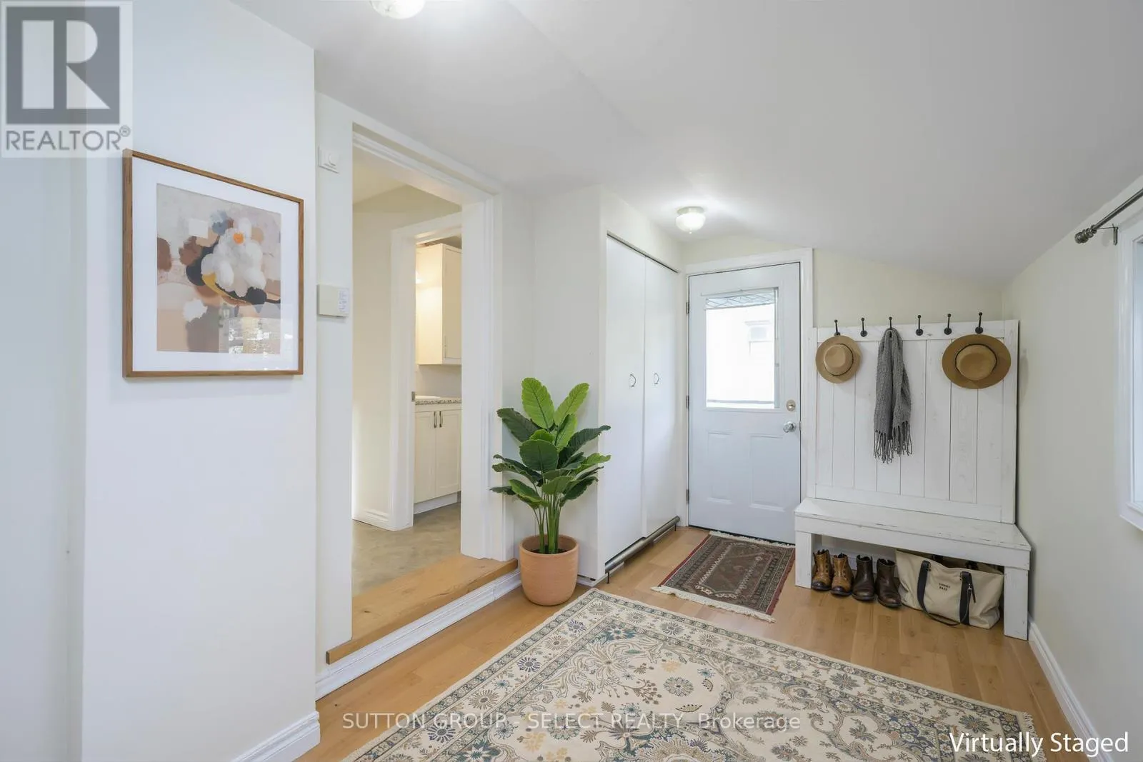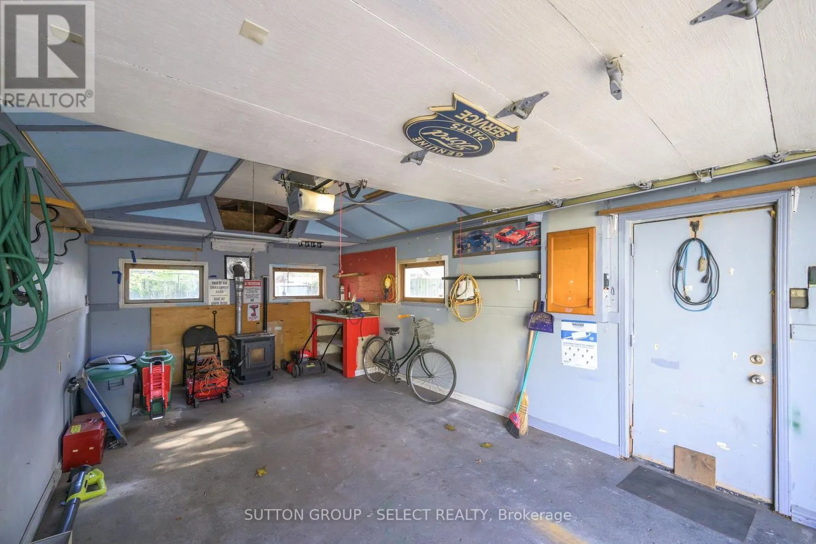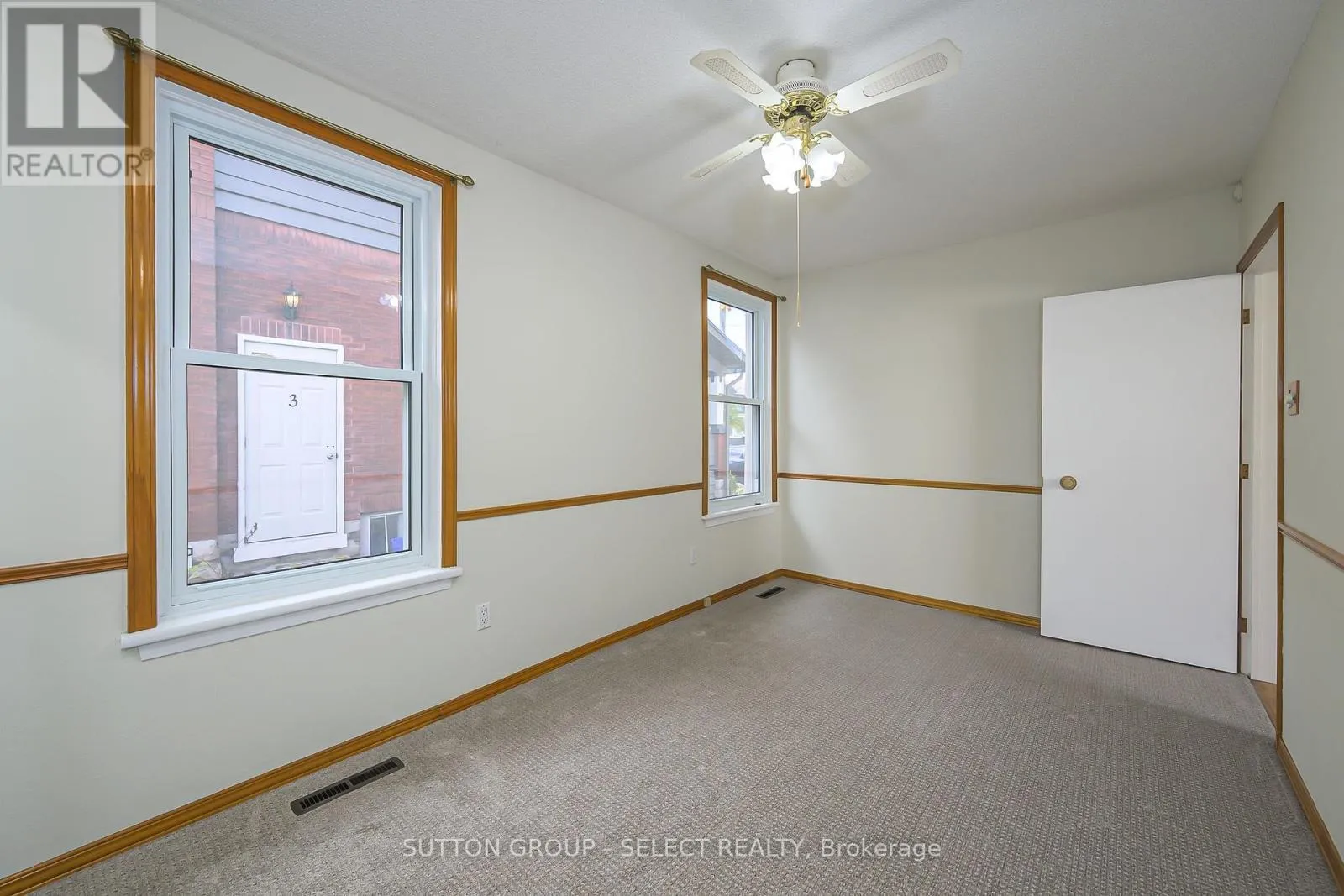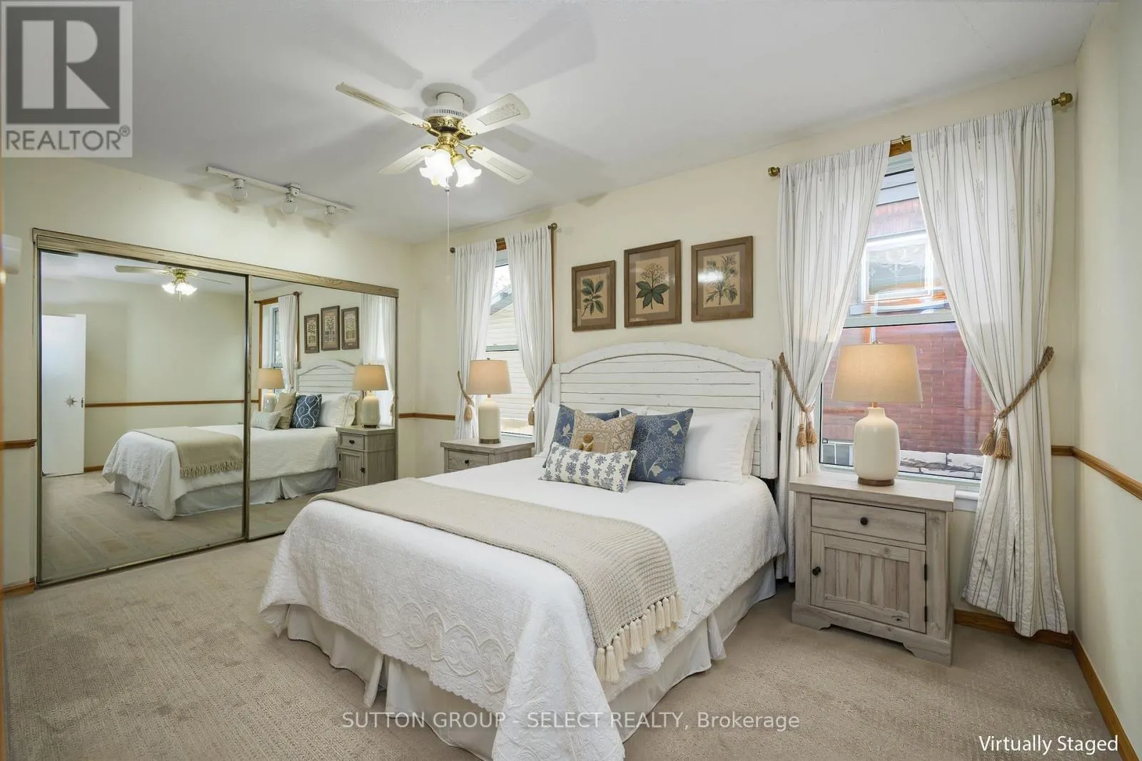 Cross Streets: Dundas Street East. ** Directions: Dorinda Street north from Dundas Street East. Move in ready bungalow in Old East! They don't get much better than this! This 2 bedroom, 1 bathroom bungalow is a sweet as they come. Freshly painted thru out, just move in & relax because everything is done! The cosy living room features a gas fireplace & large window w/ original stain glass transom overlooking the huge covered front porch. Well maintained parquet flooring in living room & the large dining room lend to the warmth & pride of ownership this home exudes. The dining room also features a large window allowing for plenty of light. The large primary bedroom has brand new carpeting and features a wall to wall closet & 2 large windows. The kitchen has been updated with warm white cabinetry & granite countertops, The smaller footprint has been maximized with clever pull outs & an efficient work triangle. The vented over the range microwave is new (never used), the dishwasher is newer. The corner stainless sink is provided with plenty of light from the nearby window. The second bedroom just off the kitchen features a generous closet and laminate flooring. The 4pc bath has been updated with a granite topped vanity, newer toilet & a bath fitter style bathub/shower with convenient grab bars. The mudroom features two large closets and overlooks the deep backyard. Laundry could be moved to mudroom from lower level.The exterior of the home is vinyl siding, Roof was replaced in 2021. The long concrete driveway leads to a 1-1/2 garage that is insulated & oversized (14' x 24-1/2') There are also two garden sheds on the property and room for a garden. The yard is fully fenced & features a recently painted wood deck and natural gas bbq. Laundry is in the lower level in the unfinished partial basement. The basement has been spray foamed for extra insulating value. The furnace was replaced in 2016, AC in 2015. Steps from the new Kellogg's entertainment complex, bus rapid transit, this low maintenance home is perfect for a young urban professional. (id:27476)
