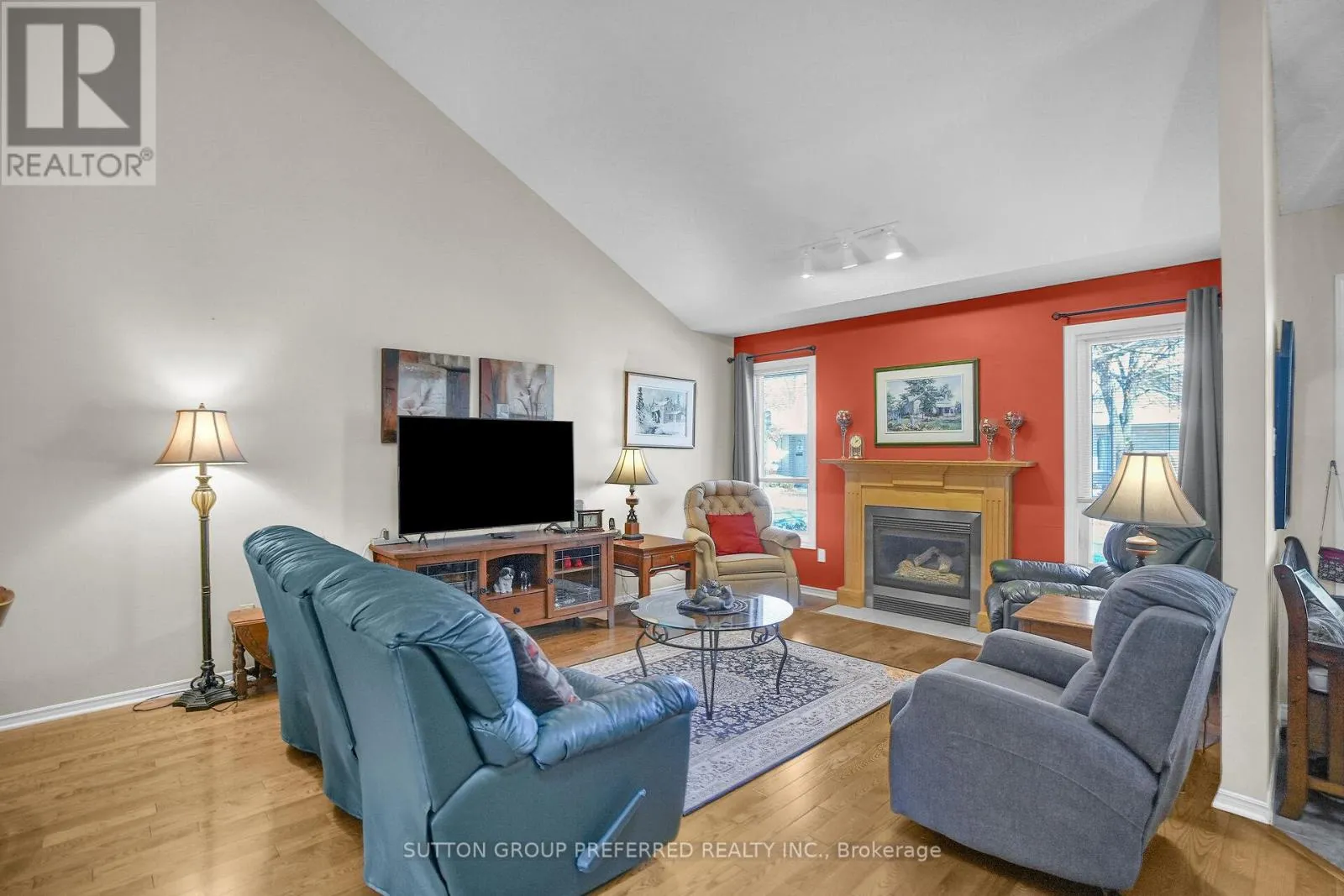Highbury Pride of ownership is evident in this spacious condo with everything you need on the main floor. The great room/dining area has a vaulted ceiling and a skylight to add to the natural light, plus a gas fireplace for those cold winter nights.The kitchen has been updated with beautiful wood cupboards and the eat in area has a patio door leading to a wood deck. There is a laundry closet on the main floor. The master bedroom is huge, with walk-in closet, wall closet, ensuite with soaker tub and walk in shower. The complex had the roof replaced and new decks installed in 2020 plus the skylight was replaced (2020). Hook up for laundry also in basement. Most windows have been updated. This is a well run condo corp. Close to shopping, buses, schools and other amenities. (id:27476)