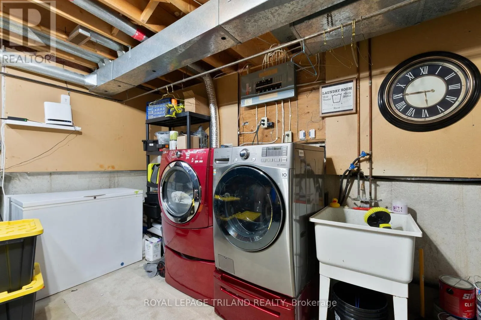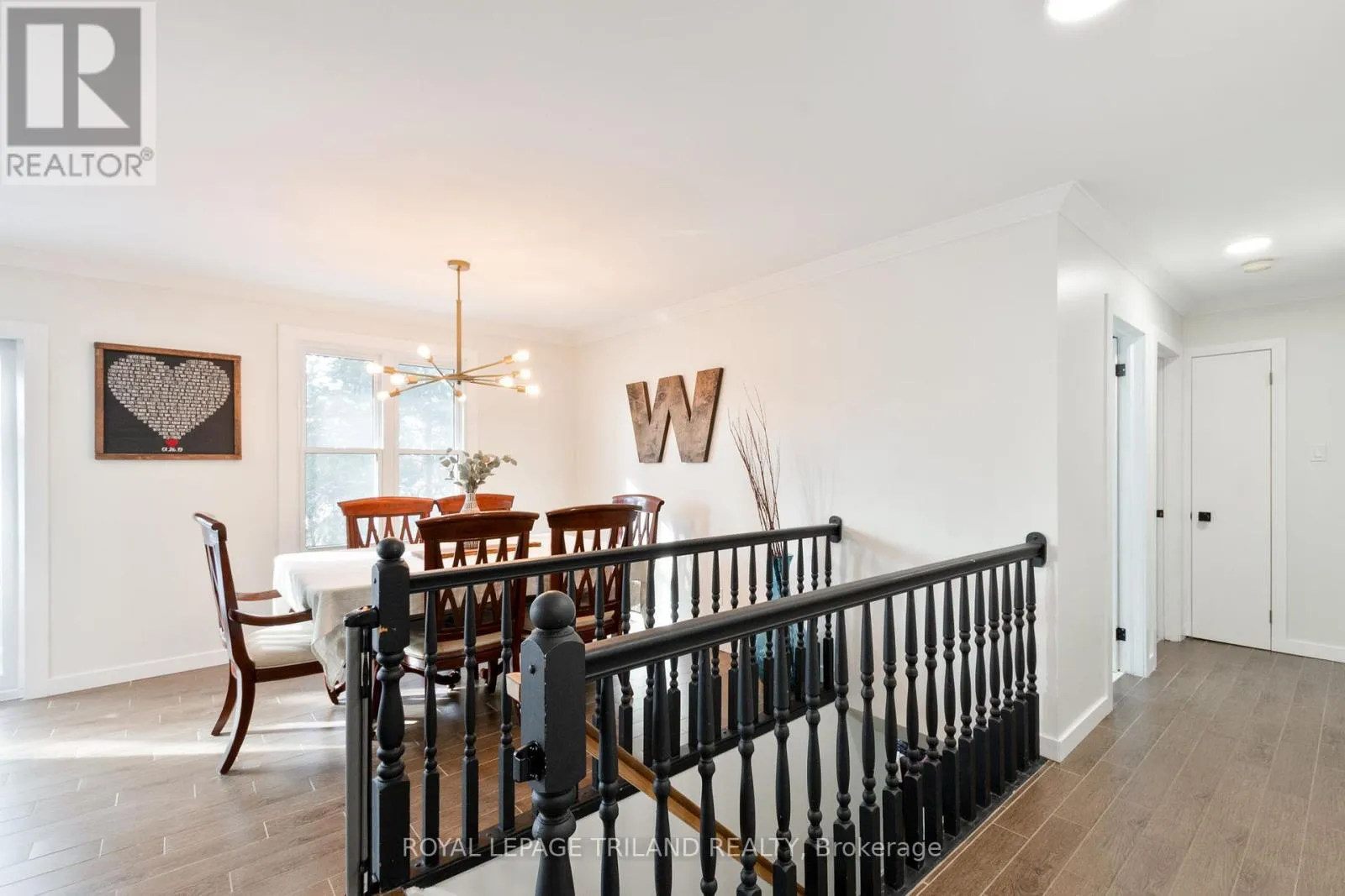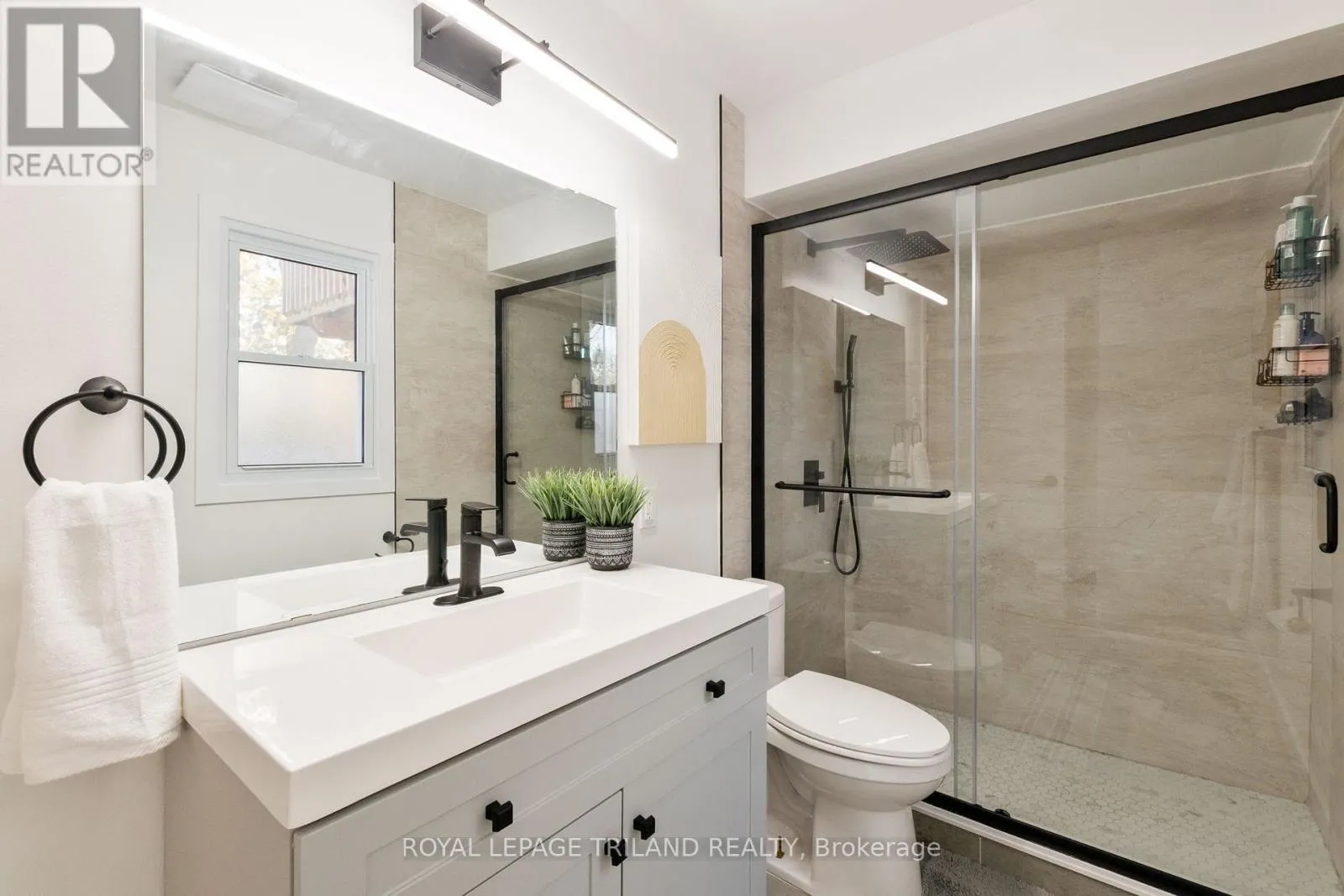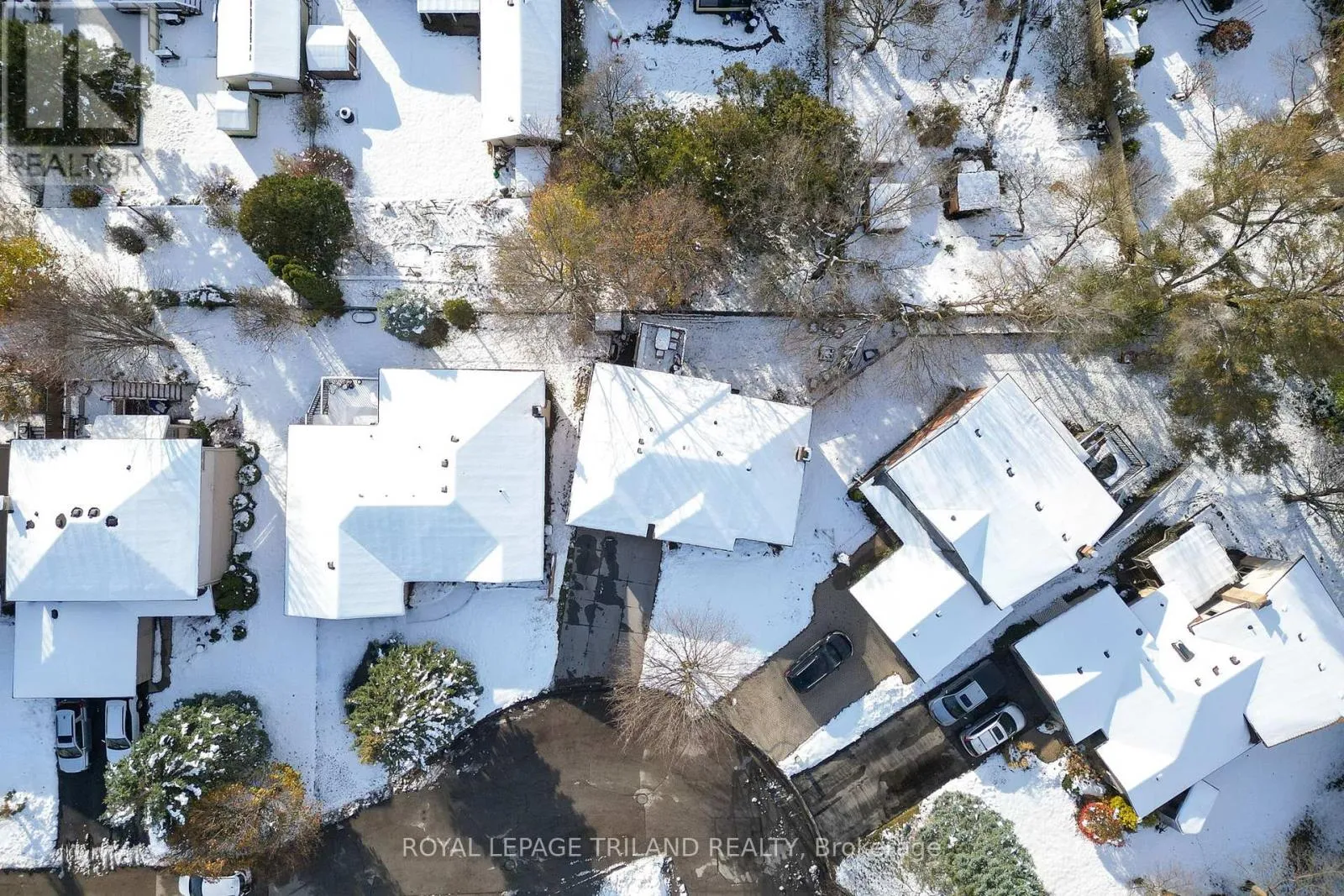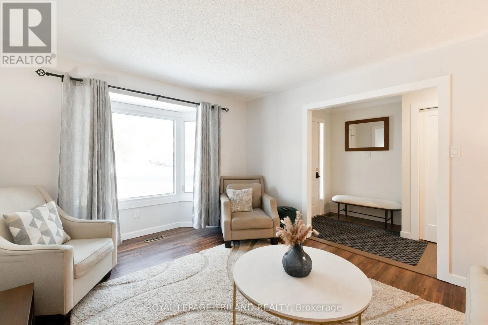 Cross Streets: BENEDICT CRT AND VICTORIA ST. ** Directions: Benedict Court & Victoria Street. Welcome to 42 Benedict Court, a beautifully updated all-brick 2+2 bedroom bungalow situated on a spacious pie-shaped lot at the end of a quiet, family-friendly court in Northeast London. With its versatile layout, walk-out lower level, and modern updates, this home is ideal for families, downsizers, or those seeking excellent in-law suite potential.An updated concrete driveway provides parking for up to four vehicles, paired with an insulated single-car garage with inside entry. Inside, the bright formal living room is filled with natural light from the east-facing updated bay window and finished in luxury vinyl plank flooring. The open-concept main level continues with wood-look tile flooring flowing into the dining area and updated kitchen, featuring white cabinetry, subway tile backsplash, Silestone quartz counters, a moveable island, and access to the elevated deck through an updated sliding door.The main floor offers two generous bedrooms and a fully renovated 5-piece bathroom with dual sinks, a quartz countertop, tiled tub surround, and a warm wood-accent ceiling detail. The fully finished walk-out lower level provides exceptional natural light with oversized above-grade windows. The welcoming family room features laminate flooring and a charming brick wood-burning fireplace. Two additional spacious bedrooms and an updated 3-piece bath make this level perfect for extended family or guests. With its separate entrance potential, this space offers outstanding in-law suite possibilities. A large laundry and storage area complete the level. Additional updates include new gutters around the entire home. Located minutes from downtown London, Western University, Fanshawe College, parks, schools, and major amenities, this home combines quiet court living with exceptional convenience. 42 Benedict Court is move-in ready and full of potential. Don't miss it! (id:27476)