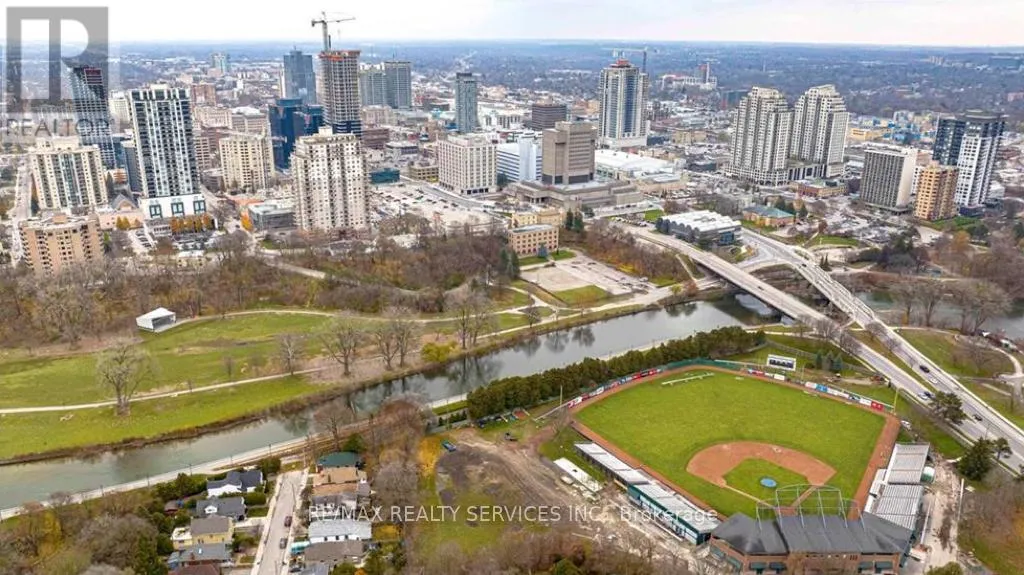 Talbot & Dufferin Welcome to Azure! Spacious & sun-filled 1165 square foot 2 bed 2 bath suite in one of Londons most desirable luxury condo buildings. Ideal downtown location just steps from Budweiser Gardens, renowned entertainment spots & top-notch dining options. This suite features an open concept living space, floor to ceiling windows, quality plank flooring, ensuite laundry & spacious balcony. Stylish kitchen offers stainless steel appliances, built-in microwave, quartz countertops & breakfast bar. Spacious living area with fireplace, sliding doors to the balcony, pot lights & crown moulding. Primary bedroom offers large walk-in closet and 3pc ensuite. Building amenities include exercise room, party room, movie theatre, golf simulator & rooftop terrace. Close proximity to great schools, shopping, public transit, parks & trails. Heat, Water & Parking included. Short term possible. (id:27476)
