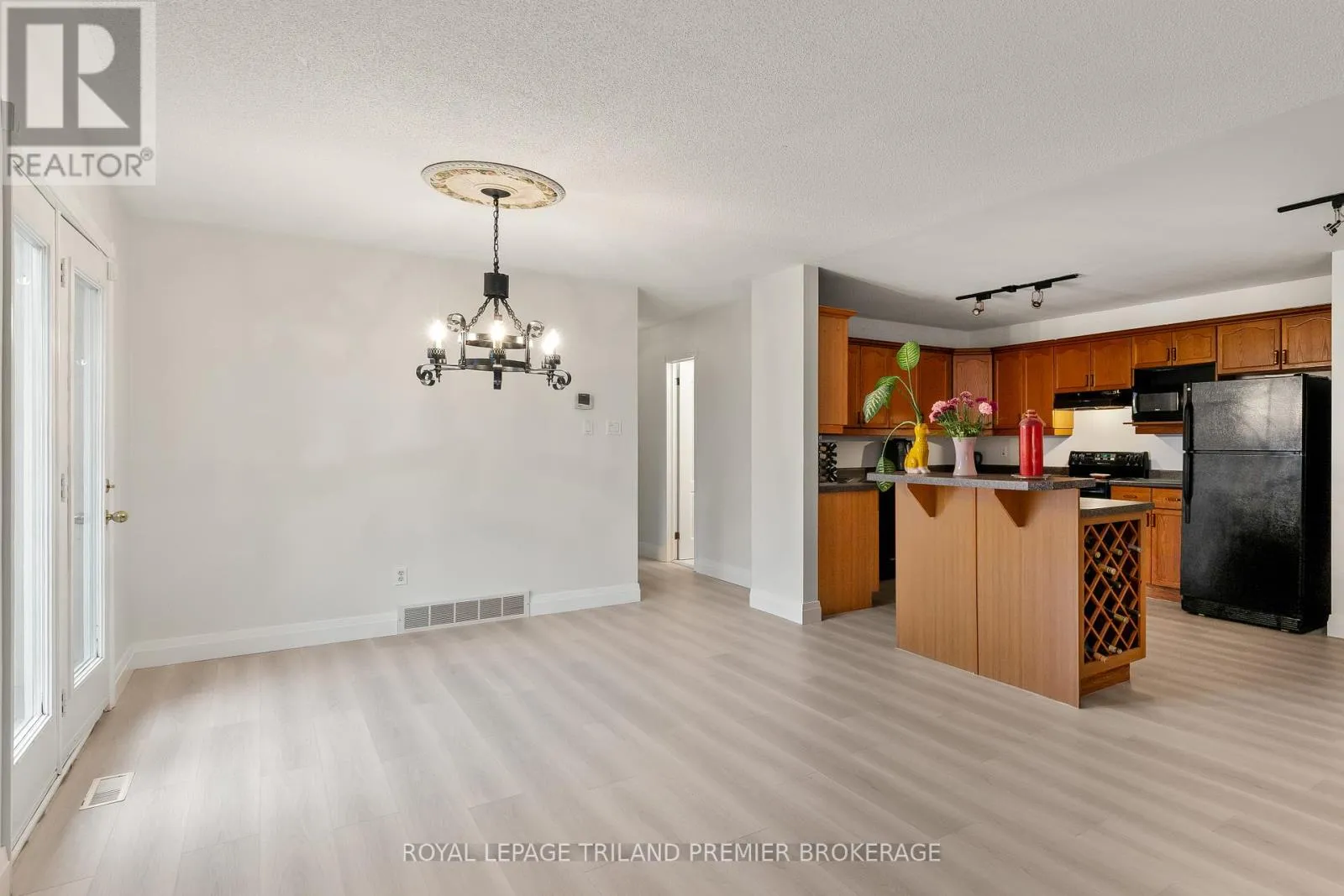 BROOKHAVEN NEAR COBBLESTONE STREET Situated on a quiet cul-de-sac in desirable Northeast London, this beautifully updated 5-bedroom, 2-bathroom raised bungalow has been lovingly maintained and thoughtfully upgraded throughout. The bright open-concept main level features a spacious kitchen with island and breakfast bar, great room overlooking the large front window and foyer, and dining area with direct access to the backyard-perfect for entertaining or family living. Three generous bedrooms and a 4-piece bathroom complete the main floor. The fully finished lower level offers even more living space with a cozy gas fireplace, two additional bedrooms, a 3-piece bathroom, and a convenient laundry room. This carpet-free home features new luxury vinyl plank flooring throughout for easy maintenance and modern appeal. Enjoy the outdoors in your private, fully fenced backyard complete with a newer deck, colourful gardens, pond, and a handy storage shed-an ideal retreat for morning coffee or evening relaxation. A single-car attached garage adds everyday convenience to this wonderful family home.Updates include: Flooring (2025), deck (2025), hot water heater (2025), furnace (2025), Washer and Dryer (August 2025), Fireplace (2025), A/C approx. 8 yrs (id:27476)