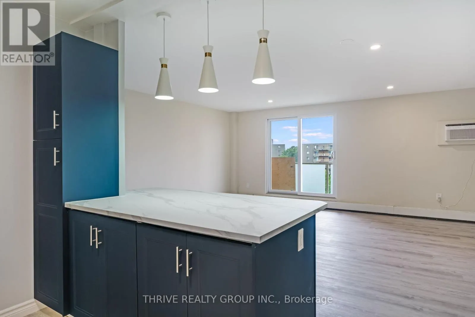 Cross Streets: Mornington Ave & Oxford St. ** Directions: From Highbury Ave, take Oxford Street and turn left on Mornington Ave. At the curve, complex is on the left. Freshly renovated two-bedroom condo on the sixth floor. This bright, modern space offers an open-concept kitchen, living, and dining area that's great for entertaining or cooking while keeping an eye on the kids. The kitchen has been completely updated with new cabinets, countertops, tiled backsplash, sink, faucet, stove, and dishwasher. A built-in bar with pantry adds both function and style.The bathroom has been refreshed with tiled walls and floors, a new vanity, sink, faucet, and mirror. You'll also appreciate the all-new LED lighting with living-room pot lights, updated interior doors and hardware, and a newer wall A/C unit.This move-in-ready condo is a fantastic chance to get into the market and enjoy a clean, stylish, low-maintenance place to call home. (id:27476)