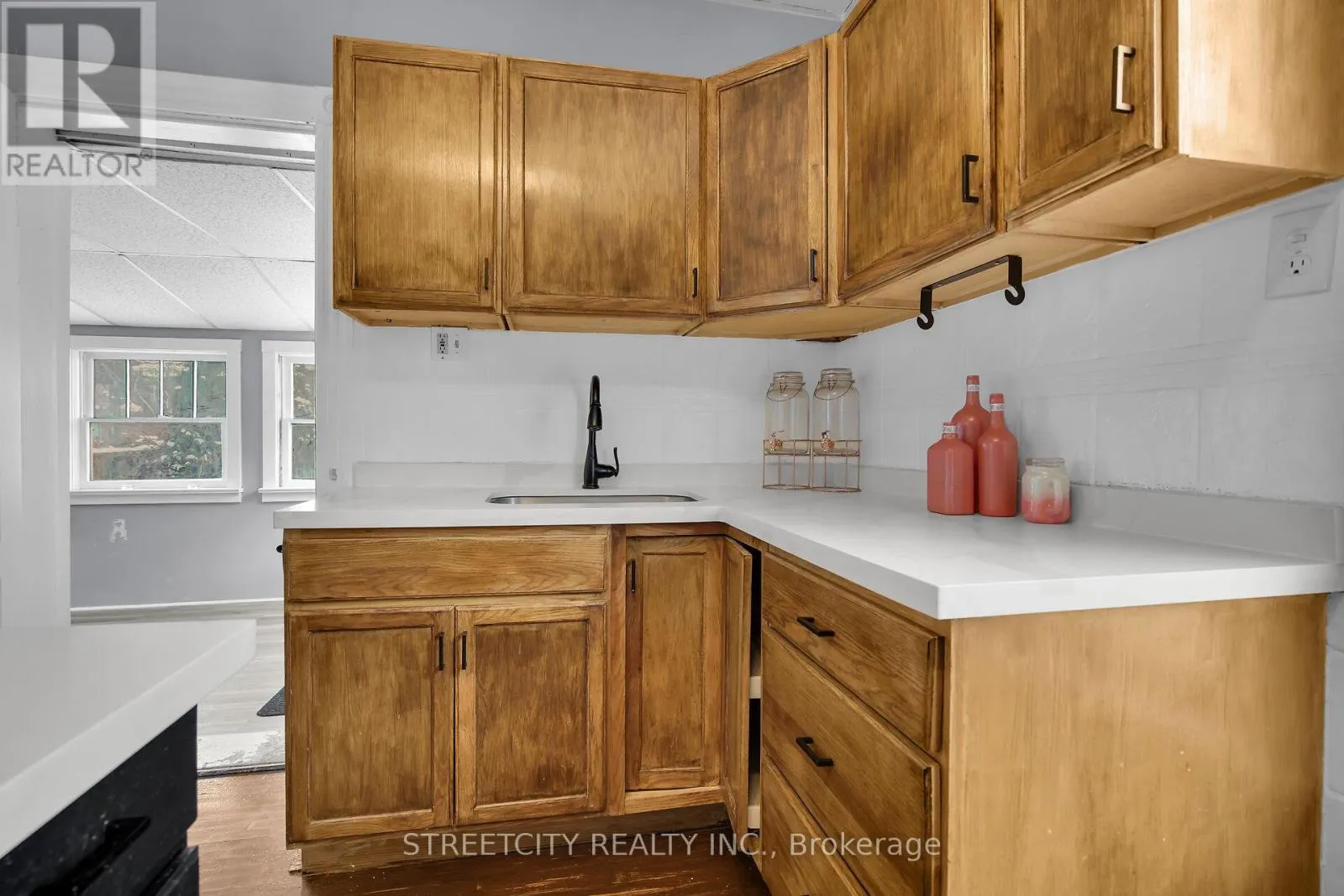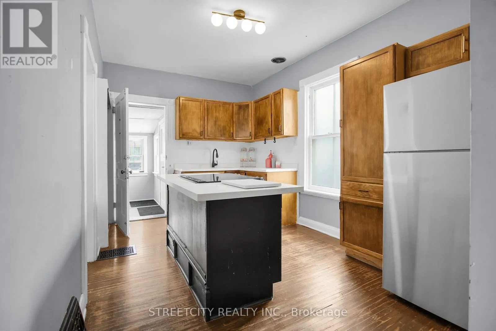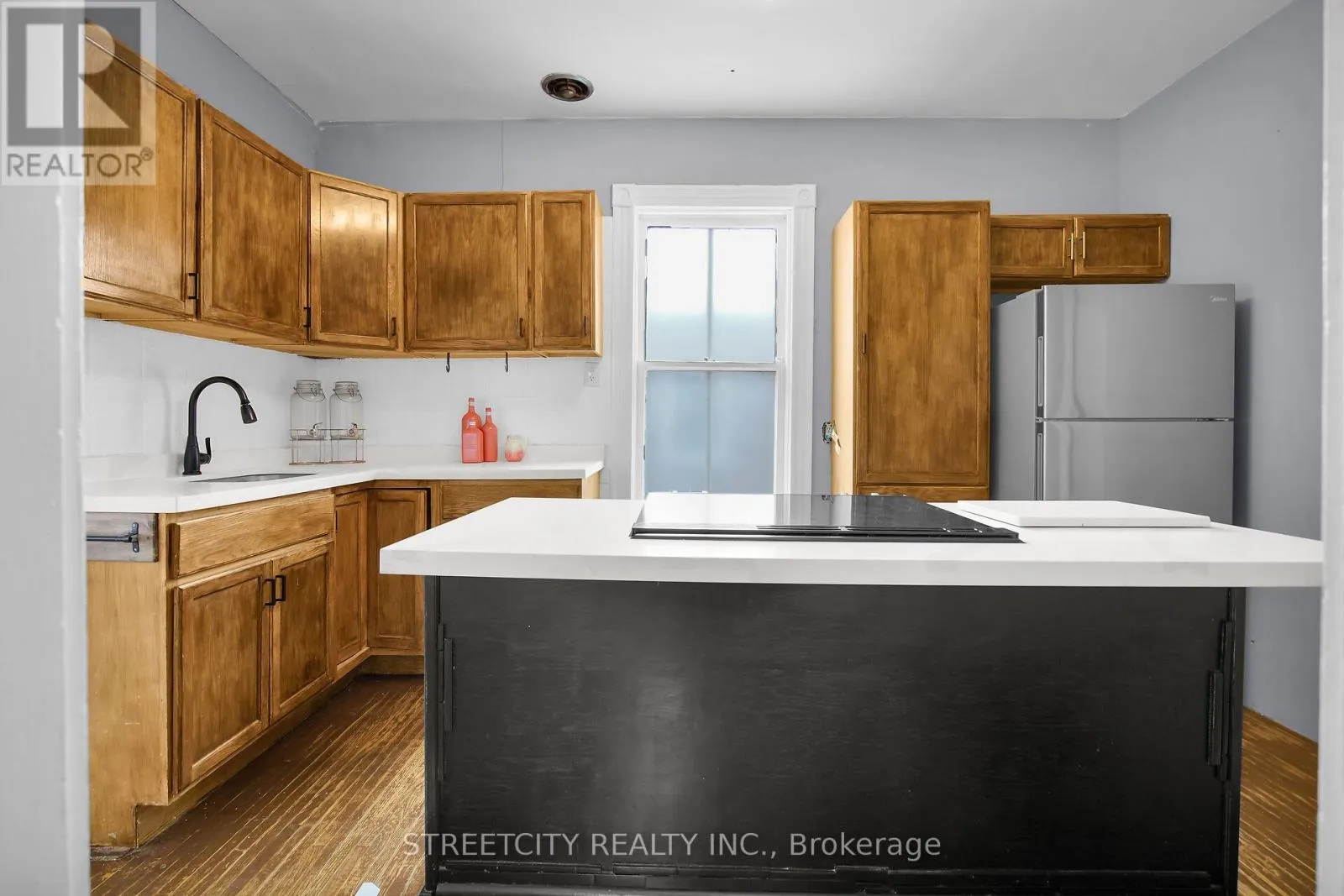 Cross Streets: ASHLAND AVE. ** Directions: FROM DUNDAS ST. OR FLORANCE ST. TO ASHLAND AVE. Do not miss this cozy and solid yellow brick house, 3 bedrooms, 1.5 bathroom, in Great Old East London! situated in quiet street. Great fit for young family or first time home buyer. Features covered front porch, a good size family room open to dining room, a primary bedroom on the main floor, and an updated kitchen with island and 3 pc. Bathroom, a sunroom for relaxation times. Second floor offer 2 bedrooms, 2 pc bathroom. Fully fenced backyard with storage room, privet long driveway almost 3 cars. New sewer line updated 2 years ago. Located in desirable neighbourhood, close to downtown, Fanshawe College, school buses, shopping, a few steps to public transportation, easy access to highway 401. Book Your Showing Today! ** This is a linked property.** (id:27476)