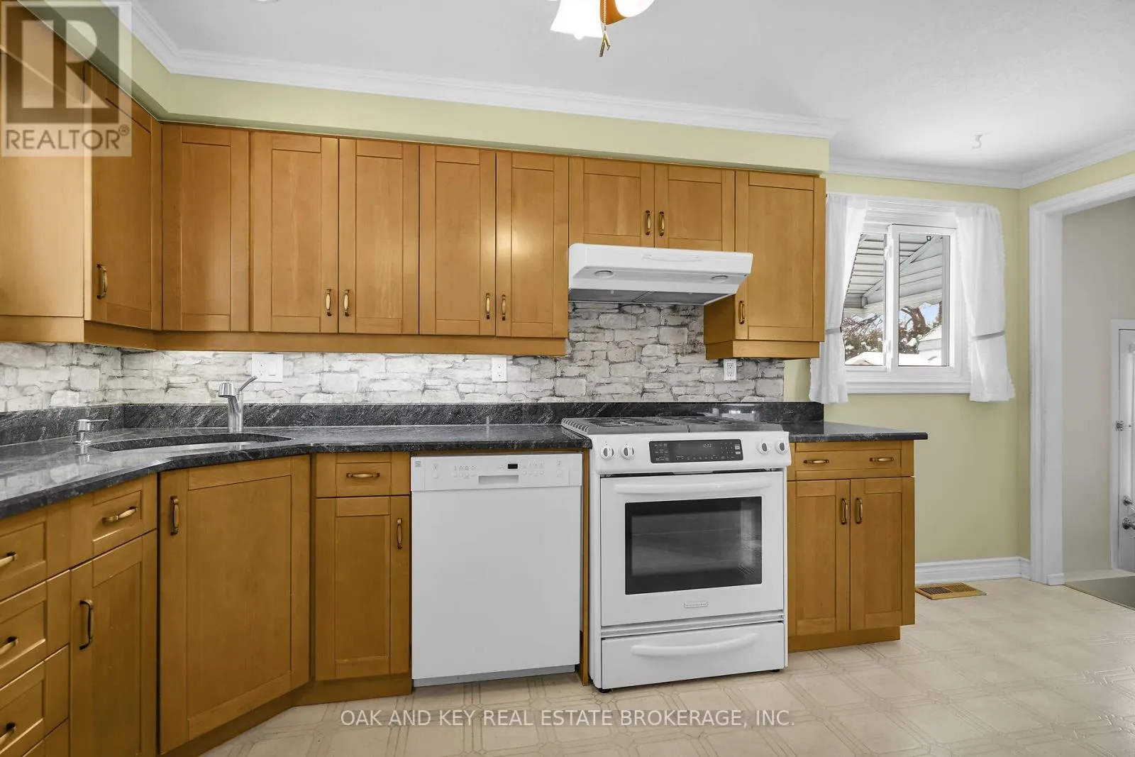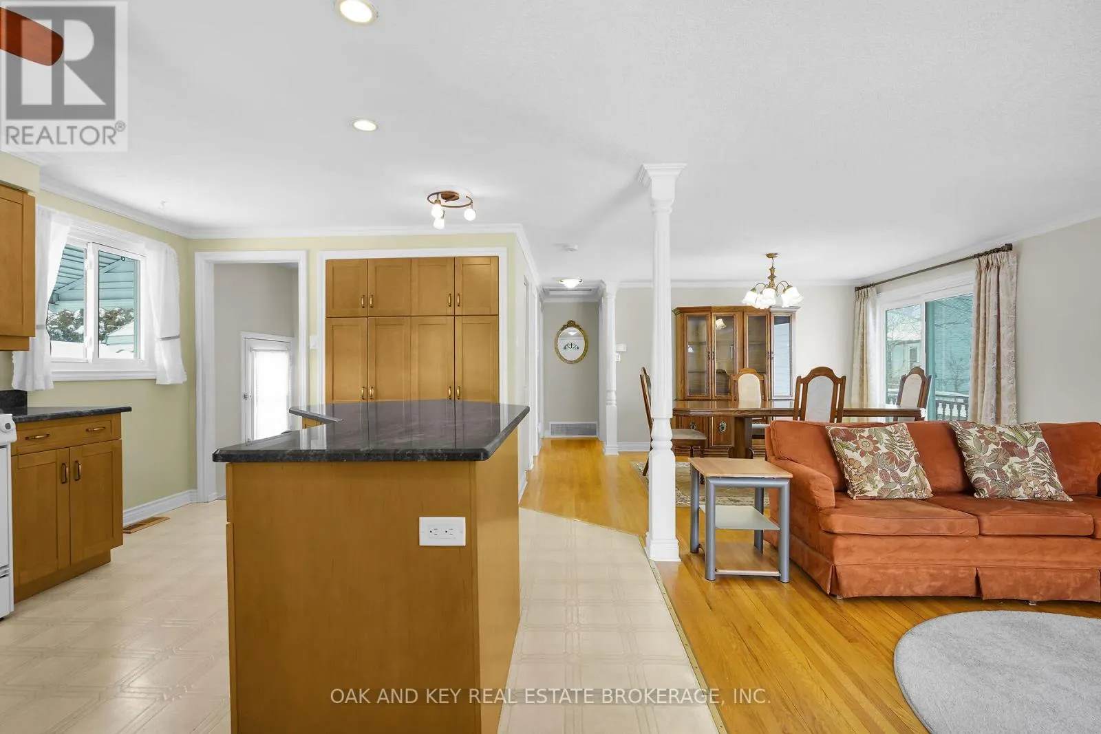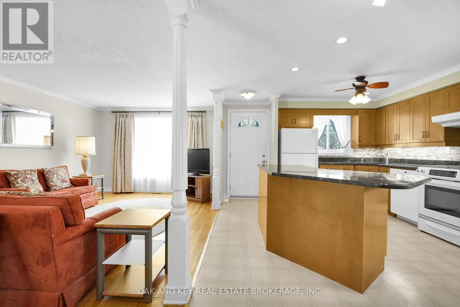 Cross Streets: Tweedsmuir Avenue & Court Lane. ** Directions: From Highbury Ave N, head east on Trafalgar St. Turn right (south) onto Hale St, then take the first left onto Tweedsmuir Ave. Turn left onto Court Lane- the home is the second house on the left. Welcome home to 6 Court Lane, a charming 2-bedroom, 2-bathroom bungalow tucked away on a quiet street in East London. The main level features original hardwood flooring and an open-concept living, dining, and kitchen area complete with stone countertops and ample cabinetry. Lovingly cared for, the home offers excellent granny-suite potential with a side entrance and finished basement. Additional highlights include an 8-car double-wide driveway, 1.5-car detached garage, fully fenced yard with deck, two exterior gas hookups for outdoor cooking, and an updated furnace and air conditioner (2022). Enjoy a peaceful setting with convenient access to schools, parks, shopping, and public transit-perfect for downsizers, first-time buyers, or anyone seeking easy one-floor living in a welcoming, well-established neighbourhood. (id:27476)