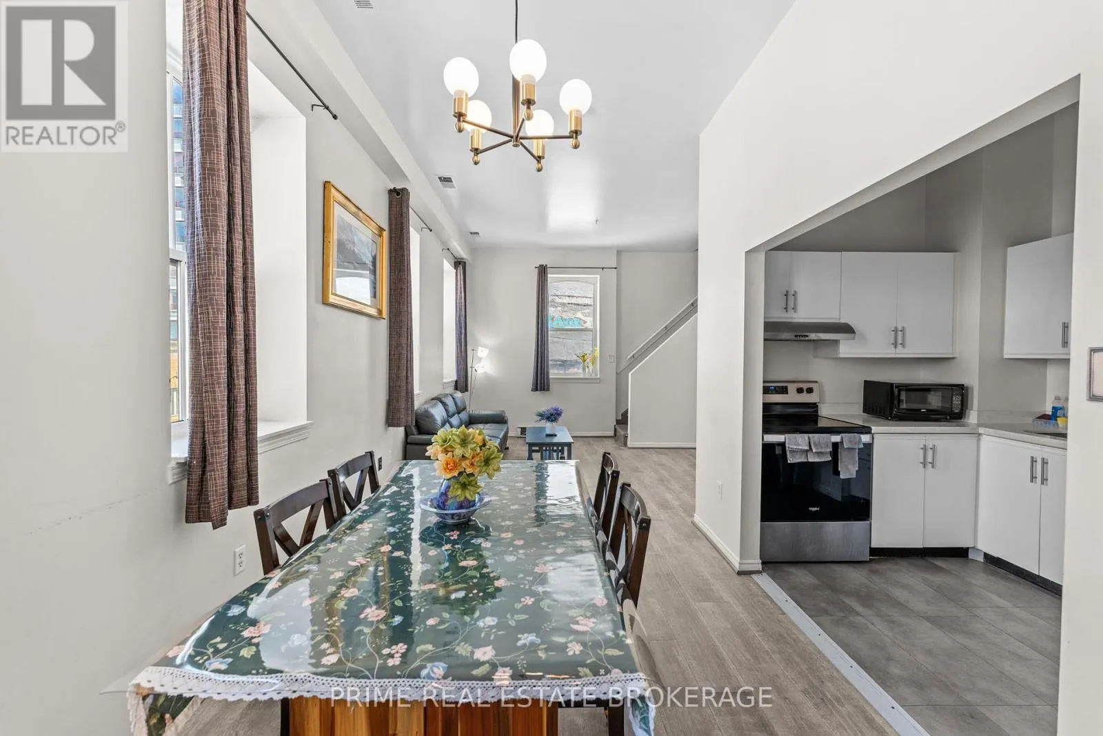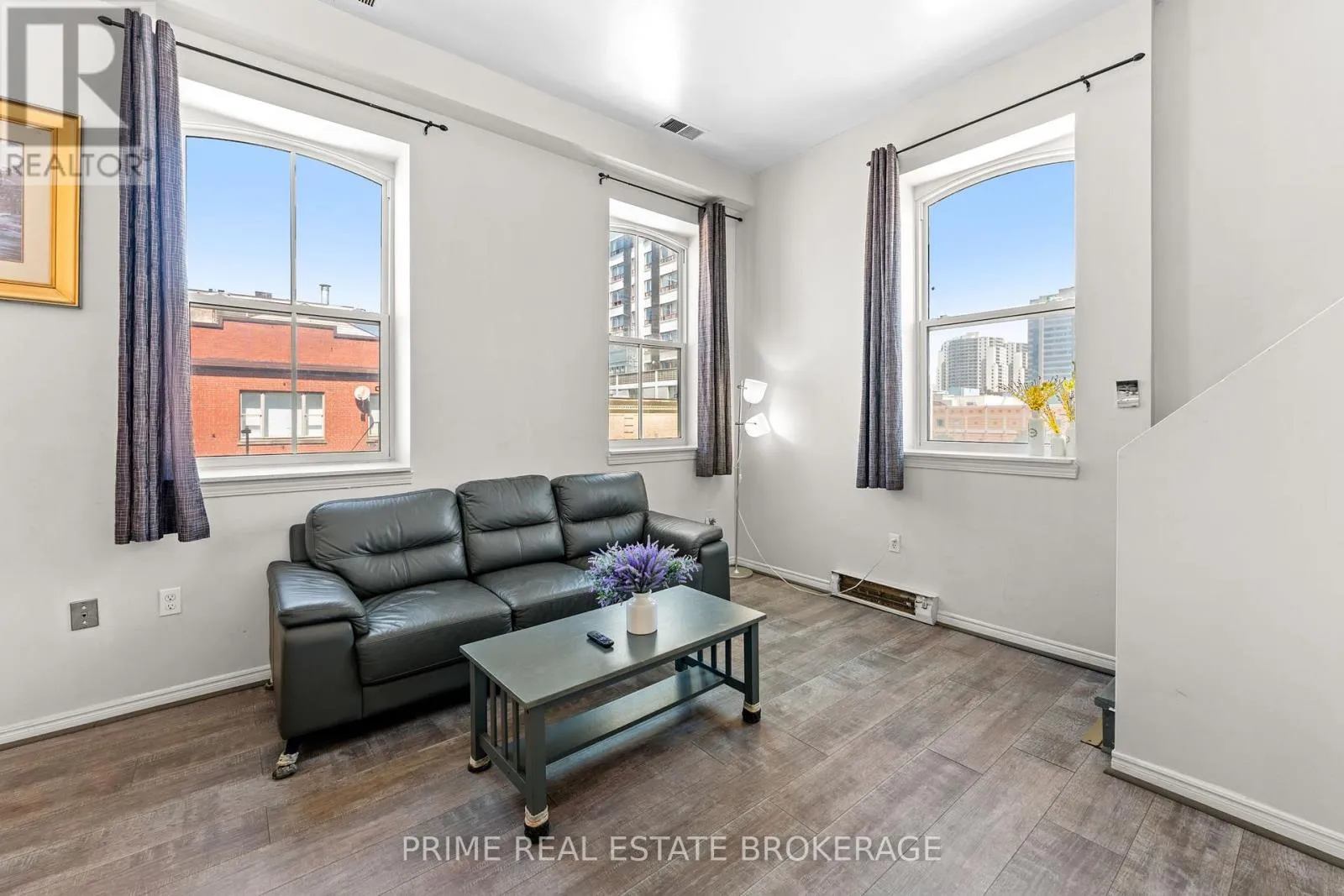 Cross Streets: Richmond & King. ** Directions: Heading south on Richmond Street, building on the left side of the street on the corner of Richmond & King. Welcome to this beautifully updated, fully-furnished, two-storey unit, perfectly situated on Richmond Row in downtown London. The open-concept main floor flows seamlessly between the living area, through the dining and the kitchen, framed by oversized windows that fill the space with natural light. Upstairs, you'll find two spacious bedrooms and a full bathroom, while the main level offers a convenient powder room for guests. Enjoy the ease of all-inclusive living paired with an incredible location. Just steps from the Covent Garden Market, Canada Life Place, and some of Londons best shops, cafés, and restaurants; including Abruzzi, Waldos on King Bistro & Wine Bar, and The Early Bird. This is where modern living meets the best of downtown London. (id:27476)
