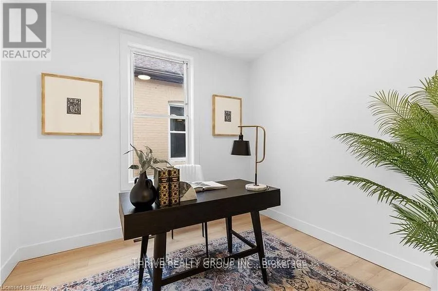 Cross Streets: Quebec St. ** Directions: From Quebec Street go west on Queens. House is on north side of road just east of Ontario Street. Recently renovated, you'll fall in love with this all brick home in desirable Old East Village. This home design is tasteful from top to bottom, with all new finishing's. 2024 renovations include new concrete driveway, soffit, fascia and eaves, and tastefully painted with heritage colours. 2024 plumbing, electrical and HVAC with new AC, new flooring, trim and doors and paint throughout with 2 bathrooms, 2024. Stainless steel appliances with newer washer and dryer, LVP flooring, spray foam insulation in basement, new large deck for those summer evenings and much more! Better than new at an affordable price in trendy OEV! Photos are from when the home was previously staged. (id:27476)