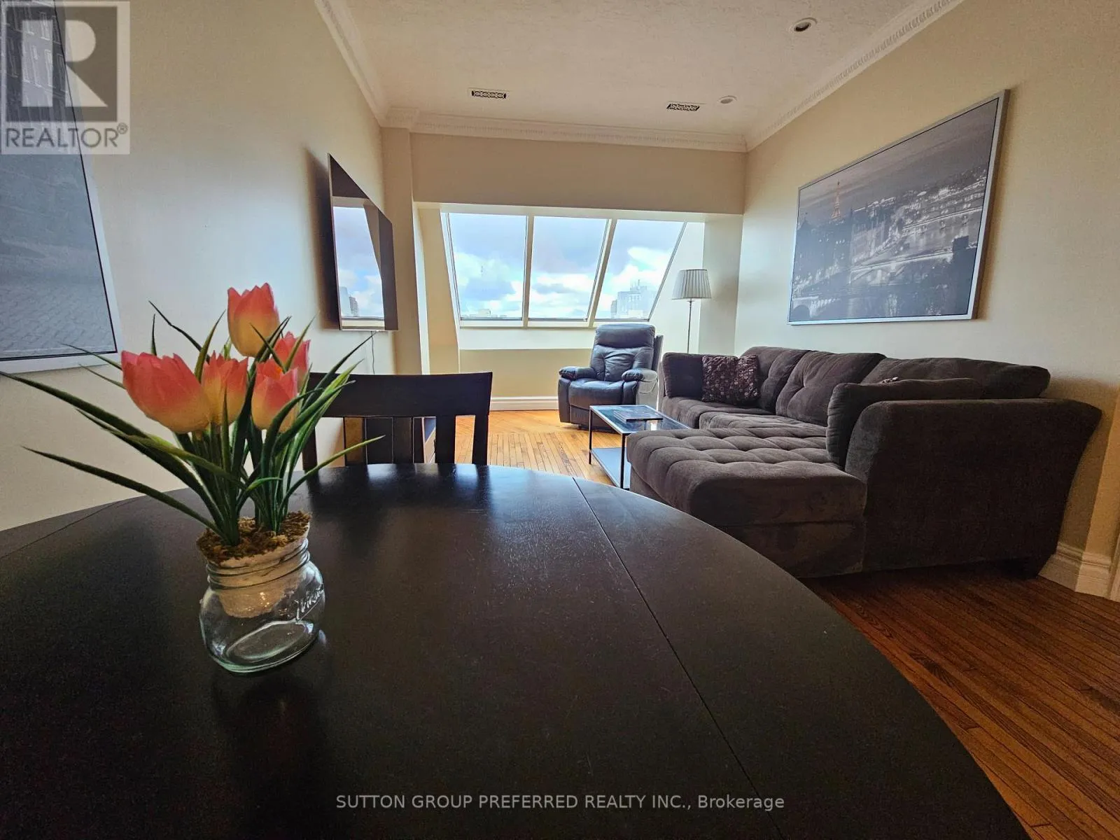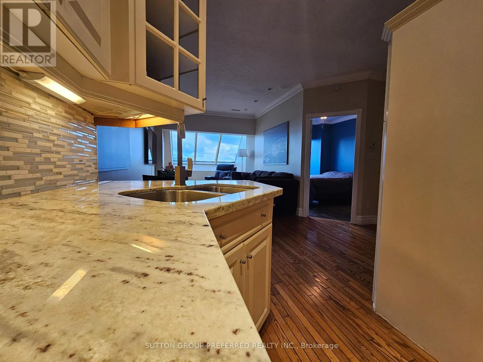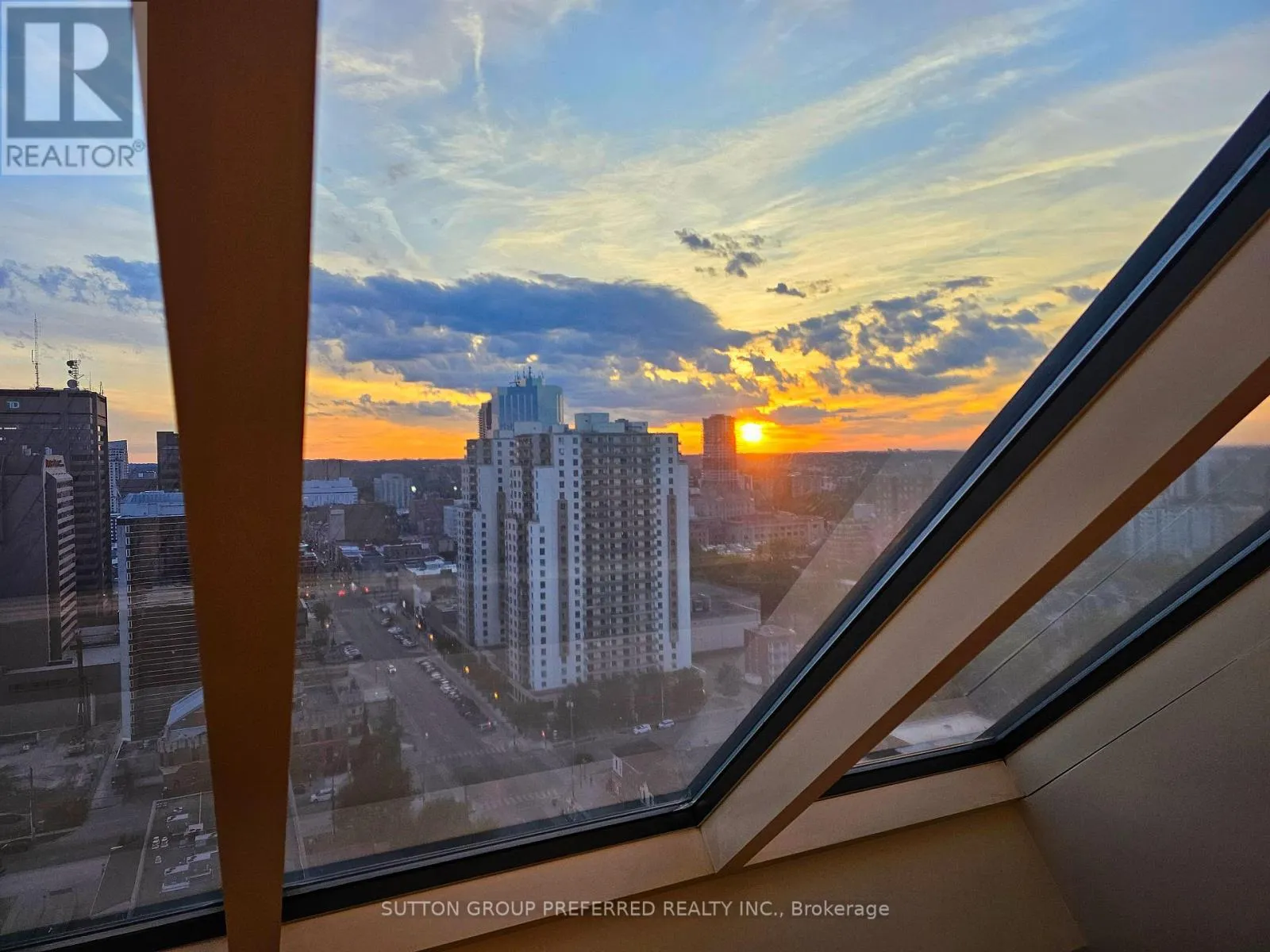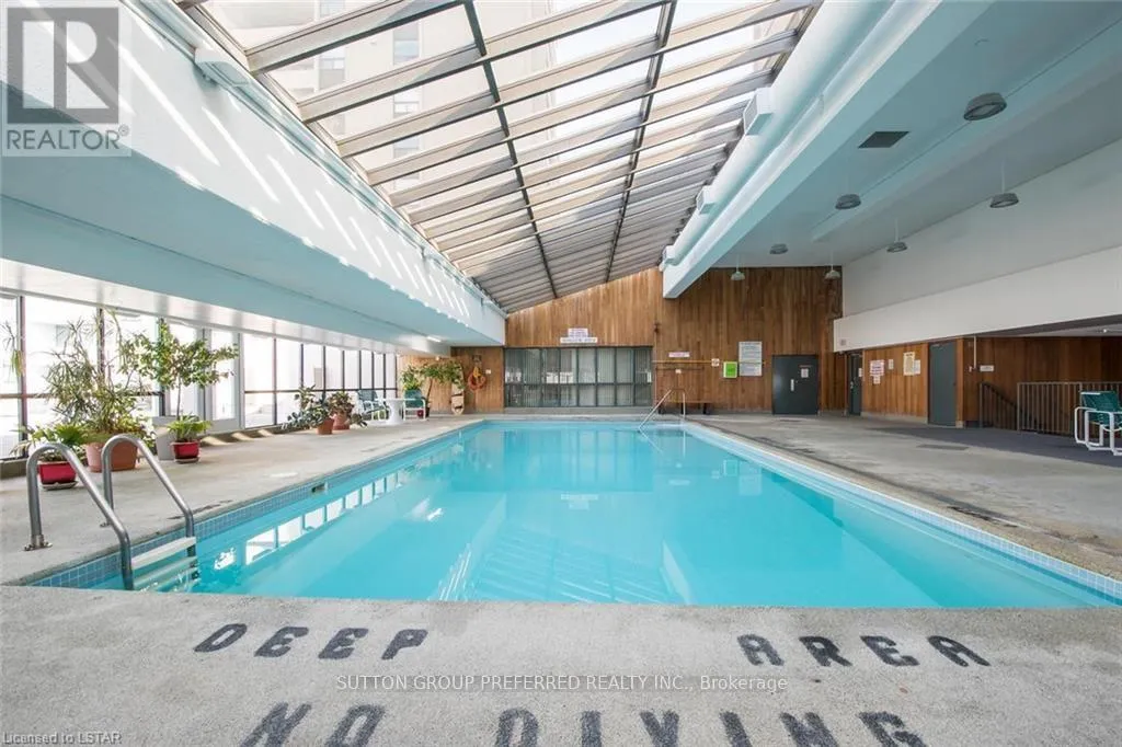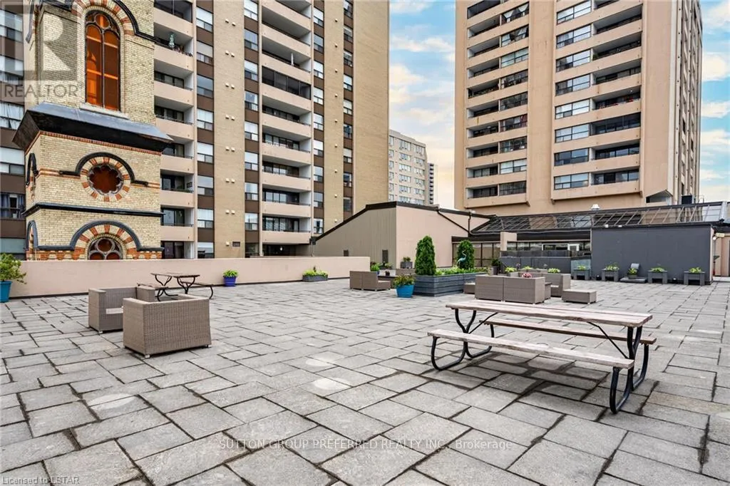 Cross Streets: Colborne. ** Directions: Corner of Dundas and Colborne. Penthouse Living in the Heart of Downtown London! Experience executive living in this freshly updated one-bedroom penthouse suite at London Towers. Perched high above the city with stunning western sunset views, this home blends modern finishes with unbeatable amenities, all in a prime downtown location. Step inside to find a bright, move-in-ready space featuring a granite kitchen countertop, stylish tile backsplash, and oak hardwood floors throughout the foyer, kitchen, living, and dining areas. The bedroom is finished with warm laminate flooring, and the unit includes in-suite laundry with a stackable washer/dryer and stainless steel appliances. The all-inclusive condo fee ($534.12/month) covers heat, hydro, central air, water, and internet, plus full access to resort-style amenities: indoor pool, sauna, gym, library, party room, and a 3rd-floor outdoor terrace. The price includes the fridge, stove, dishwasher, washer and dryer, furniture, wall decor, and window coverings. Parking is convenient, with one underground space included, optional extra parking, and a convenience store right in the building. Enjoy the convenience of an express elevator to the penthouse levels, while living steps from London's best restaurants, shops, parks, trails, transit, and year-round festivals. With the $4,279.86 special assessment paid, this unit is priced to move quickly. This is the perfect opportunity for buyers seeking lifestyle, convenience, and value. Don't wait, penthouse suites in London Towers don't last long! (id:27476)