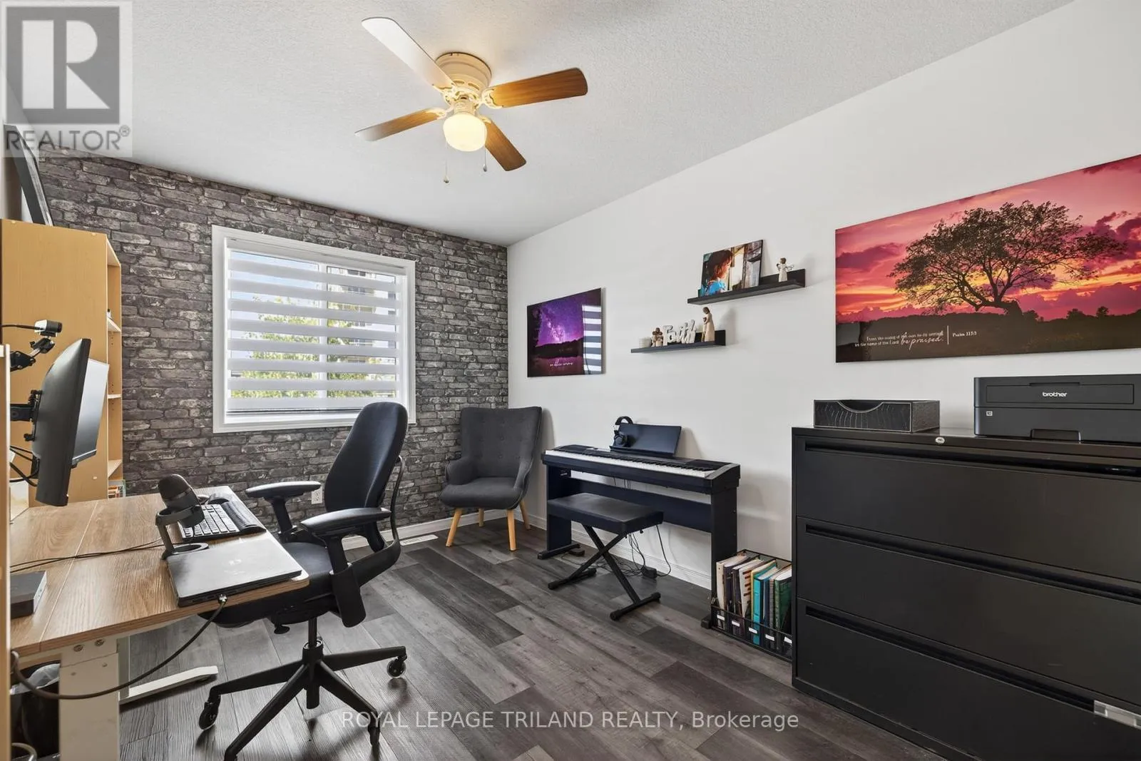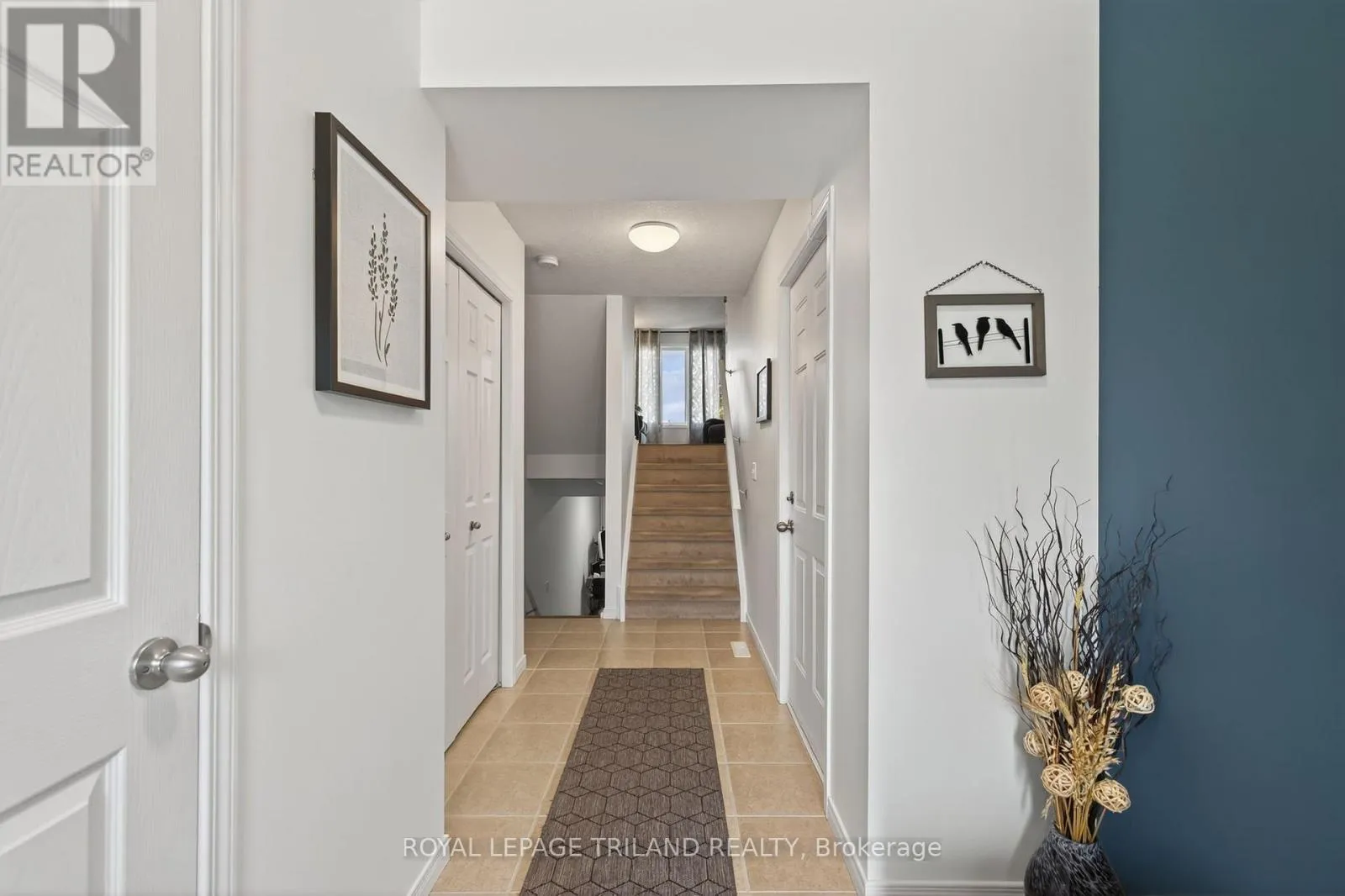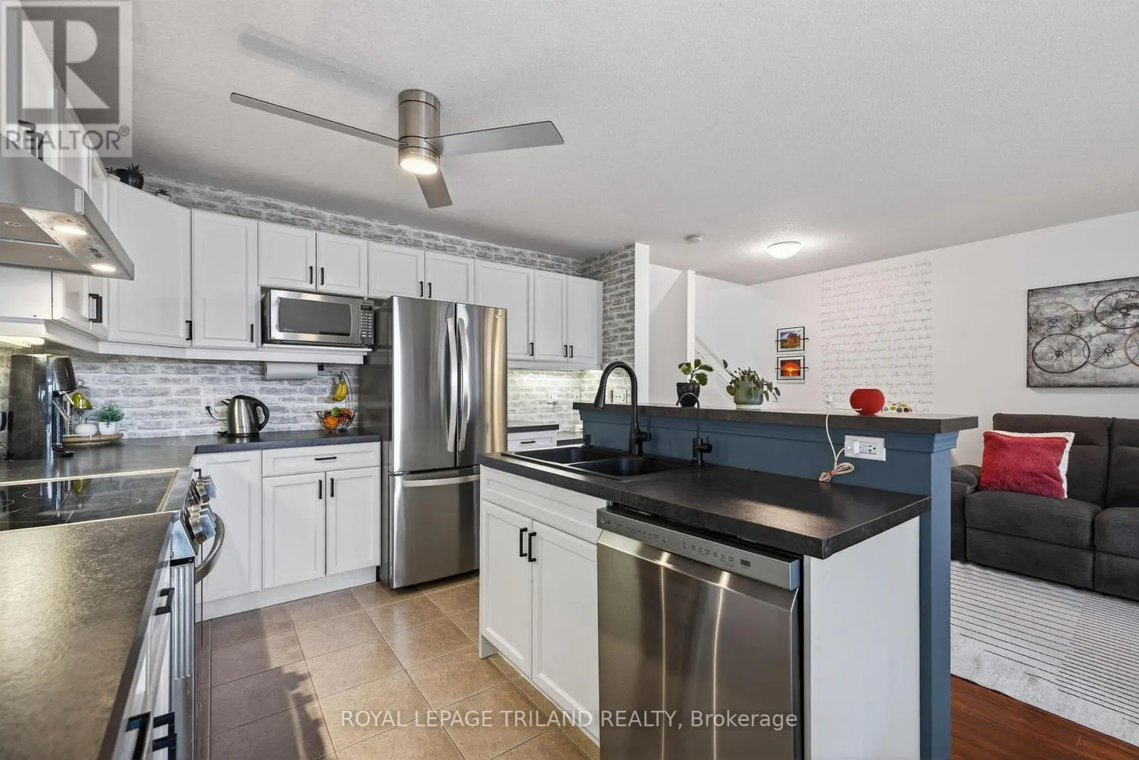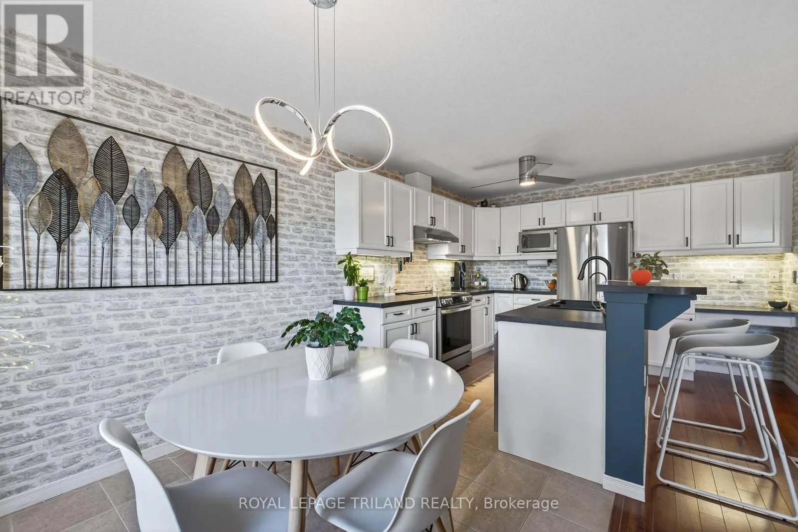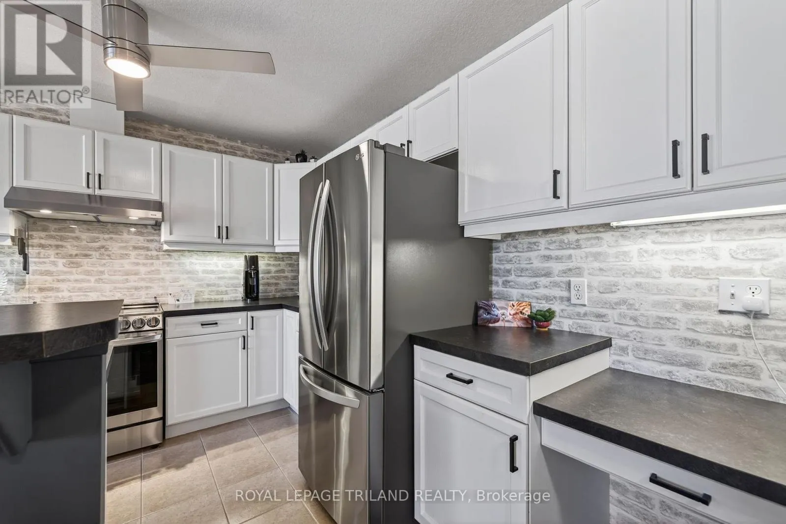 Cross Streets: Benjamin Drive. ** Directions: South on Highbury Ave. N., left onto Edgevalley Rd., right onto Agathos St., right onto Purser St. Welcome to 1625 Purser Street, Unit 39, a stylish multi-level end unit condominium in Northeast London's sought-after Wyngate community by Rembrandt Homes. Originally constructed in 2009, this popular 'Westerdam' floor plan offers the perfect blend of modern comfort and low-maintenance living. Step inside to a bright and spacious foyer with direct access to the single car garage, and a convenient 2 piece bath. Just a few steps up, the open concept living, kitchen, and dining areas create the perfect space for everyday living and entertaining. The living room is finished in laminate flooring, while the kitchen and dining area feature ceramic tile and a brick patterned accent wall that adds a touch of character. The crisp white cabinetry, updated countertops, black granite sink, and high end stainless steel appliances make this kitchen as functional as it is stylish. From the kitchen, step out to your elevated sundeck, ideal for morning coffee or that evening meal. Back inside, continue up to your private primary retreat, a spacious king sized bedroom complete with a massive south facing window, generous closet space, and a 3 piece ensuite. The top level offers two additional bedrooms and a 4 piece bath, ideal for family, guests, or a home office setup. The lower level features a bright rec room finished in luxury vinyl plank flooring, with a large above grade window and a handy laundry closet. The lowest level provides plenty of extra storage and utility space, ensuring every inch of the home is put to good use. Enjoy the ease of maintenance free condo living in a prime location, just minutes to shopping, restaurants, London Airport, Masonville Mall, Western University, Fanshawe College and major transit routes. With its modern layout, natural light, and move in ready condition, this end unit offers the perfect balance of style, comfort, and convenience. Experience effortless living at its best, welcome home to Purser Street! (id:27476)
