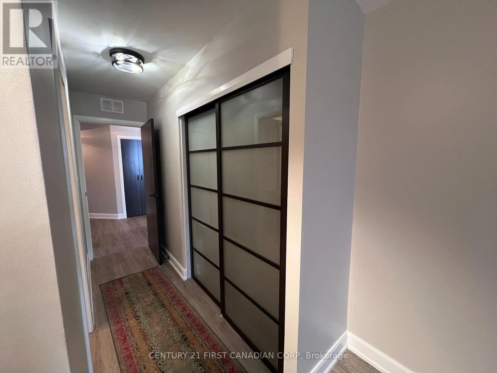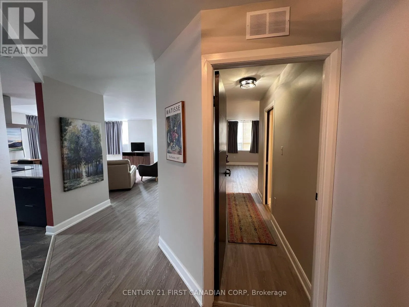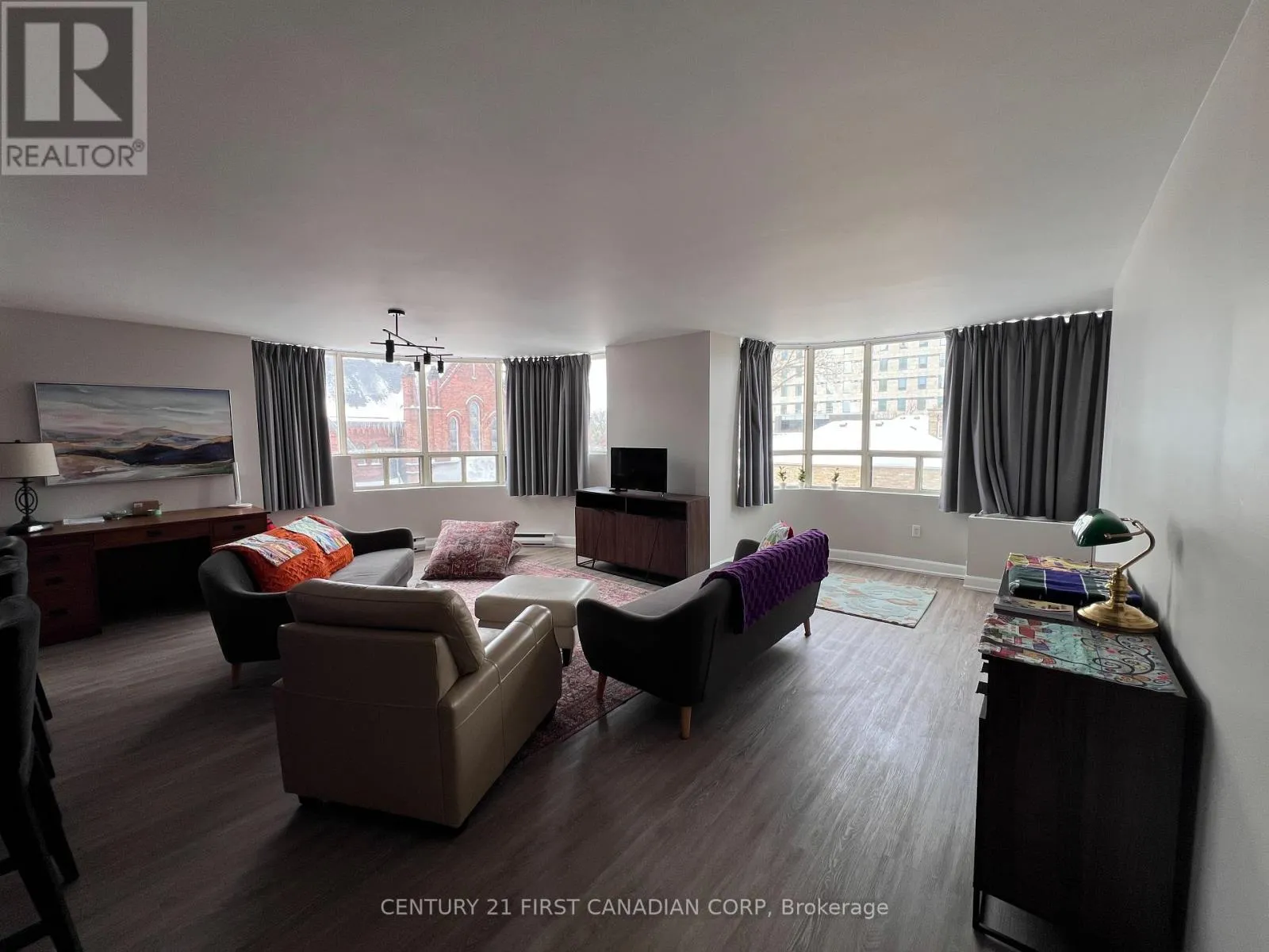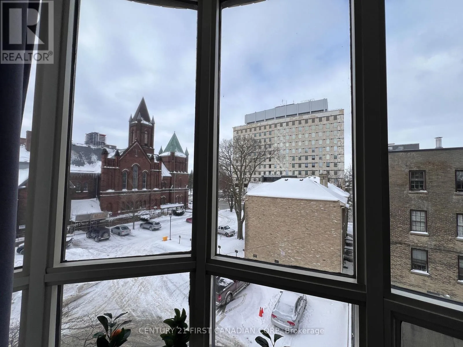 Cross Streets: QUEEN. ** Directions: From Dundas St & Wellington St, go east on Wellington St, turn right onto Dufferin Ave, then right onto Picton St. Enter the parking lot on the right.Queens Ave. Experience the convenience of downtown living in this fully updated fourth-floor apartment. Offering two generous bedrooms and two full bathrooms, this bright unit has been thoughtfully refreshed with new flooring, fresh paint, and a contemporary kitchen featuring granite countertops. Large windows provide plenty of natural light along with views of downtown London and the neighbouring historic church. Step outside and enjoy being just minutes from Victoria Park, local shops, restaurants, and public transit. The well-managed, secure building offers excellent amenities, including an indoor pool, a rooftop patio ideal for relaxing or entertaining, and a private entertainment suite that can be reserved for gatherings or overnight guests. Whether you're looking to downsize or settle into a vibrant urban lifestyle, this home delivers comfort, style, and unbeatable location. (id:27476)