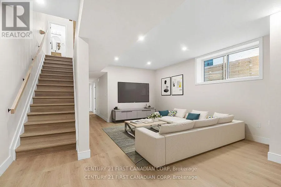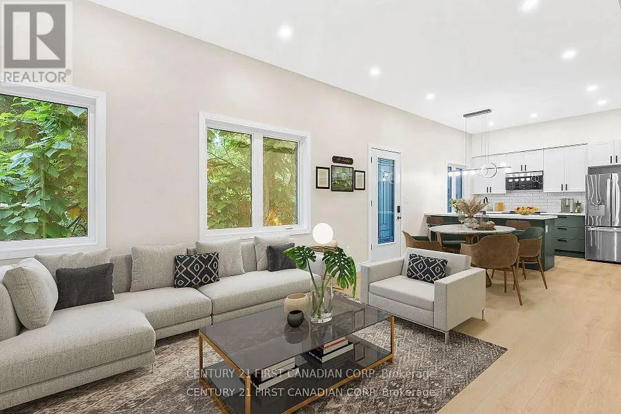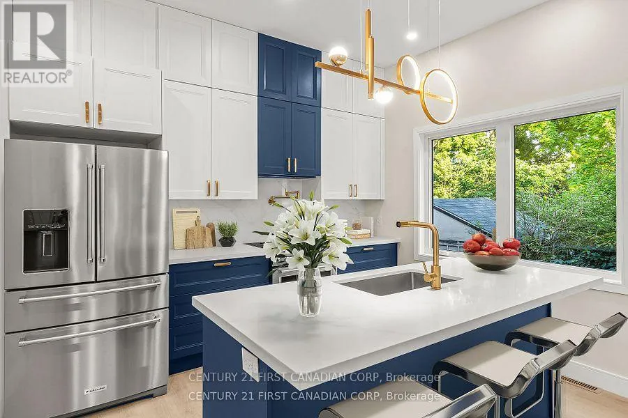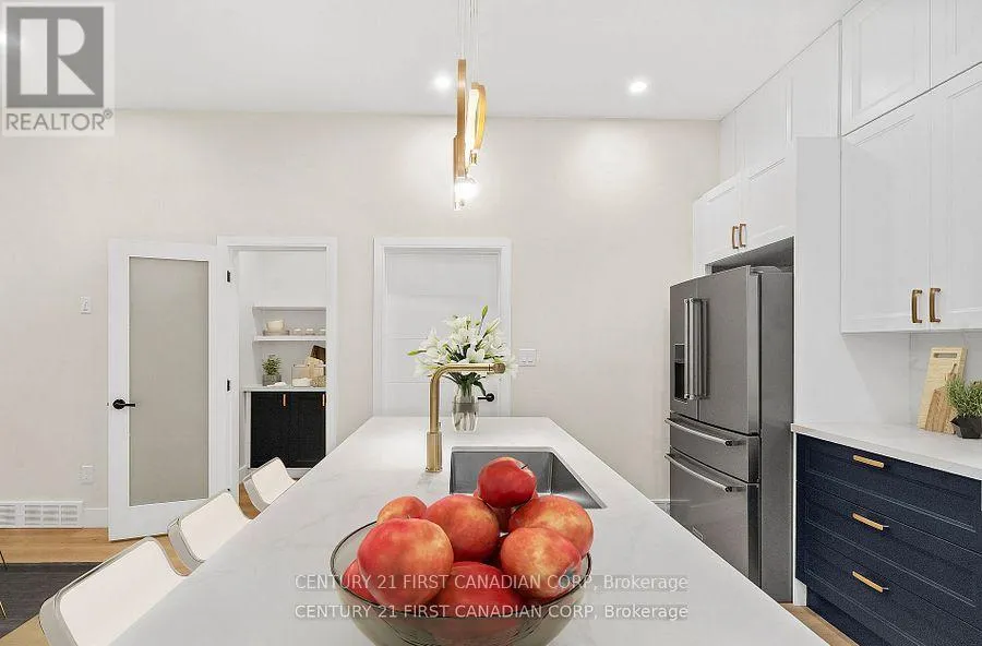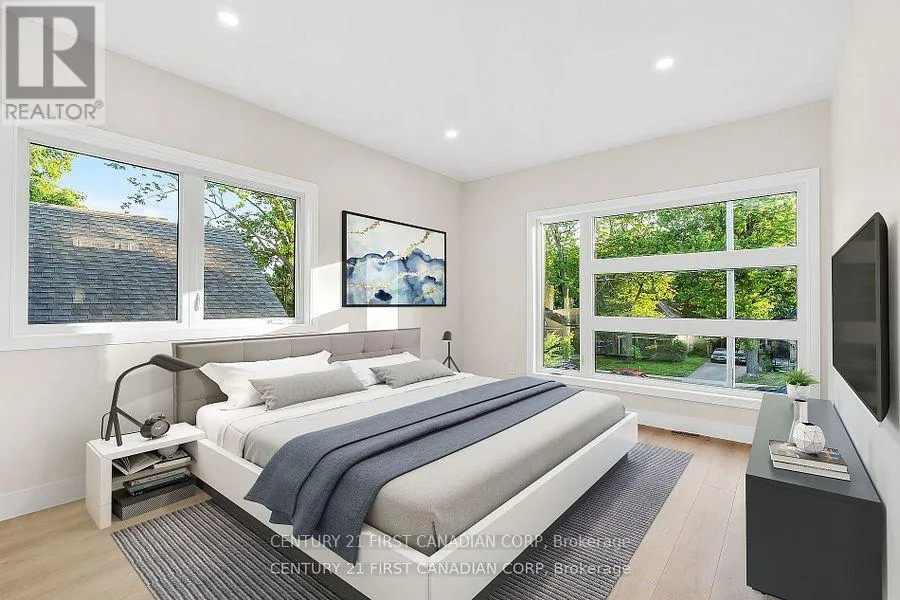 Cross Streets: GROSVENOR ST & ST. JAMES ST. ** Directions: Oxford St E and Left onto William. Home is on Left (East) side of street. An exquisite, new home in prestigious Old North with unparalleled materials and artistry. This masterpiece boasts 5000 sqft of thoughtful, custom-designed living, perfect for a single family, multi-generational family, and executive lease income potential. The elegant stone and brick exterior hints at the exceptional quality within. The grand entrance welcomes you to sun-filled space, 10-foot ceilings and walls of windows creating an immediate sense of openness and light enhanced by 4 skylights bathing the home in sunshine. The custom open-riser maple staircase with maple-slat wall, opposite the gas fireplace set into a stone media wall, speak to the craftsmanship and care in every detail of this residence. The home features two connected but also distinct, complementary wings - Main Wing and Guest Wing - offering self-contained, separate entrances, luxurious living spaces with 2 gourmet kitchens, open-concept living room, family room and dining areas. Bask in 2 primary ensuites among 5 bedrooms, 6 baths, and 2 laundries on the upper levels of the home. Two fully finished basements add 3 bedrooms, 2 baths, a Media room and a Gym (both versatile). Nestled on an expansive 350-ft deep lot, picture summer gatherings under the trees with your private park-like yard. The property boasts a large back deck with built-in gas and water hookups overlooking your own private 'estate' with a fire pit surrounded by massive stone seats in addition to the stunning 30-foot wide cedar-walled balcony, accessible from both wings. The oversized 19ftx31ft garage with16ft high ceiling and 2 EV charging outlets ensures modern convenience, while the low maintenance metal roof guarantees durability. A luxurious, versatile home in one of London's most coveted neighborhoods. Minutes to excellent schools, Western University and University Hospital. Included* 2 sets of high-end appliances, 2 HVAC systems, 2 on-demand water heaters, 2 /200amp panels, 2 sets of all meters. Photos virtually staged. (id:27476)