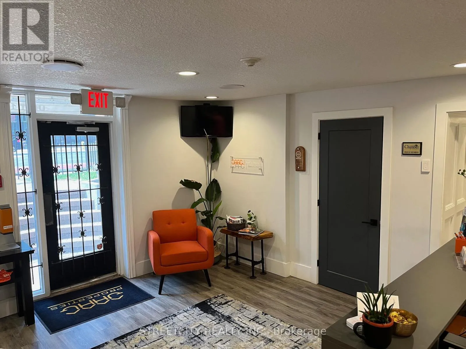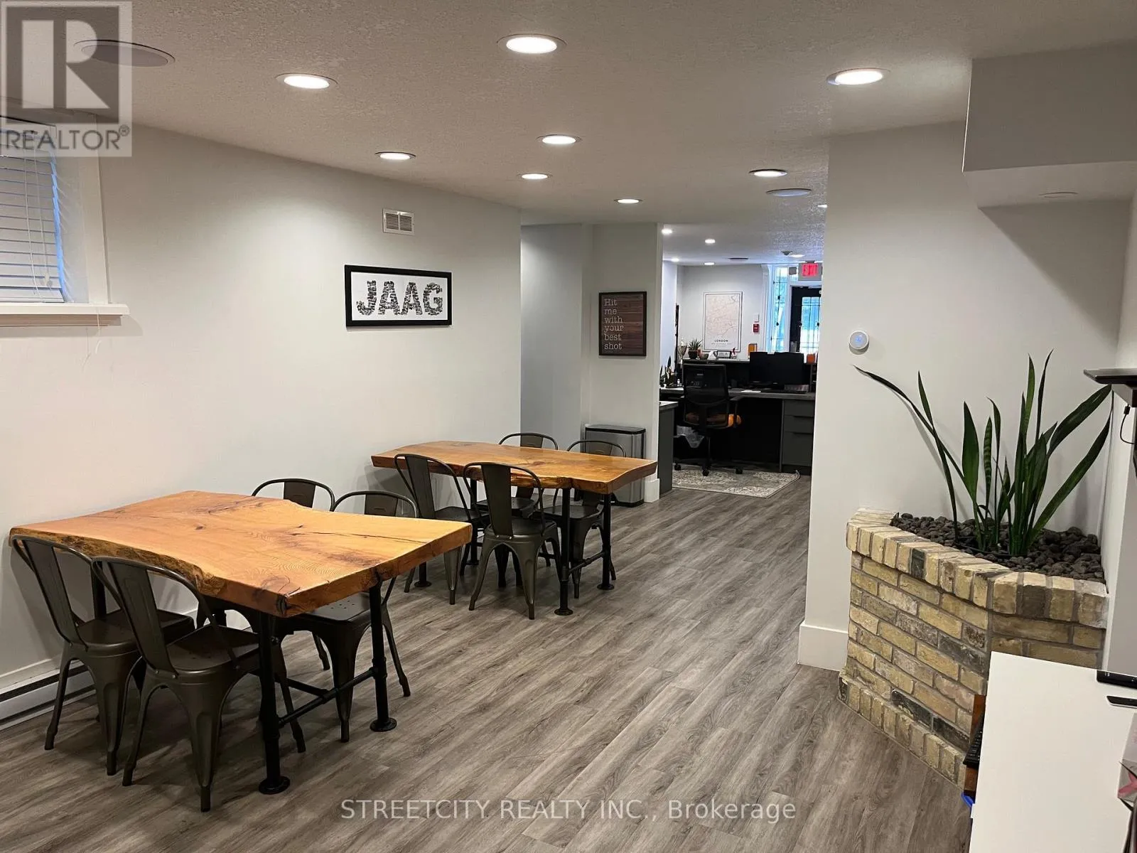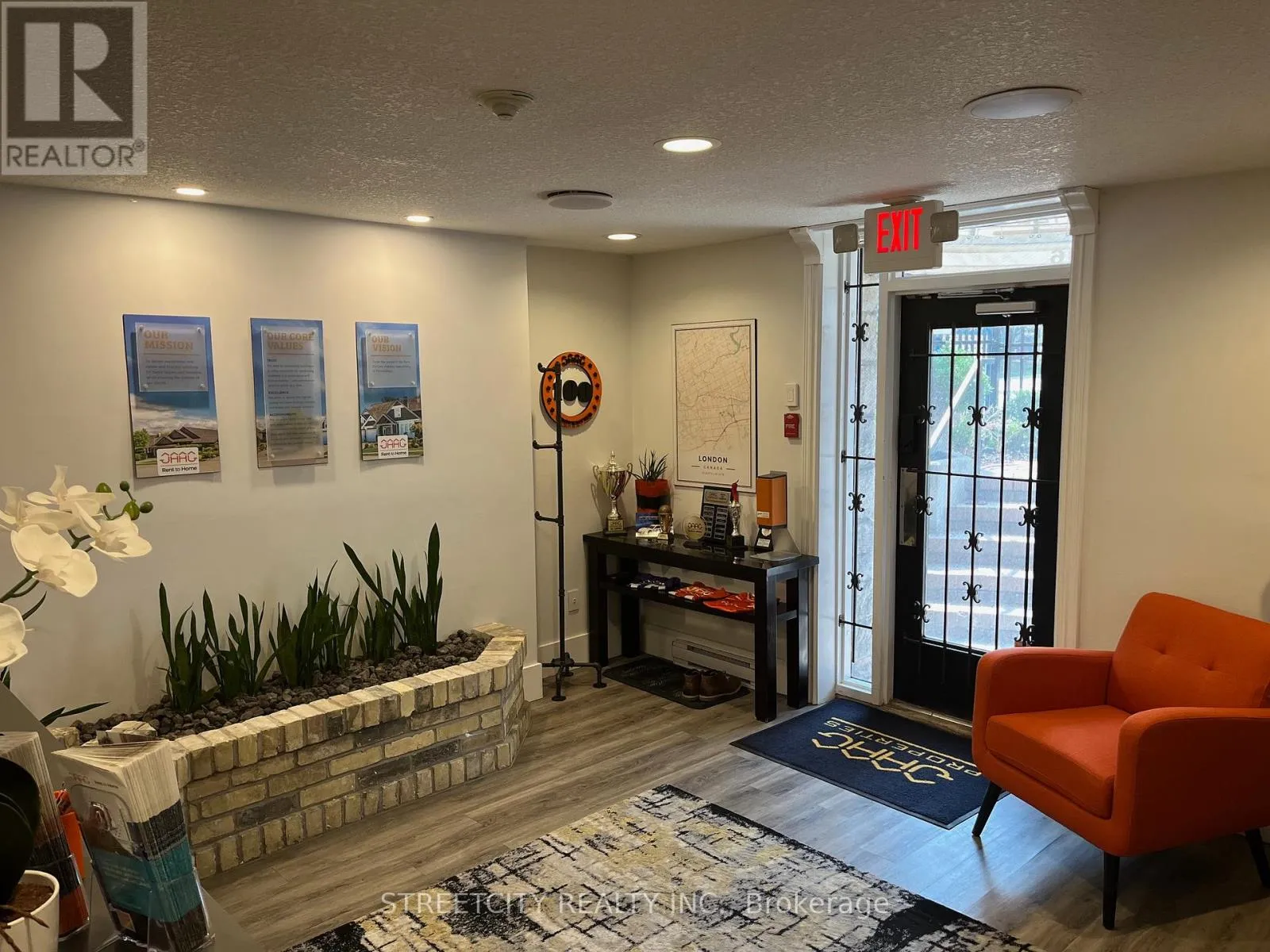 Cross Streets: Wellington St North & Queens Ave. ** Directions: Head North on Wellington parking on right hand side before Queens Ave. Prime Downtown Office Space for Sale or Lease - 440 Wellington St, London ON Exceptional opportunity to own or lease a beautifully renovated commercial office space in the heart of Downtown London. Situated prominently at the corner of Wellington Street and Queens Avenue, this high-exposure location offers direct street frontage in one of the city's busiest business corridors. Designed with a modern open-concept layout, this versatile space features a custom reception area, multiple private offices, two bathrooms, and stunning exposed brick that adds both character and contemporary style. Premium signage opportunities and consistent foot and vehicle traffic make it an ideal location for growing or launching your business. The property includes two dedicated private parking spaces, with additional spaces available for rent. It's conveniently located within walking distance to One London Place, Victoria Park, Canada Life, and Richmond Row, offering easy access to key downtown amenities and services. Don't miss your chance to secure this rare and move-in-ready commercial space in one of Downtown London's most iconic brownstone buildings. VTB & Rent To Own option available (id:27476)
