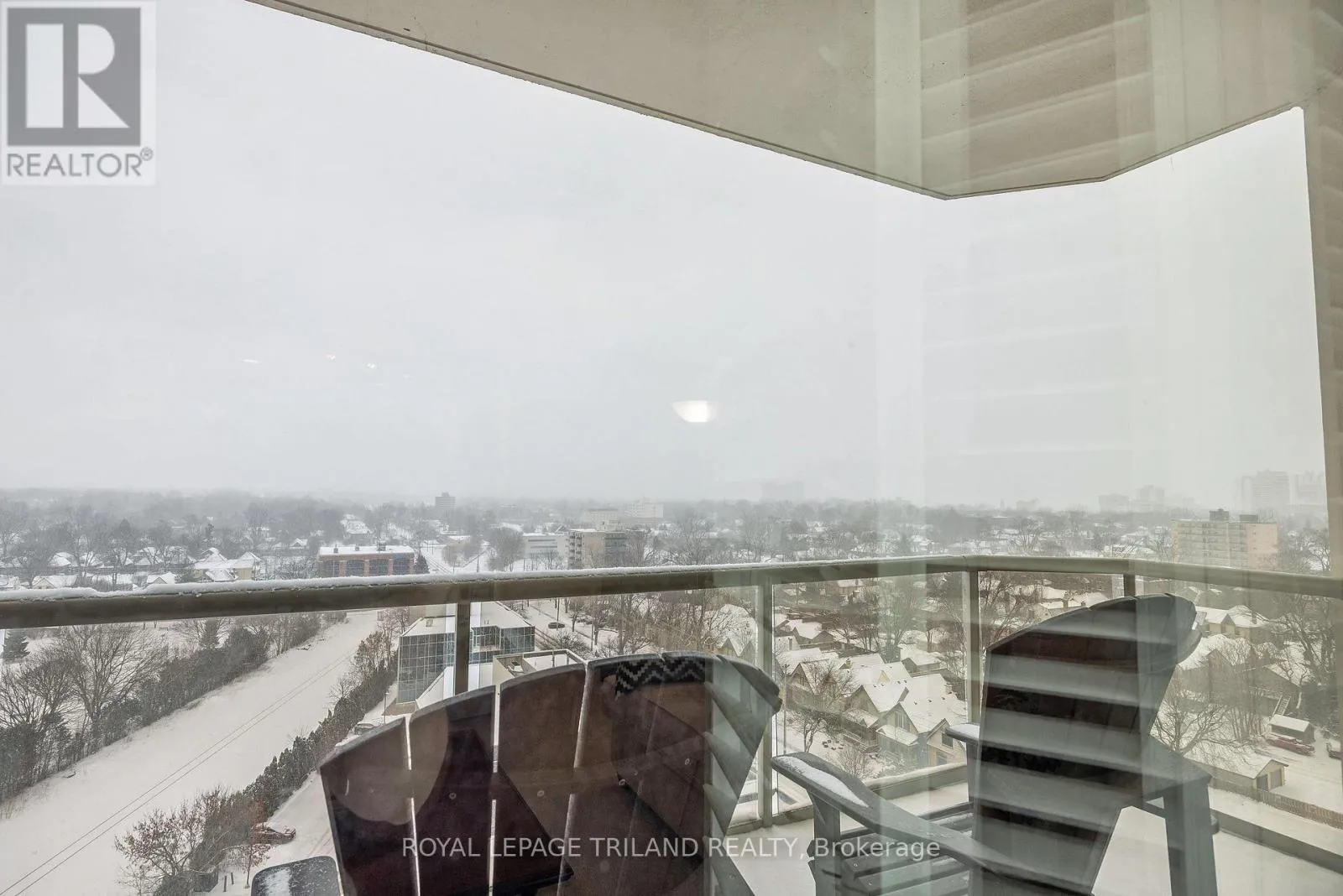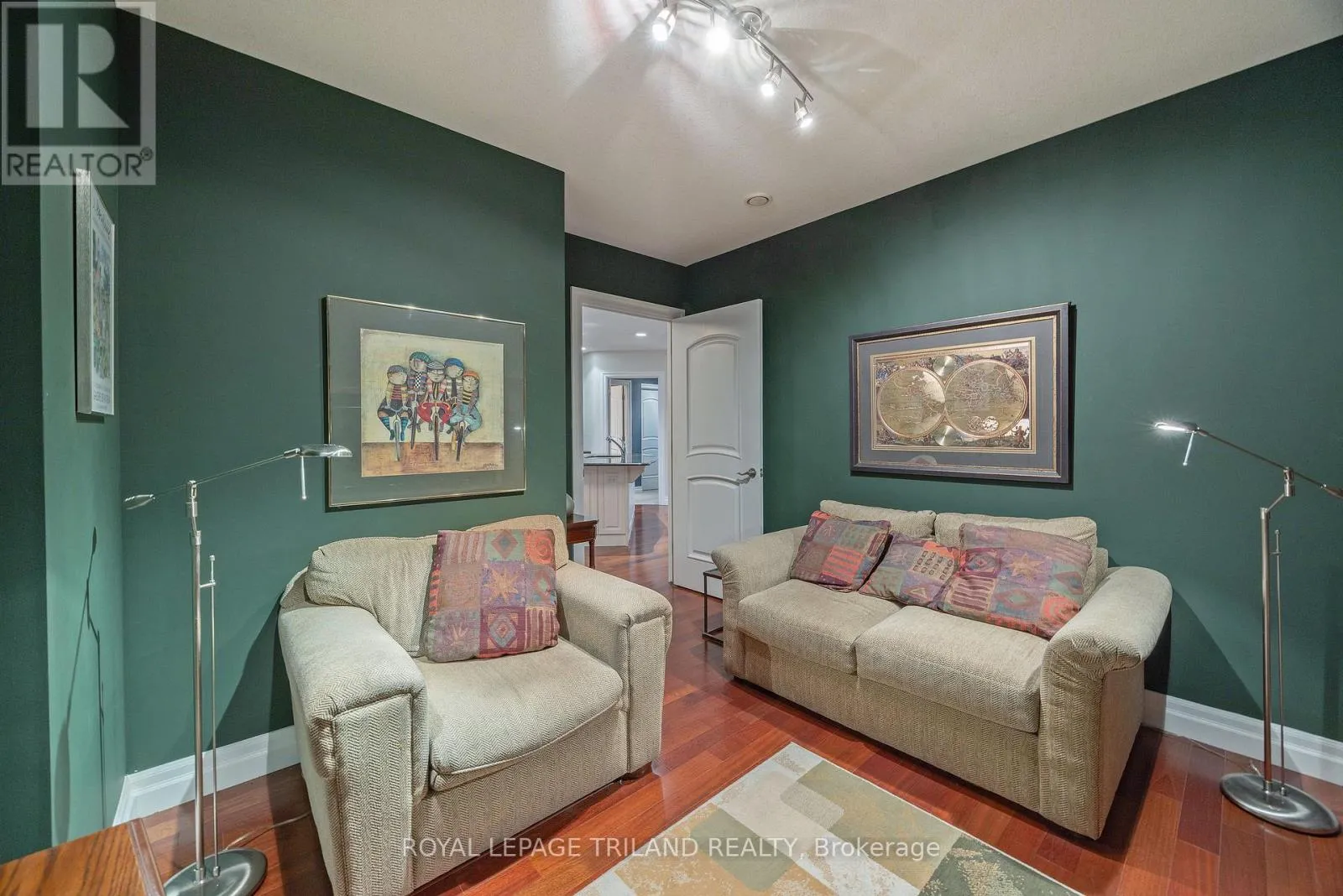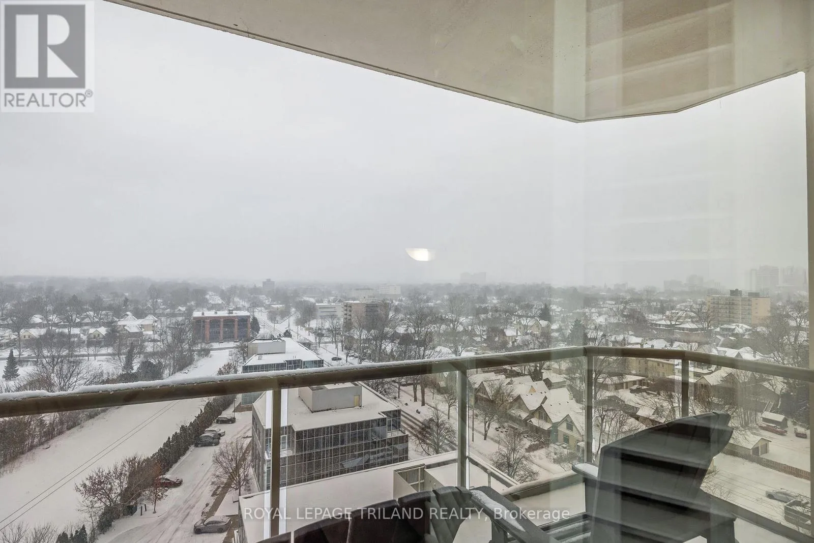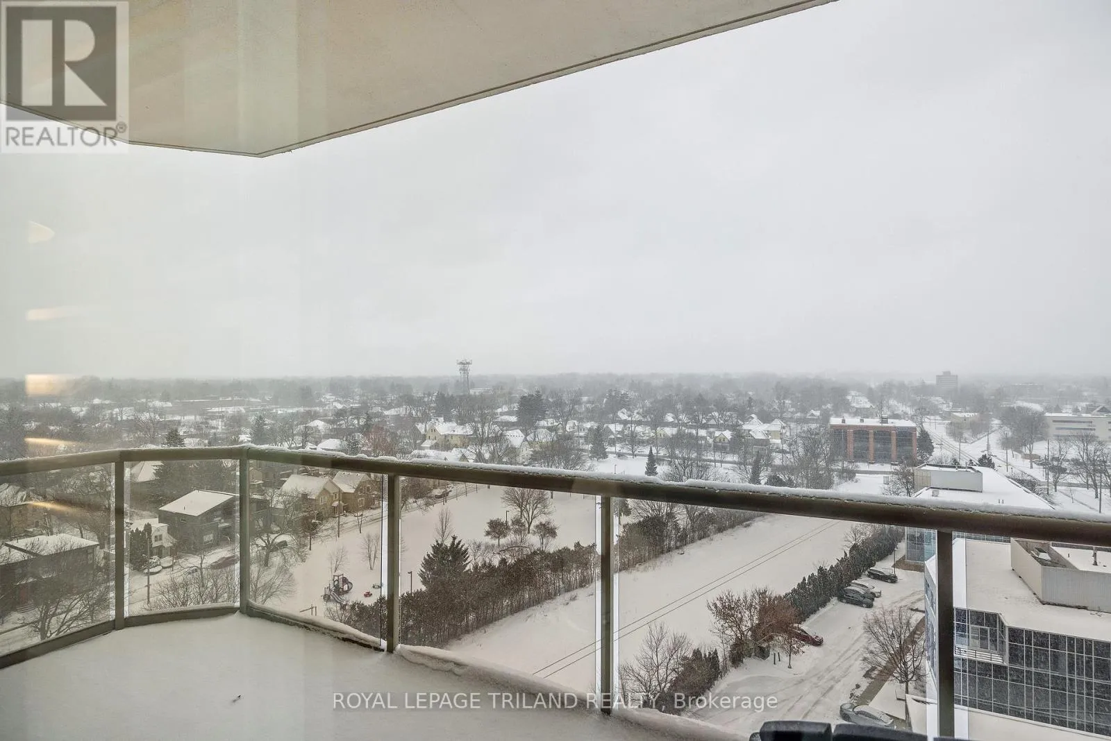 Cross Streets: RICHMOND STREET. ** Directions: HEADING SOUTH ON RICHMOND, TURN LEFT ON PALL MALLST. Welcome to penthouse living on the 12th floor, offering 1,591 sq. ft. of open-concept space with spectacular views. This suite features a well-appointed kitchen with granite countertops, ample cabinetry, a functional island and a spacious dining area. The living room, with beautiful California Shutters, opens onto an expansive balcony. This fantastic floor plan includes two generous bedrooms plus a cozy den. The primary bedroom boasts a walk-in closet and a 4-piece ensuite with glass shower and separate bathtub. A large second bedroom is conveniently located next to a 3-piece bath. Additional highlights include hardwood flooring, a large in-suite laundry/storage room and two underground parking spaces. Enjoy exceptional condominium amenities, including a fitness room, common room with pool table, movie room and a guest suite. The monthly condo fee includes heat, water, hydro and building insurance! All of this is set in a prime downtown location, just steps from Victoria Park, outstanding restaurants, and fantastic shopping. (id:27476)