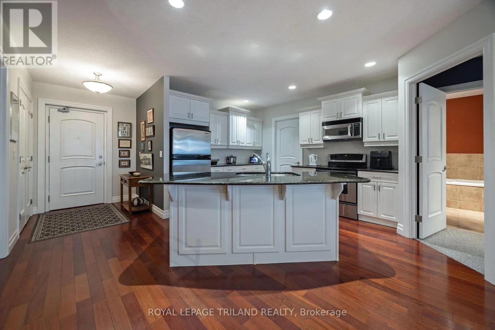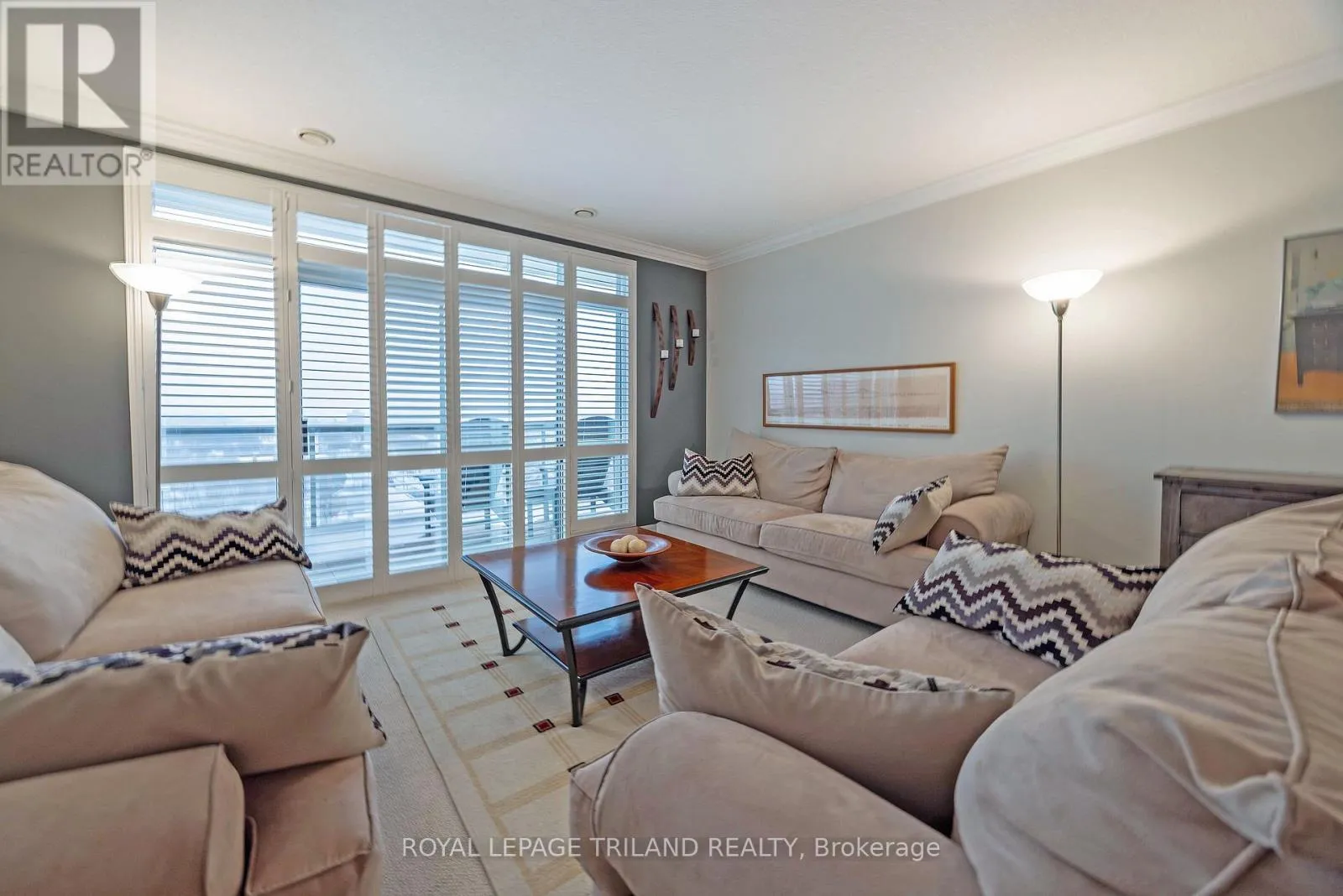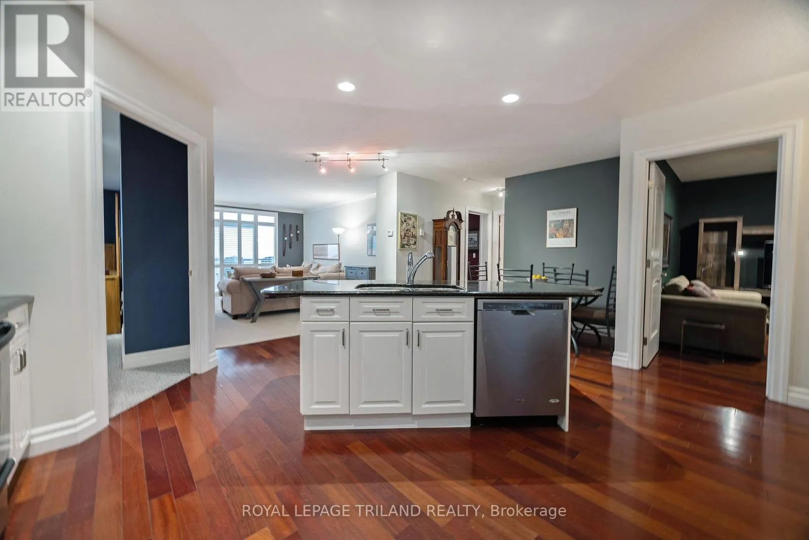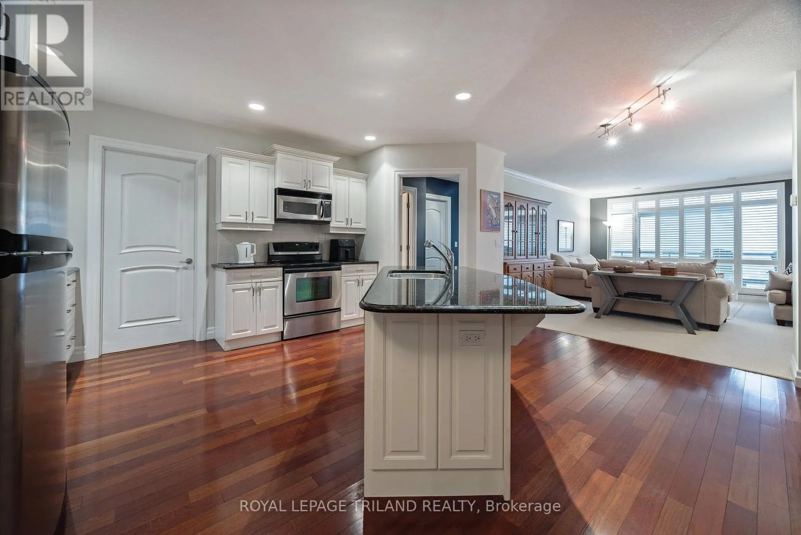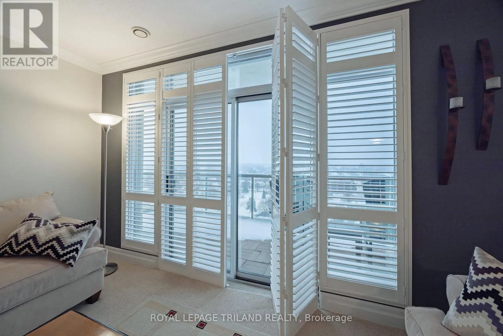 Cross Streets: RICHMOND STREET. ** Directions: HEADING SOUTH ON RICHMOND, TURN LEFT ON PALL MALLST. Welcome to penthouse living on the 12th floor, offering 1,591 sq. ft. of open-concept space with spectacular views. This suite features a well-appointed kitchen with granite countertops, ample cabinetry, a functional island and a spacious dining area. The living room, with beautiful California Shutters, opens onto an expansive balcony. This fantastic floor plan includes two generous bedrooms plus a cozy den. The primary bedroom boasts a walk-in closet and a 4-piece ensuite with glass shower and separate bathtub. A large second bedroom is conveniently located next to a 3-piece bath. Additional highlights include hardwood flooring, a large in-suite laundry/storage room and two underground parking spaces. Enjoy exceptional condominium amenities, including a fitness room, common room with pool table, movie room and a guest suite. The monthly condo fee includes heat, water, hydro and building insurance! All of this is set in a prime downtown location, just steps from Victoria Park, outstanding restaurants, and fantastic shopping. (id:27476)