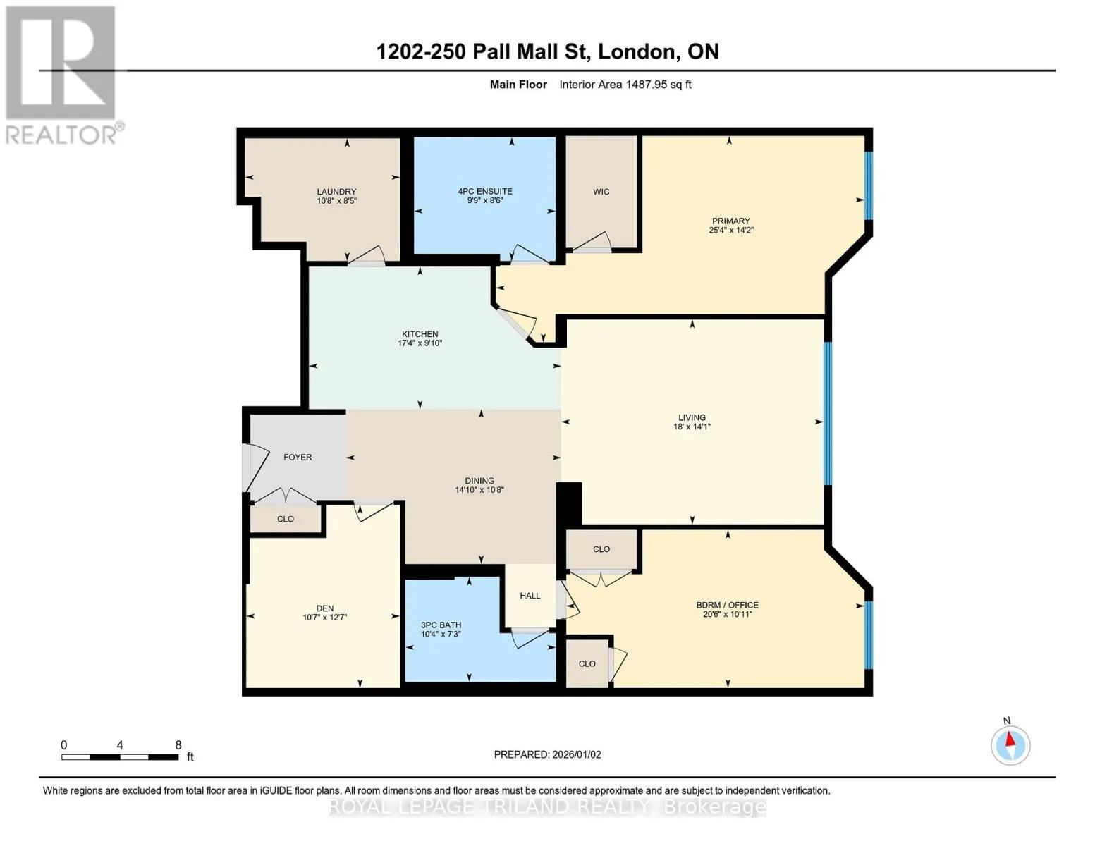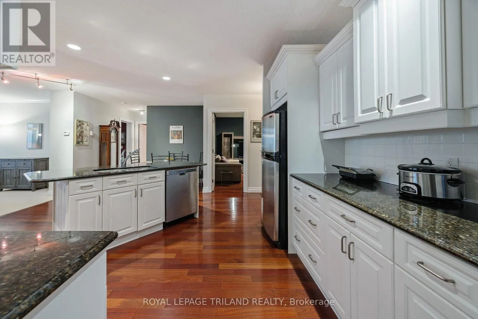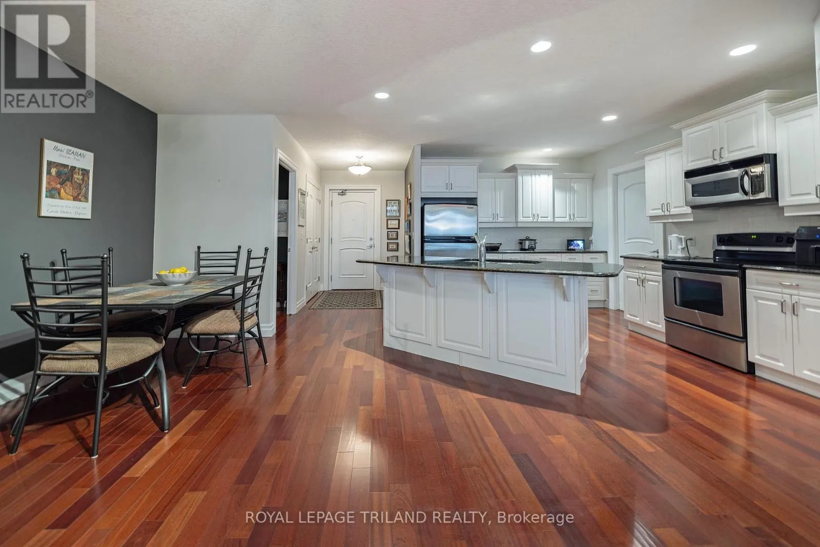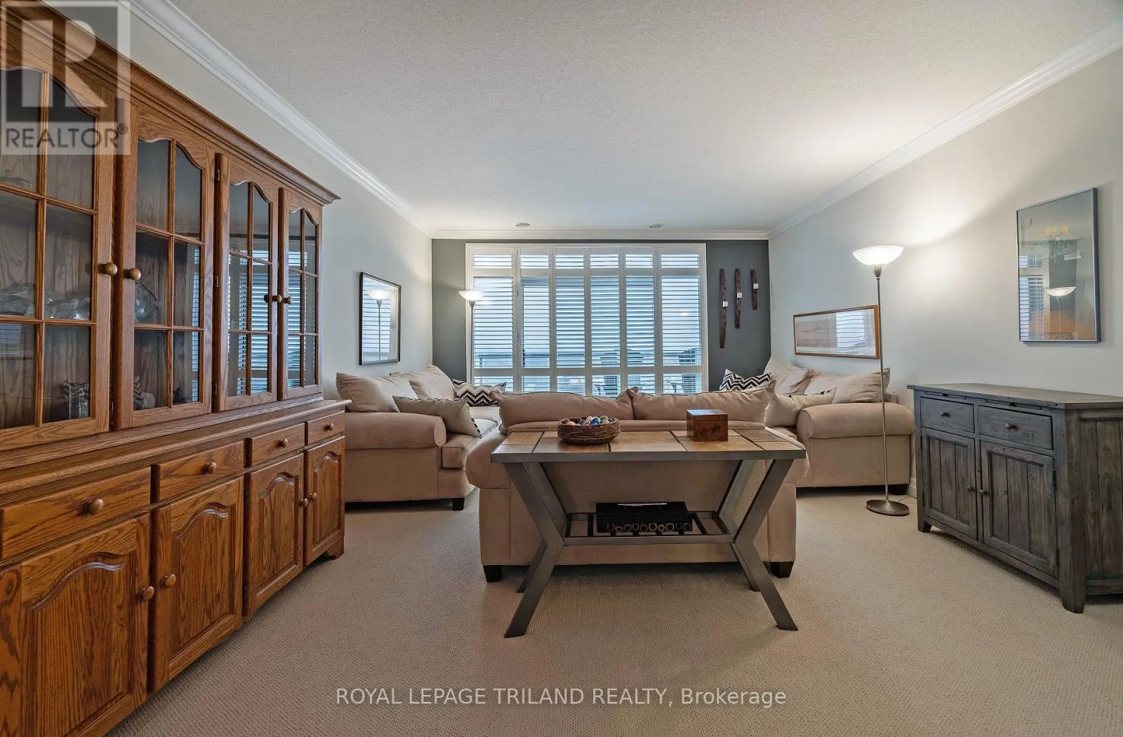 Cross Streets: RICHMOND STREET. ** Directions: HEADING SOUTH ON RICHMOND, TURN LEFT ON PALL MALLST. Welcome to penthouse living on the 12th floor, offering 1,591 sq. ft. of open-concept space with spectacular views. This suite features a well-appointed kitchen with granite countertops, ample cabinetry, a functional island and a spacious dining area. The living room, with beautiful California Shutters, opens onto an expansive balcony. This fantastic floor plan includes two generous bedrooms plus a cozy den. The primary bedroom boasts a walk-in closet and a 4-piece ensuite with glass shower and separate bathtub. A large second bedroom is conveniently located next to a 3-piece bath. Additional highlights include hardwood flooring, a large in-suite laundry/storage room and two underground parking spaces. Enjoy exceptional condominium amenities, including a fitness room, common room with pool table, movie room and a guest suite. The monthly condo fee includes heat, water, hydro and building insurance! All of this is set in a prime downtown location, just steps from Victoria Park, outstanding restaurants, and fantastic shopping. (id:27476)