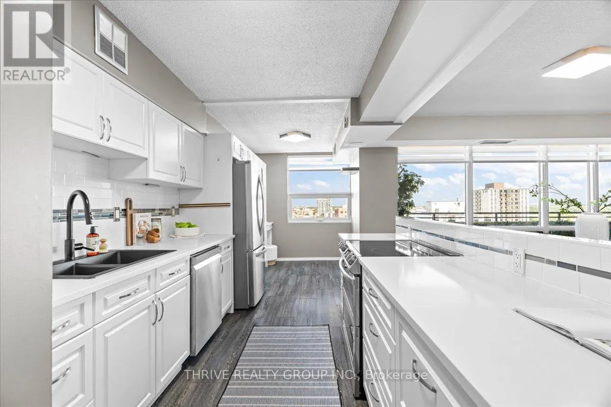 Cross Streets: Dundas & Colborne. ** Directions: West on Dundas at Colborne. Welcome to all-inclusive living in the heart of London! This spacious 3-bedroom, 2 full bath condo has been beautifully updated and offers everything you need for comfort and convenience. Enter through a large double-door entry that opens into an oversized living space with direct access to your private balcony and stunning east-facing views - ideal for morning sunrises without the hot afternoon glare. The open-concept kitchen features newer appliances, endless storage, a built-in desk, and flows seamlessly into the dining and living areas. Down the hall, you'll find an upgraded full 4-piece guest bathroom, two bedrooms (both with closet organizers), and the primary suite, complete with its own balcony, dual closets with organizers, and a modern 3-piece ensuite. An added convenience and bonus to this unit comes with in-suite laundry (washer/dryer combo). With upgraded floors, kitchen, bathrooms, custom automatic blinds, and other bonuses - this home is truly move-in ready. Your condo fee includes everything - heat, hydro, water, Rogers VIP cable package with 100+ channels, 1GB unlimited internet, one premium underground parking spot, and full use of outstanding amenities. These amenities include a year-round indoor saltwater pool, upgraded fitness & wellness rooms, a party room, library with TV and table for games, three landscaped patios with cozy seating, and even a community herb garden. Plus, a convenience store is open 7 days a week on the main floor. This unit is truly unforgettable, with even more enhancements planned for the building (see attached documents for more details). With its central location, this condo offers unmatched value and lifestyle. Homes like this rarely come available, so don't miss your opportunity to live effortlessly in this stunning unit! (id:27476)